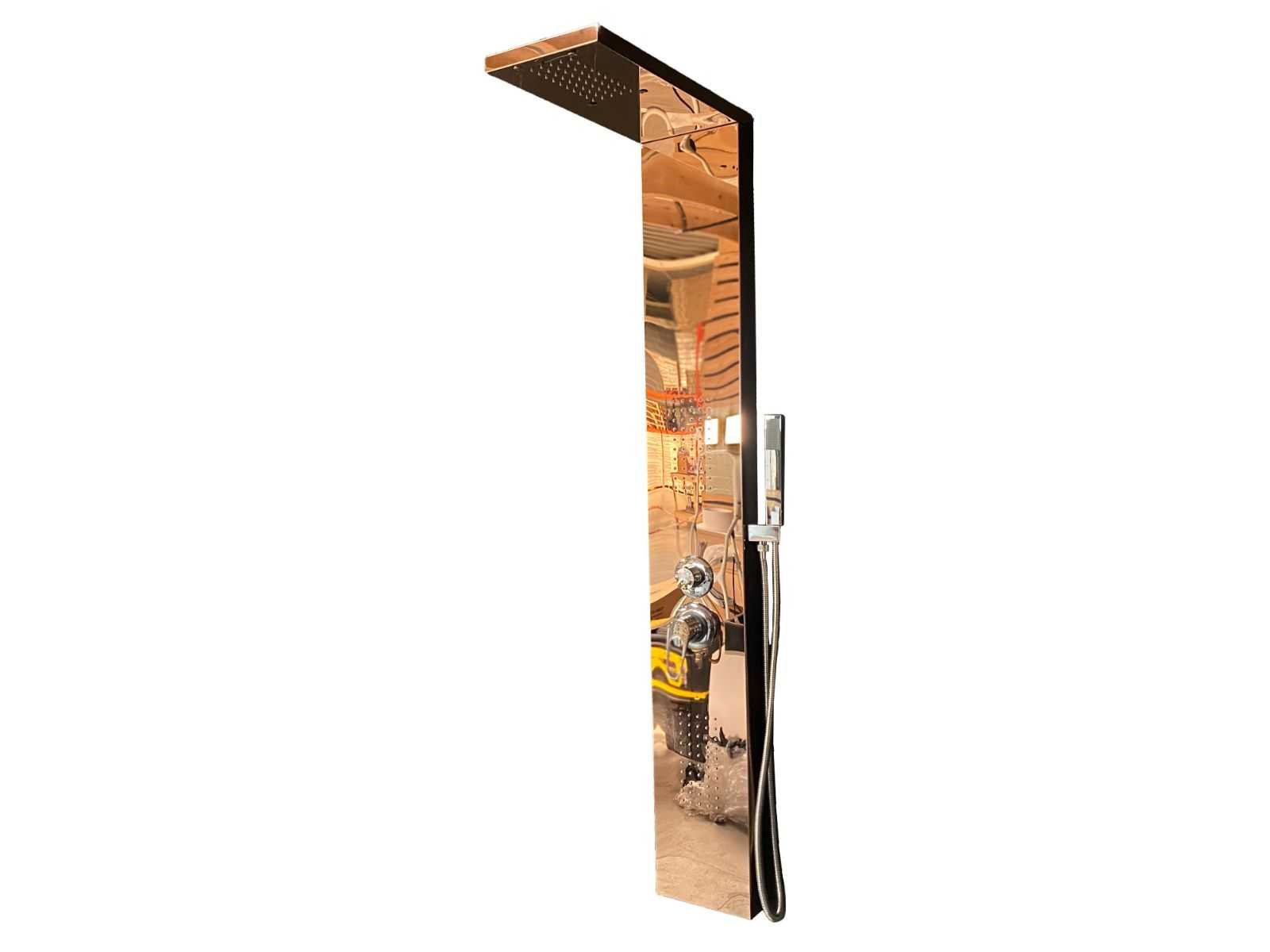 Design douchezuil - Kleur: Rose gold- Materiaal: Aluminium - Hoogte 145cm x Breedte 20cm x Diepte 6cm - Waterjetvlakken - Flexibel en handdouche (150cm) - Regendouche - Mixer, richtingsventiel - MS02-Rose gold Bezorgtermijn 1 dag Merk: Lavinno Kleur: Rose Gold