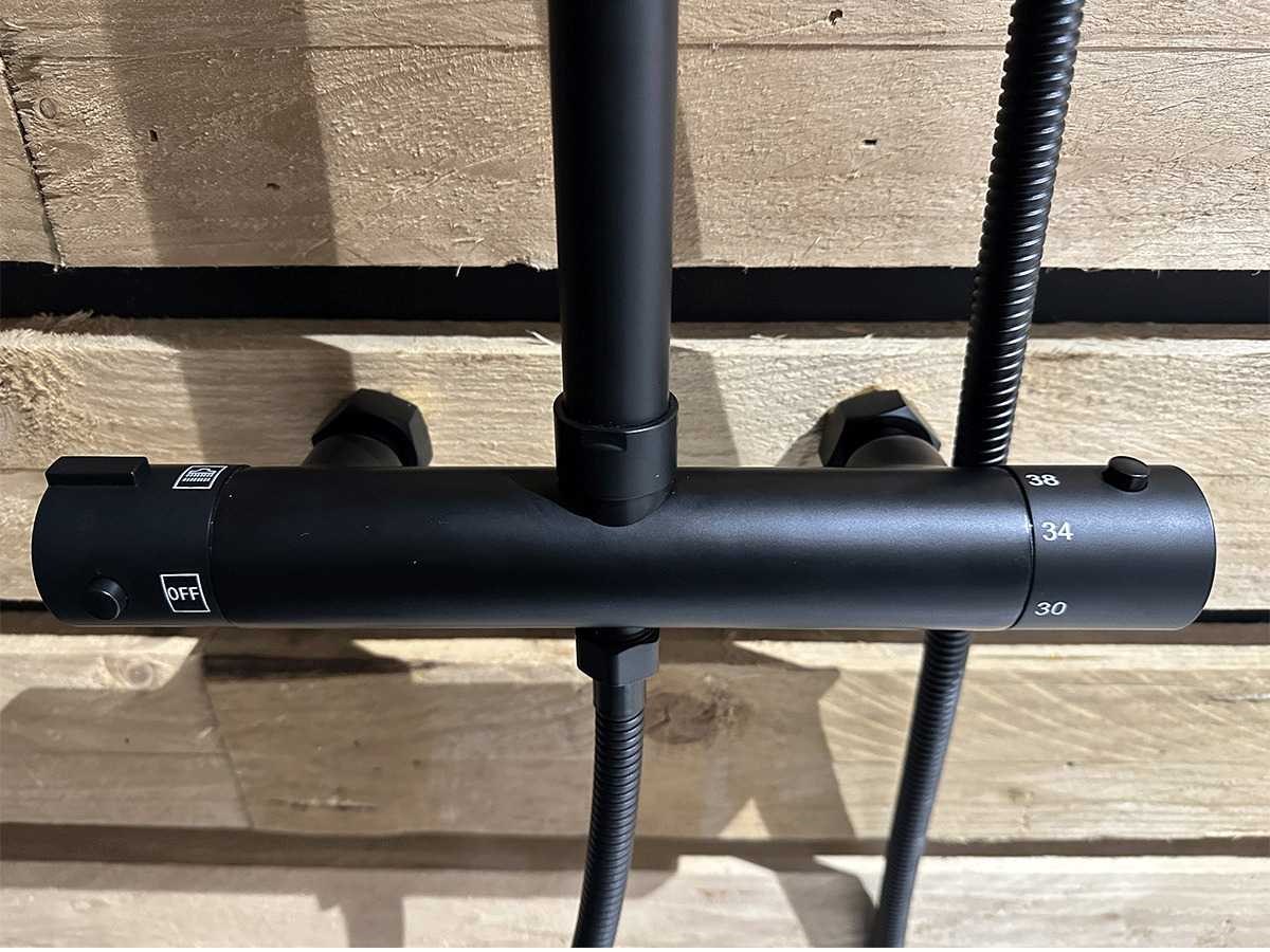 Mat zwart - regendoucheset met thermostaat