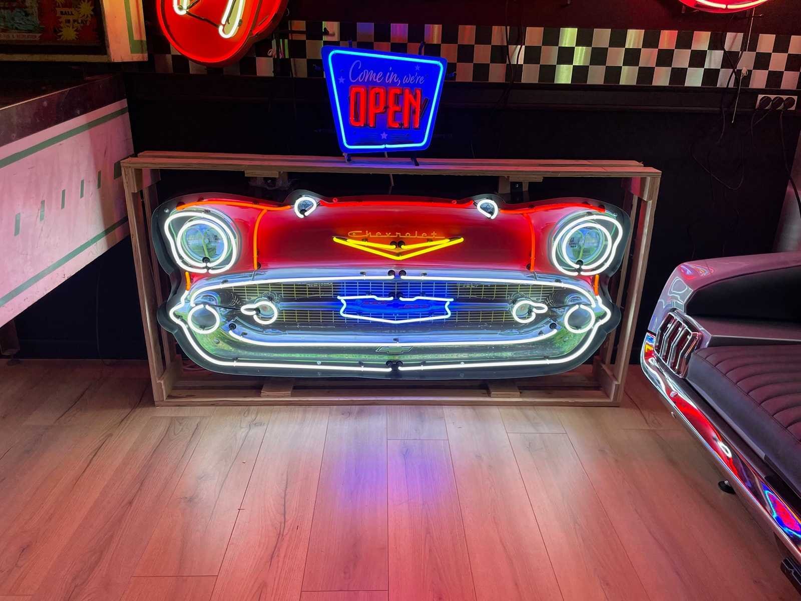 <li>De omtrek en achterkant van het neonbord zijn gemaakt in een metalen doos.</li><li> </li><li>Met handblazende, meerkleurige neonlichten.</li><li> </li><li>Geen speciale assemblage of bedrading nodig, plug and play.</li><li> </li><li>De neonlichten hebben een betoverende en warme kleur en worden geleverd met industriële weerstandstransformatoren.</li><li> </li><li>Nieuw product, werkt op 220 volt</li><li> </li><li>Kan aan de muur worden gehangen.</li><li> </li><li>Afmetingen: 152X65 cm.</li><li> </li> No Merk: Enseigne Neon Chevrolet Bel Air 1957 (152 cm)
