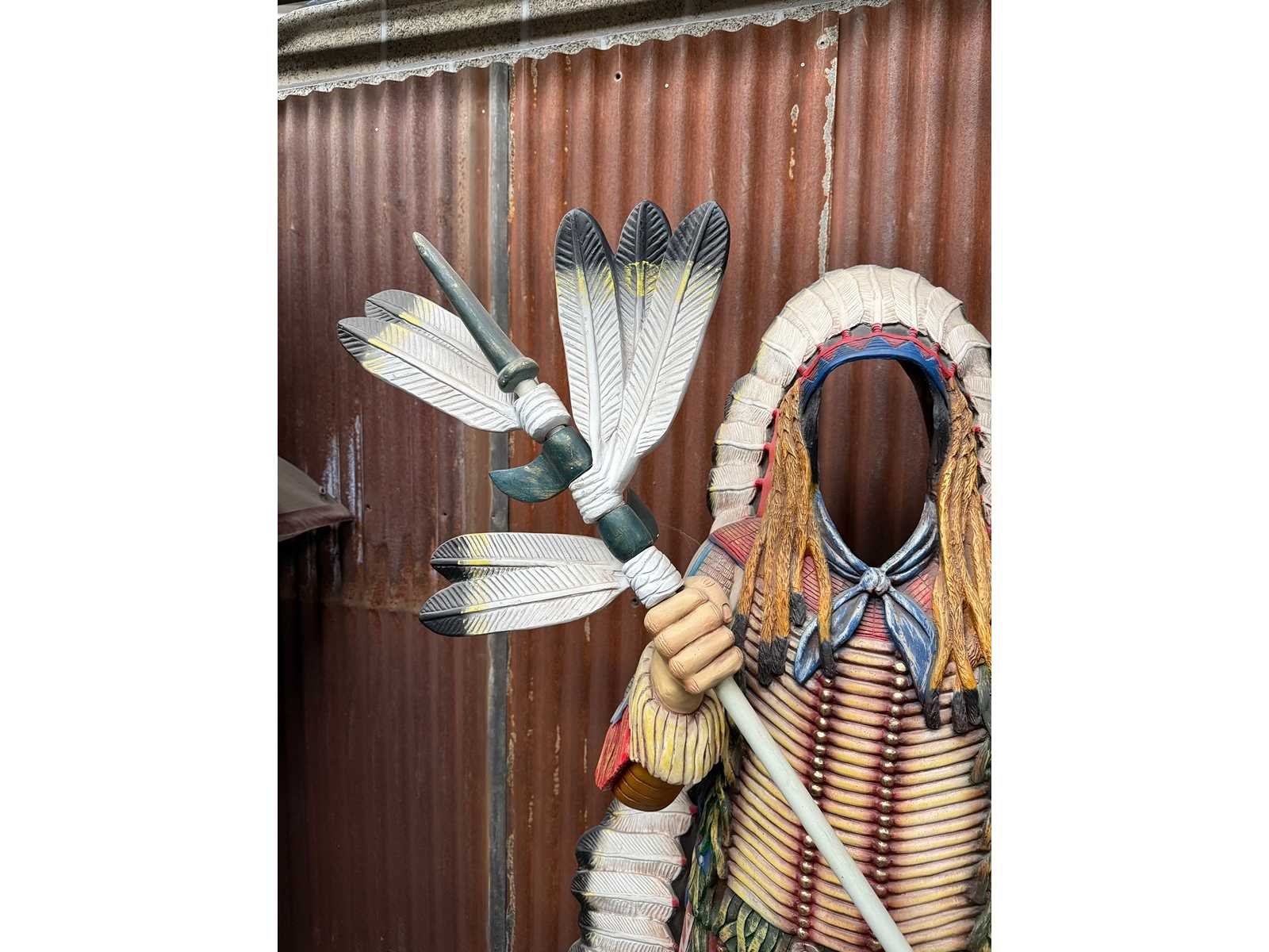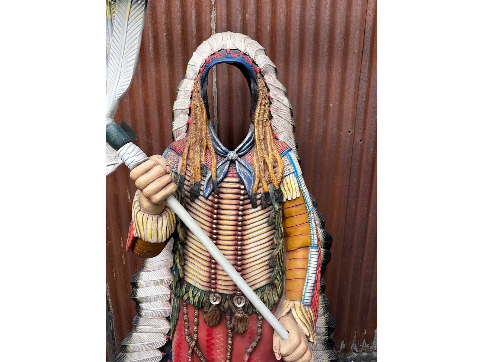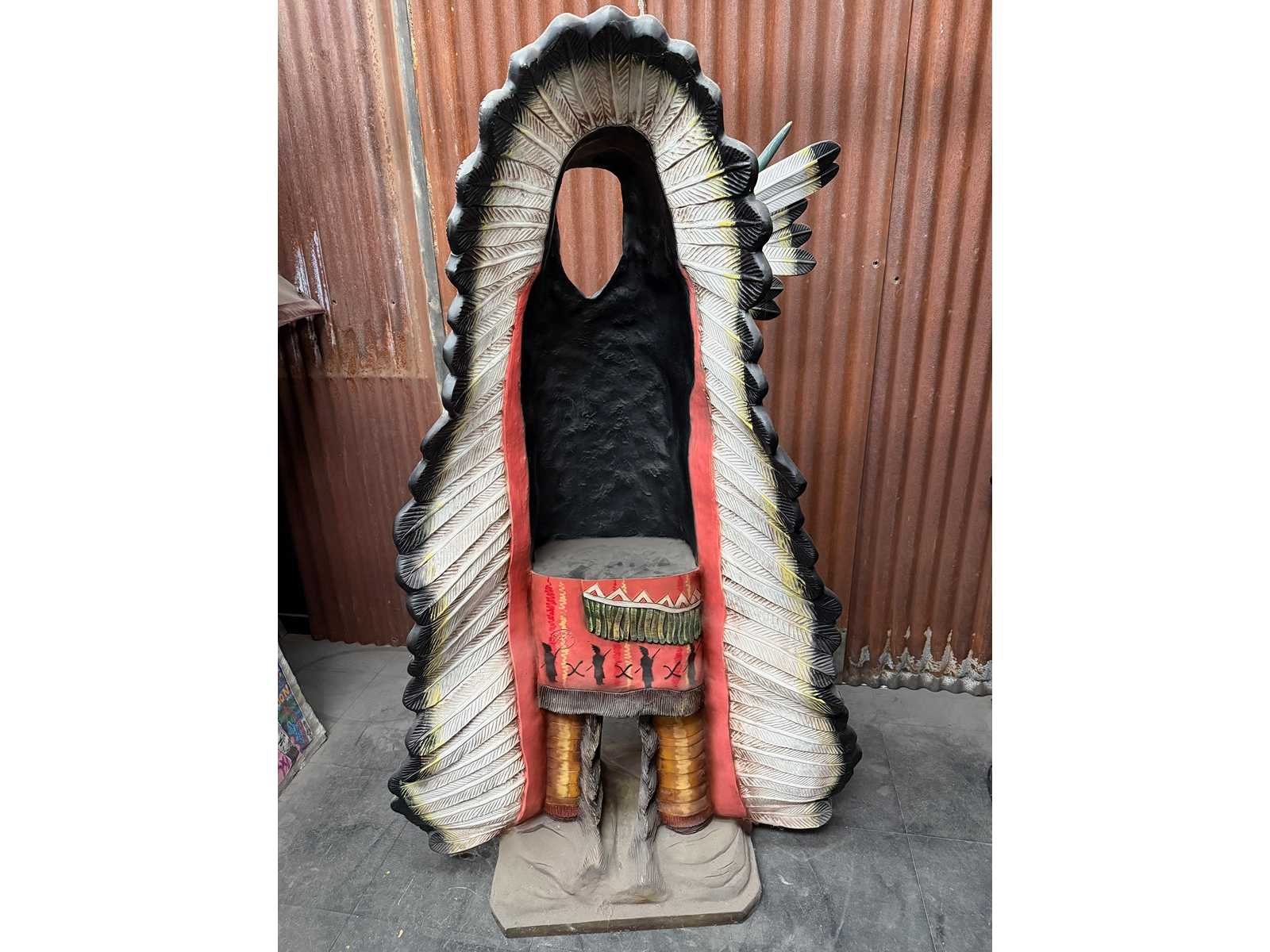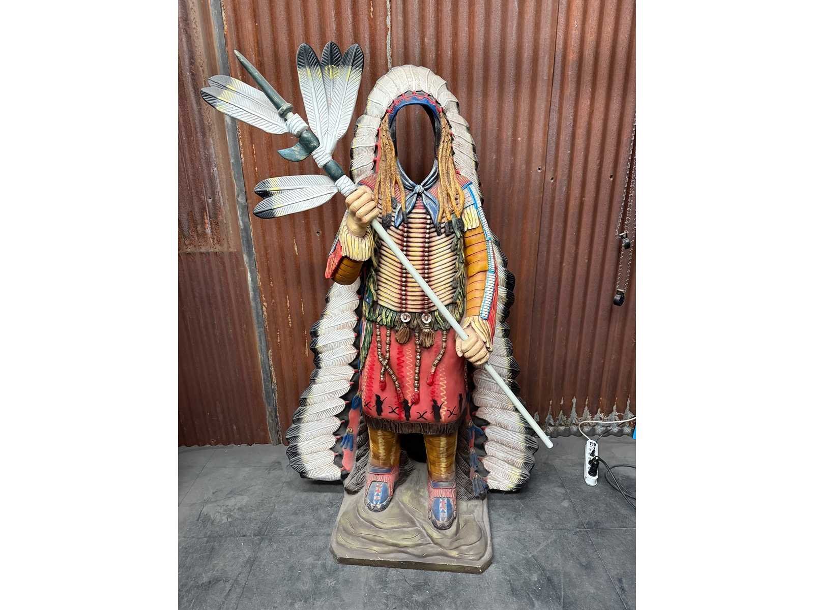 <li>Indiaans standbeeld zonder gezicht gemaakt van hars en vezel, dateert uit de jaren 90, het komt uit een souvenirwinkel in de Verenigde Staten, met enkele sporen van slijtage </li><li> </li><li>Gewicht +- 40 kg</li><li> </li><li>Afmeting: Hoogte 200 cm / Breedte 125 cm / Diepte 60 cm</li><li> </li> No Merk: Statue Indien en résine sans visage 2 mètres