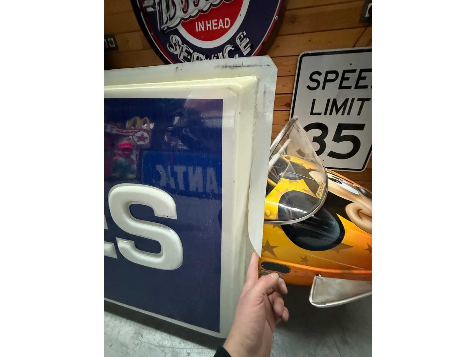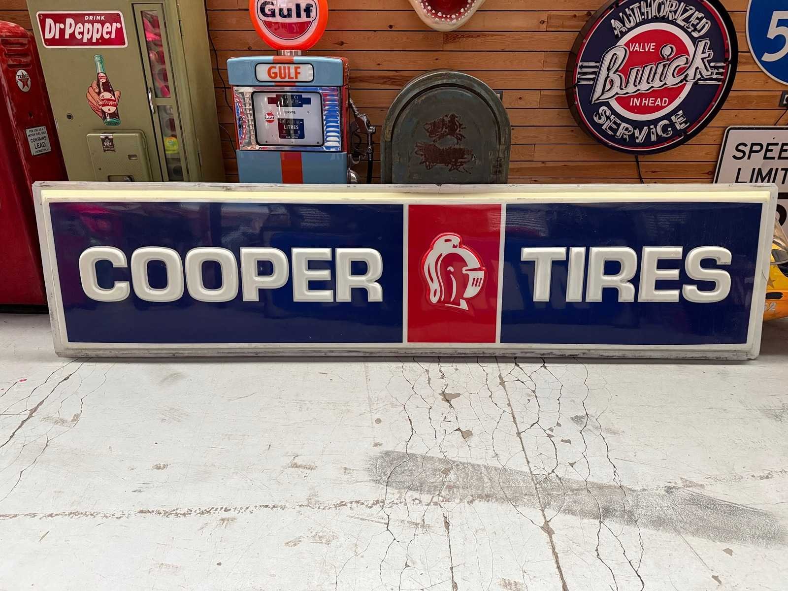 <li>Real Face American Cooper Bandenbord met verlicht</li> <li> </li><li>Supergoede algemene staat voor zijn leeftijd, er zijn twee scheuren maar niet op het bord, alleen op de omtrek dus makkelijk te repareren.</li><li> </li><li>Ideaal voor een grote ruimte, of het nu voor een bedrijf, een vintage autogarage of als middelpunt in je huis is.</li><li> </li><li>Belangrijk: het kader en de verlichting zijn er niet, het is slechts één plexiglazen zijde van het bord.</li><li> </li><li>Afmetingen: Lengte 3,66 meter - Hoogte 91 cm - Diepte 6 cm</li><li> </li> No Merk: Face d’enseigne lumineuse Cooper Tire
