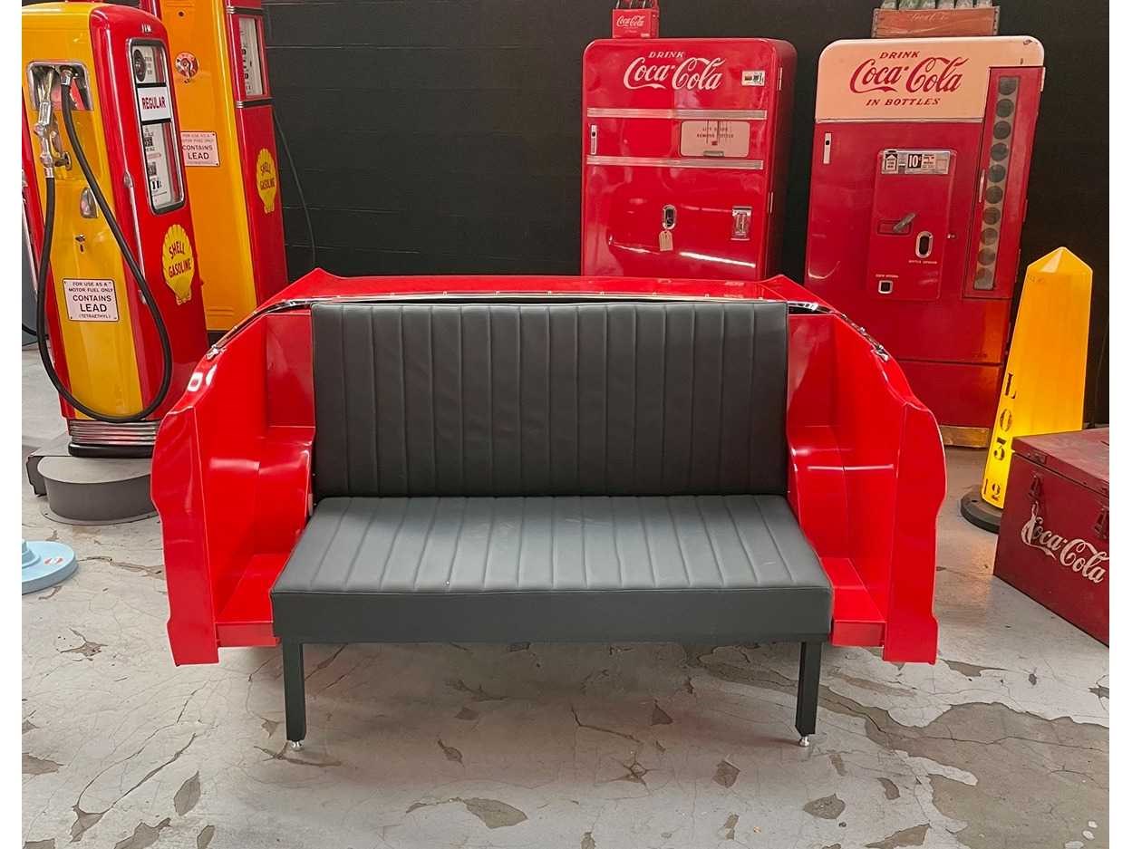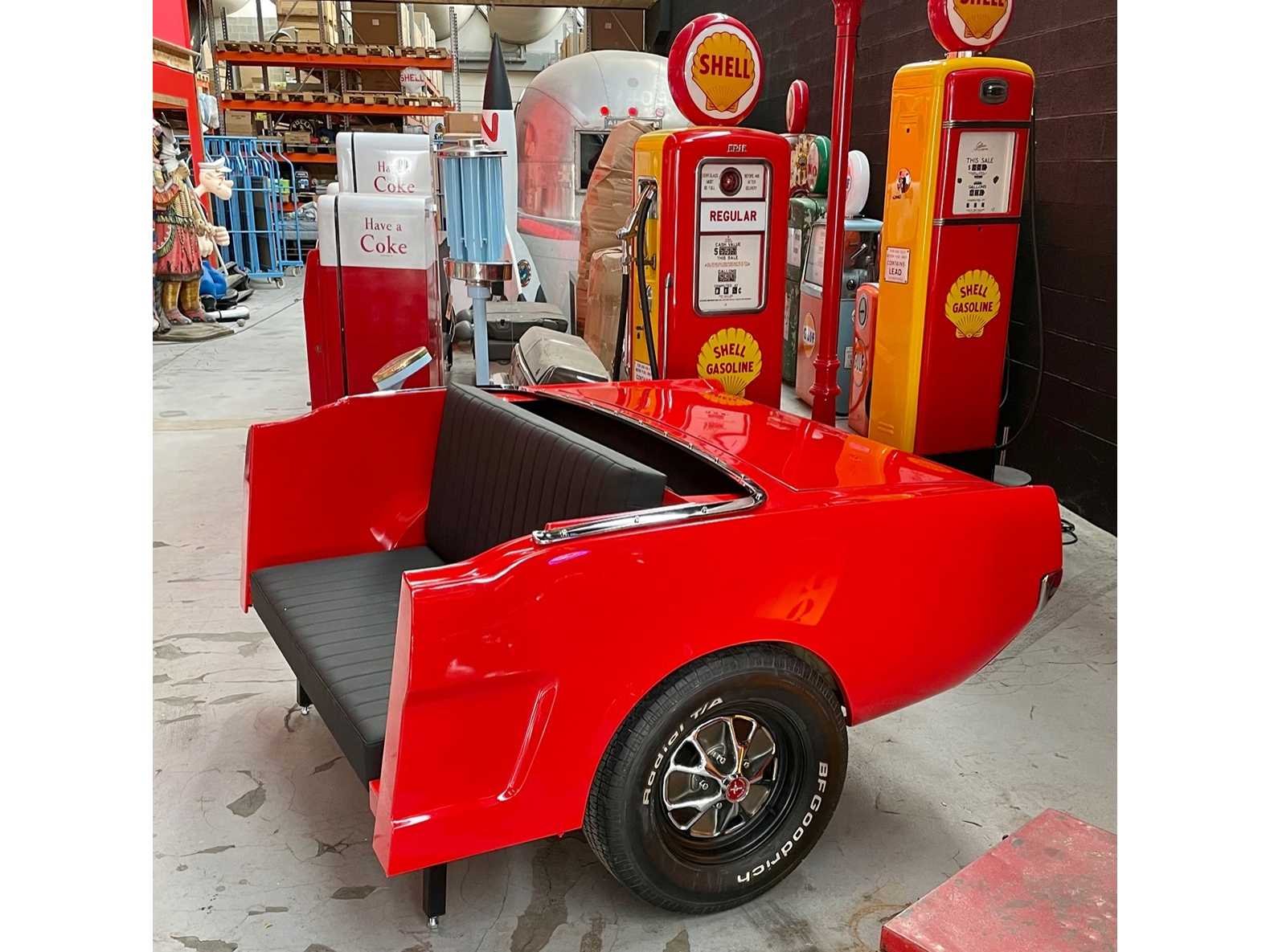 <li>Banquette / Canappé réalisée à partir d’une authentique partie arrière de Ford Mustang</li><li> </li><li>Il s’agit d’un véhicule authentique dont la partie arrière a été entièrement restaurée pour la transformation.</li><li> </li><li>Ce mobilier peut-être aussi bien utilisé en banquette de restaurant, en banquette dans un salon ou un accueil de magasin.</li><li> </li><li>Peinture qualité automobile, les pneus et jantes sont authentique</li><li> </li><li>La Banquette fait 120 cm de large Pour 2 ou 3 personnes</li><li> </li><li>Dimension: Hauteur 100 cm / Largeur 170 Cm / Profondeur 170 cm</li><li> </li> No Merk: Banquette / Canappé réalisée à partir d’une authentique partie arrière de Ford Mustang 1965