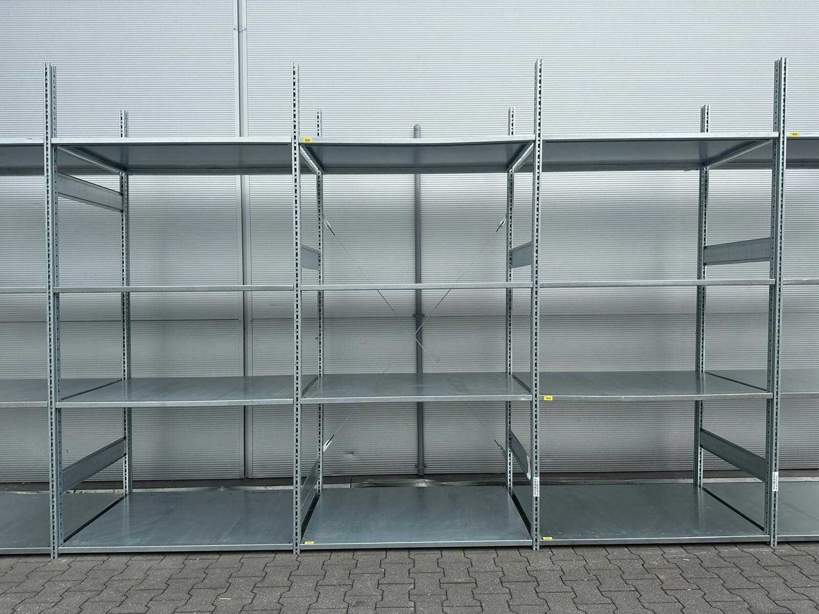Gebundeld; met 1 schoorset; 6x staander 2495x800mm; 20x legbord 1200x800mm; 7651*6 / 7653*20 Nee Merk: Schäfer Sectie afm. b: 1200mm Sectie diepte: 800mm Sectie afm. h: 2495mm Aantal staanders: 6 Aantal liggers: 20