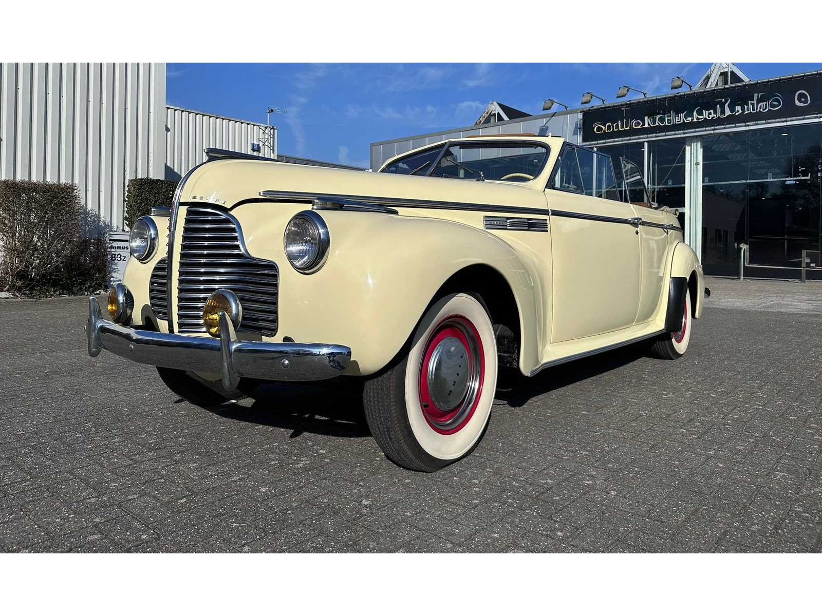 Zeer mooie en verzorgde prachtwagen uit 1940 ! Buick Super eight 8-in-lijn motor Manuele 3 bak 01/1940 Pastel geel Zeer propere staat. Lakwerk goed, niet perfect. Chroom mooi Nieuw cabriodak sedert 3 jaar. Interieur netjes, geen scheuren of schades Start en rijdt zeer goed. Remmen werken ook zoals het hoort. Geen roest Motor 3 jaar geleden gereviseerd geweest. Kleine barst in rechtse zijruit van de achterdeur, niet storend. Kilometerteller hapert soms. Recente Whitewall banden. Echte eyecatcher! Belgische papieren. Sedert 1993 in België. Nee