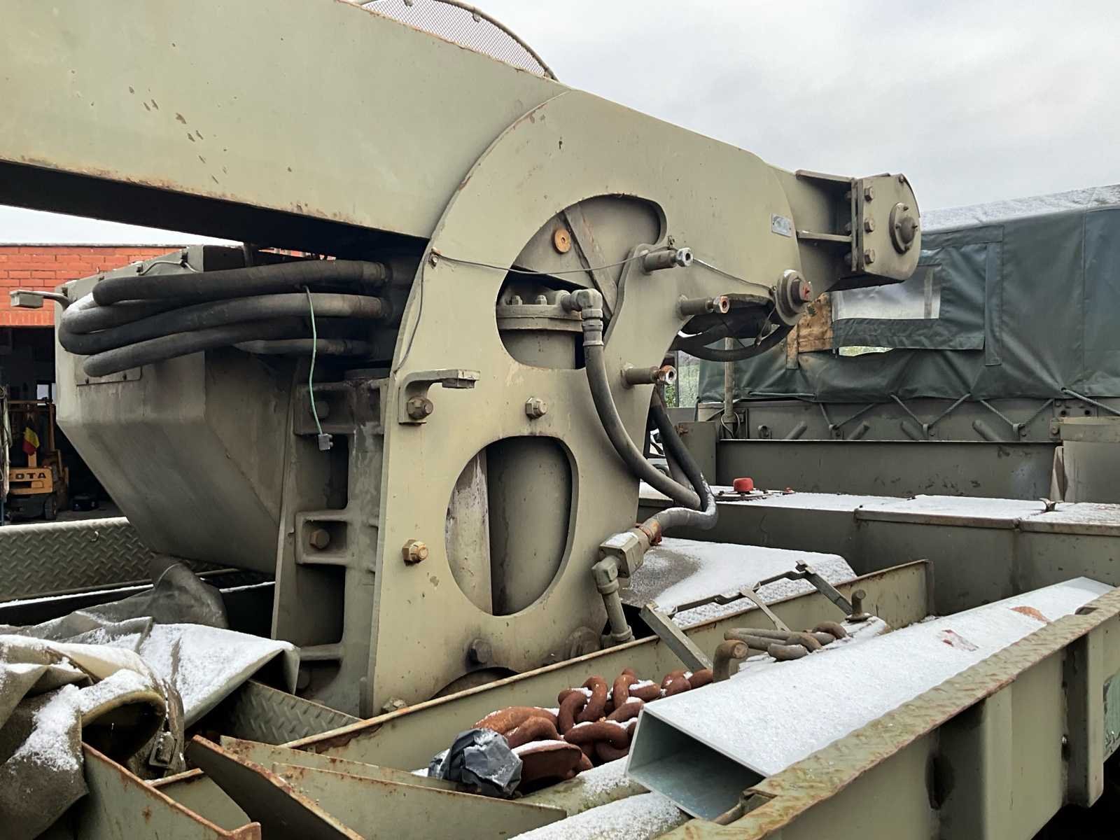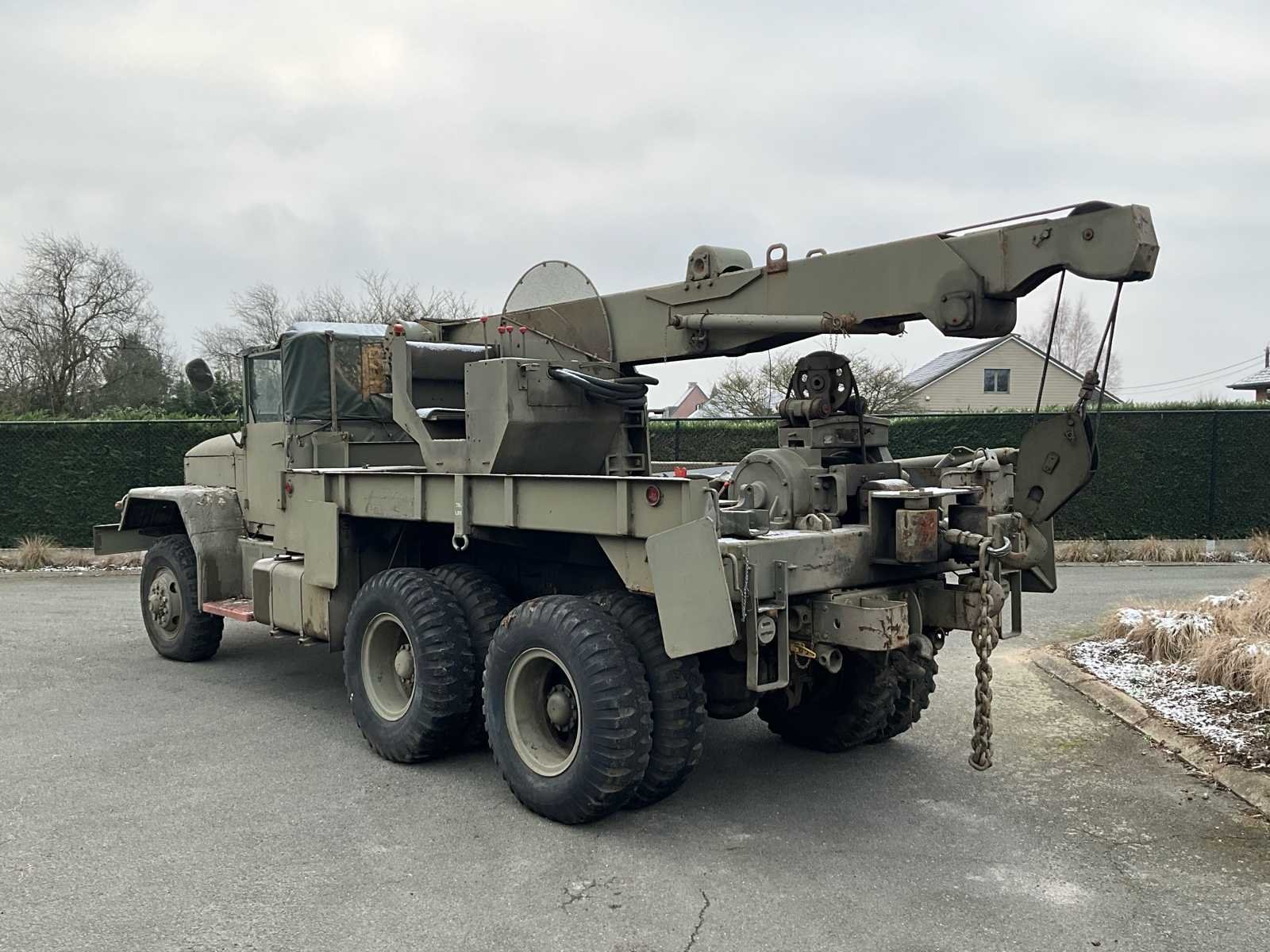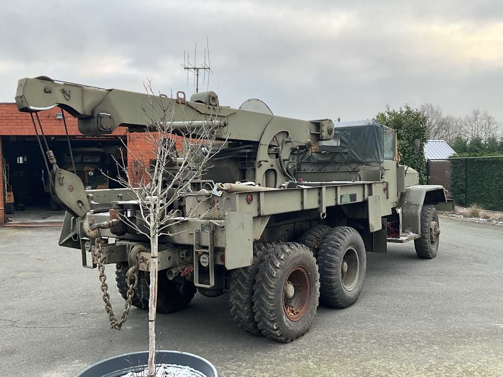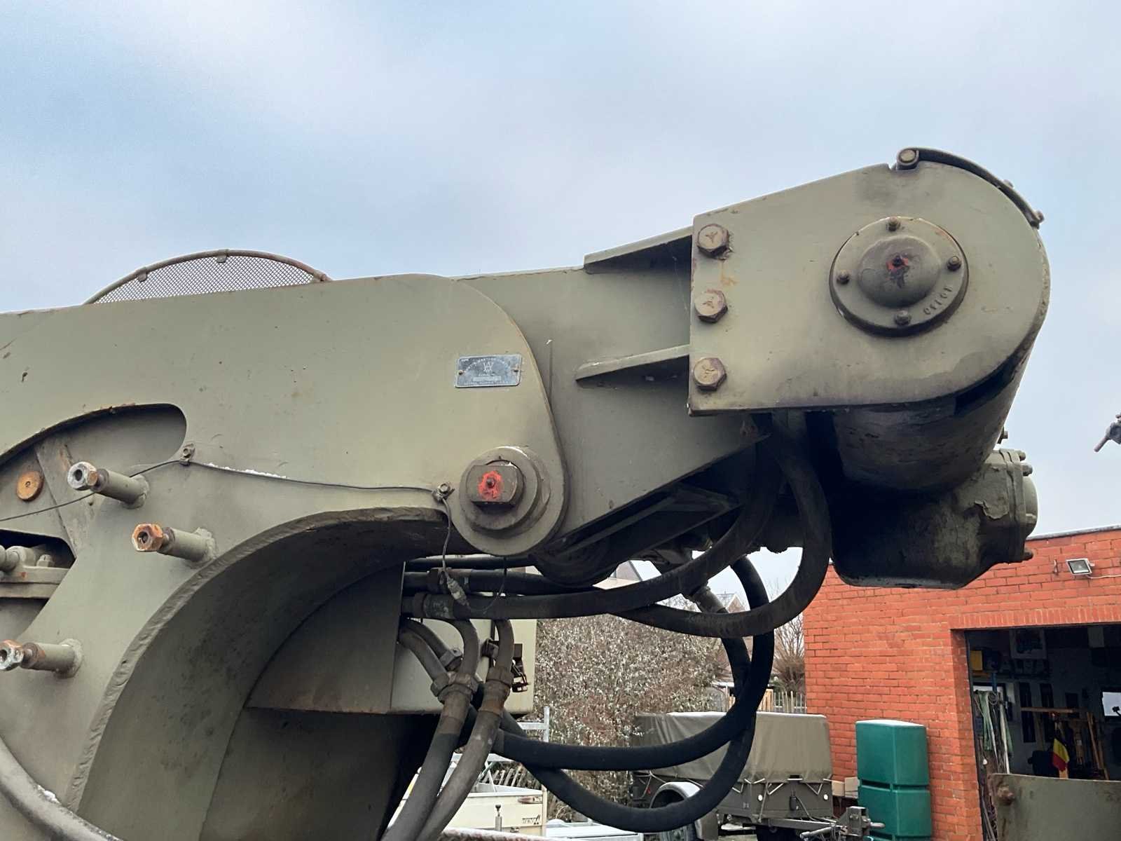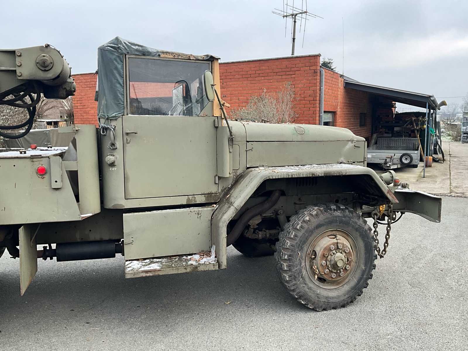 International M62 legervoertuig van het Belgische leger destijds. Het voertuig start, rijdt en remt. Exclusief de batterijen. Het voertuig is voorzien van een benzinemotor. De kraan op het voertuig heeft een lek in de hydrauliek. Voor verdere details, zie foto’s. Documenten ook aanwezig. No Merk: International M62 Type: TRK 5T 6X6 4D1 Chassisnummer VIN: 620383 Benzine: true Afgelezen mijlenstand: 1700mi Eigen gewicht: 14000kg