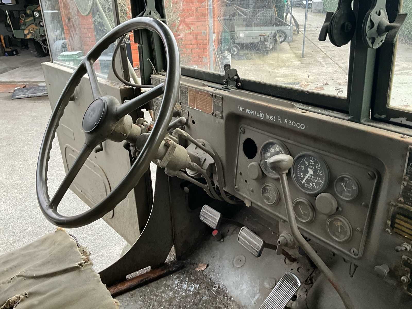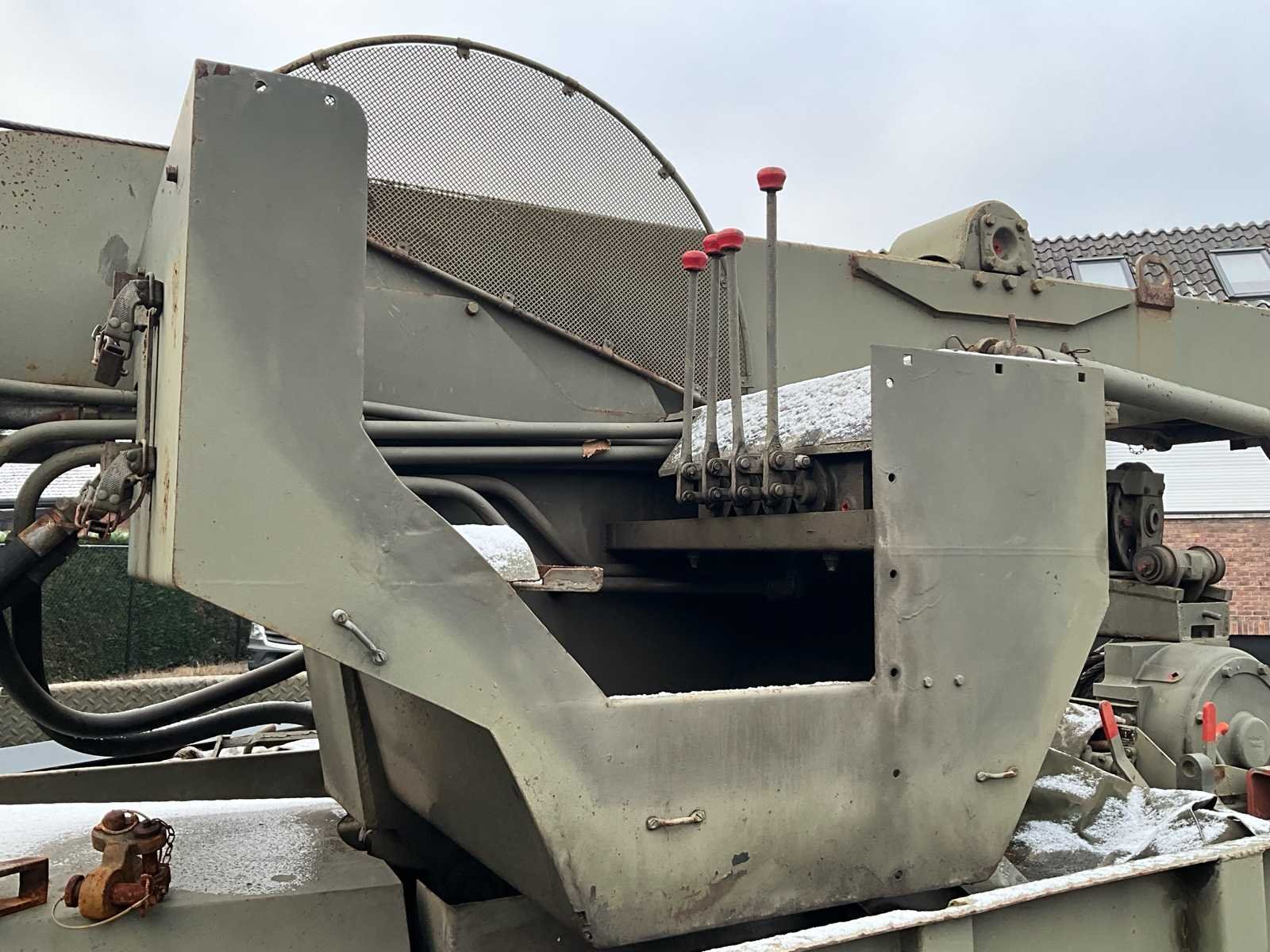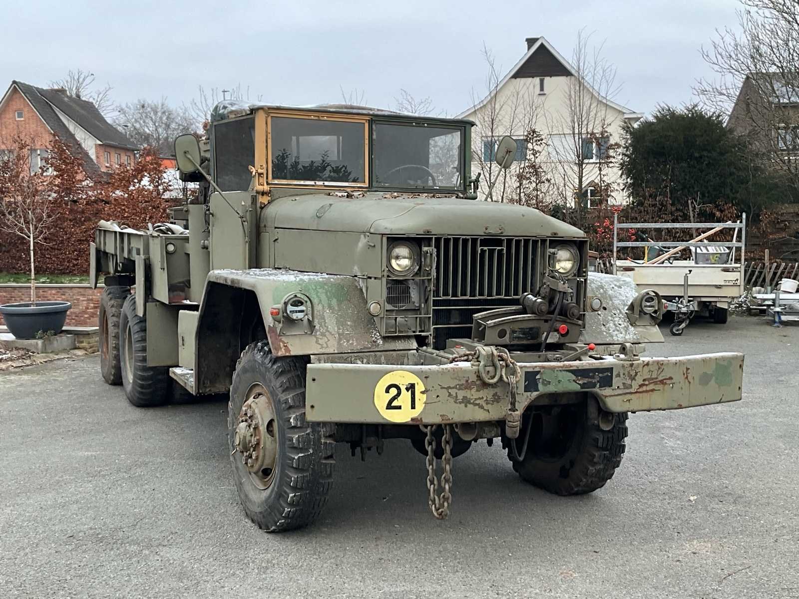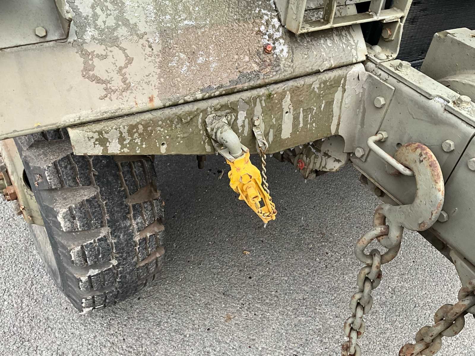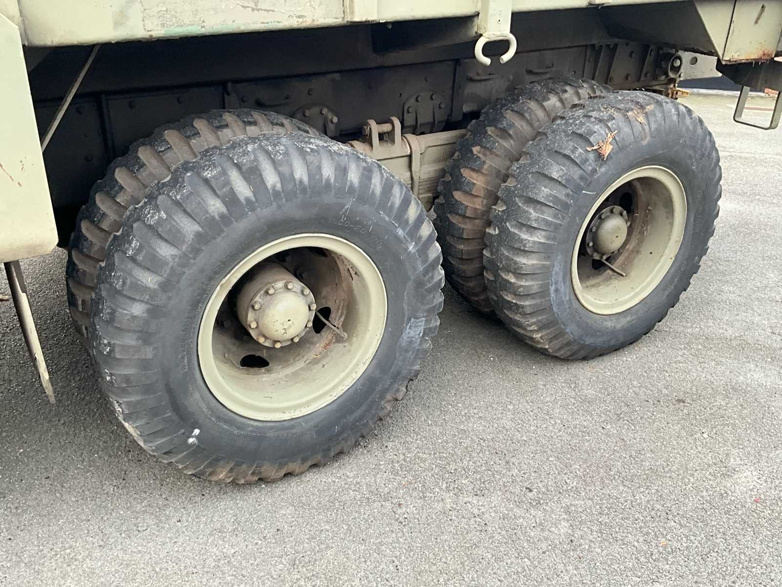 International M62 legervoertuig van het Belgische leger destijds. Het voertuig start, rijdt en remt. Exclusief de batterijen. Het voertuig is voorzien van een benzinemotor. De kraan op het voertuig heeft een lek in de hydrauliek. Voor verdere details, zie foto’s. Documenten ook aanwezig. No Merk: International M62 Type: TRK 5T 6X6 4D1 Chassisnummer VIN: 620383 Benzine: true Afgelezen mijlenstand: 1700mi Eigen gewicht: 14000kg