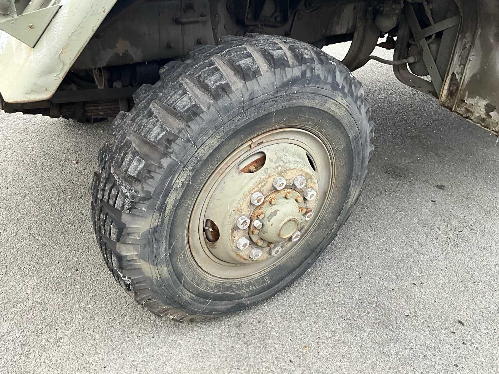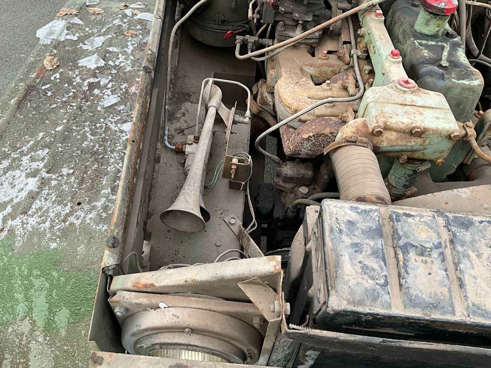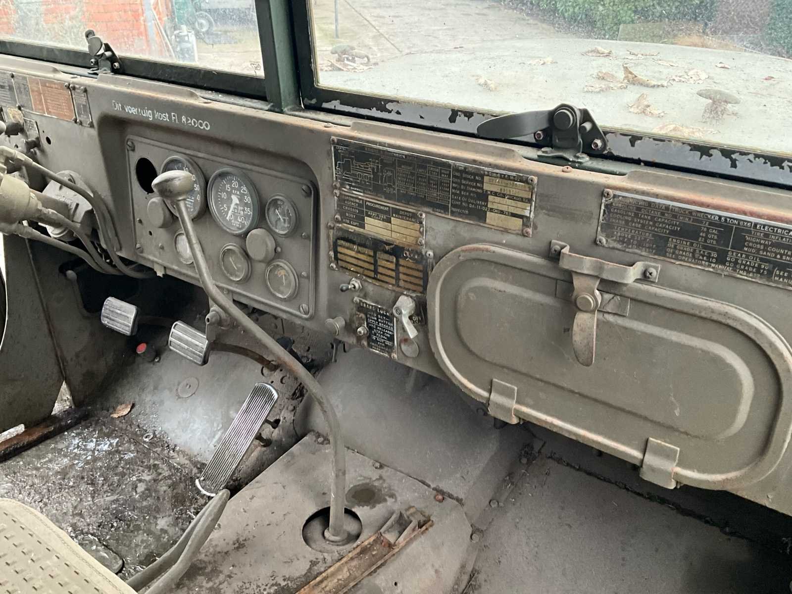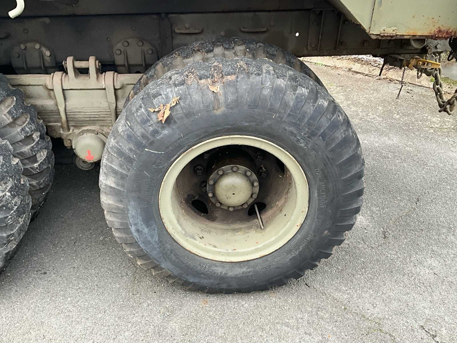 International M62 legervoertuig van het Belgische leger destijds. Het voertuig start, rijdt en remt. Exclusief de batterijen. Het voertuig is voorzien van een benzinemotor. De kraan op het voertuig heeft een lek in de hydrauliek. Voor verdere details, zie foto’s. Documenten ook aanwezig. No Merk: International M62 Type: TRK 5T 6X6 4D1 Chassisnummer VIN: 620383 Benzine: true Afgelezen mijlenstand: 1700mi Eigen gewicht: 14000kg