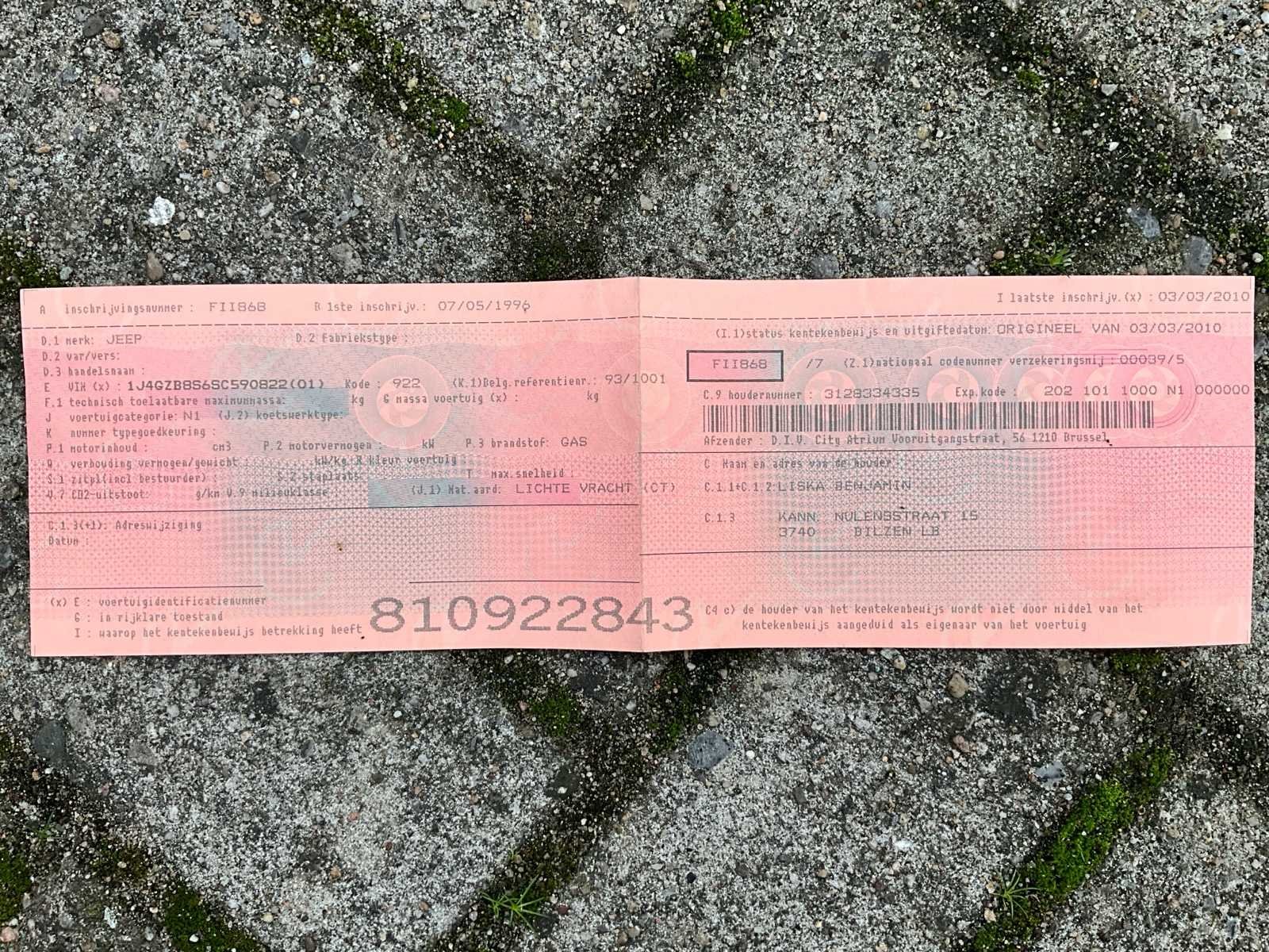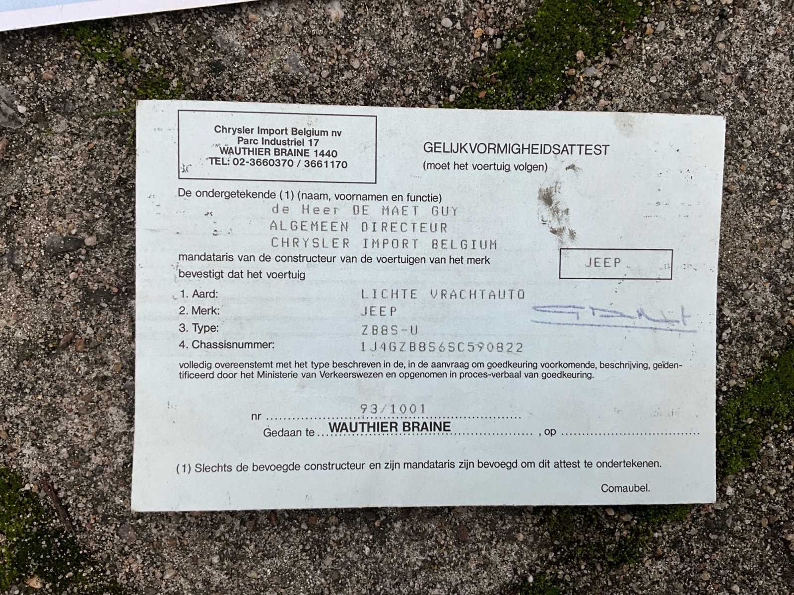 Werking ongekend. Documenten aanwezig. No Merk: Jeep Bouwjaar: 1996 Afgelezen kilometerstand: 359885km Brandstof: LPG Chassisnummer: 1J4GZB8S6C590822 Datum eerste toelating: 07/05/1996 Aantal zitplaatsen: 1 Transmissie: Automaat Aantal deuren: 4 Nationaliteit documenten: Belgie Vavato voert geen technische keuring uit.: true Inschrijvingsbewijs - deel 1 : Aanwezig