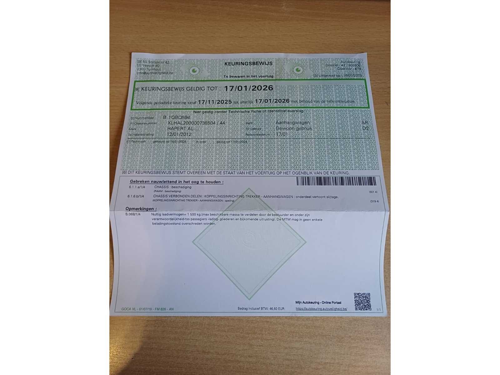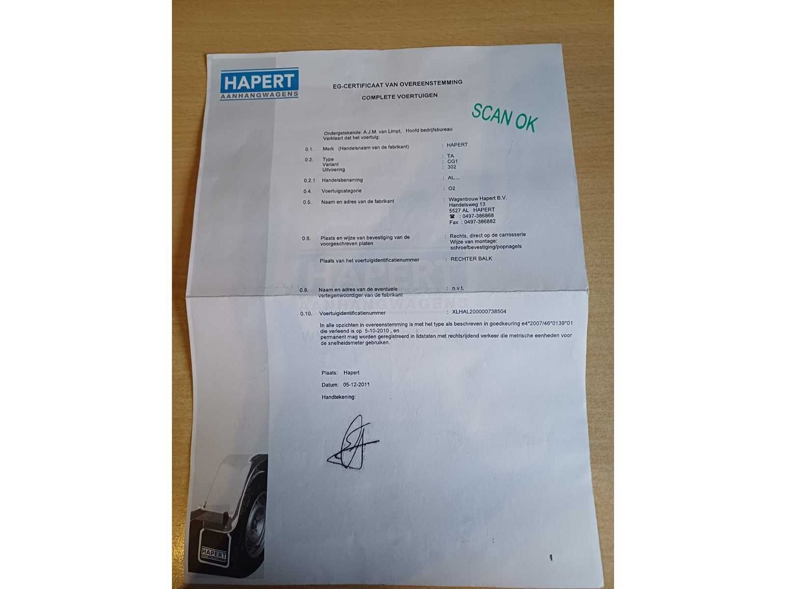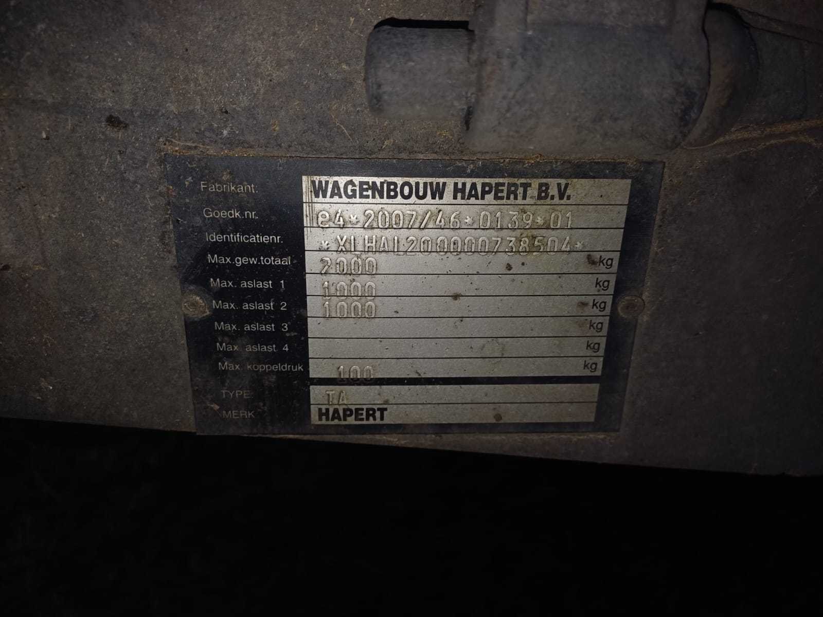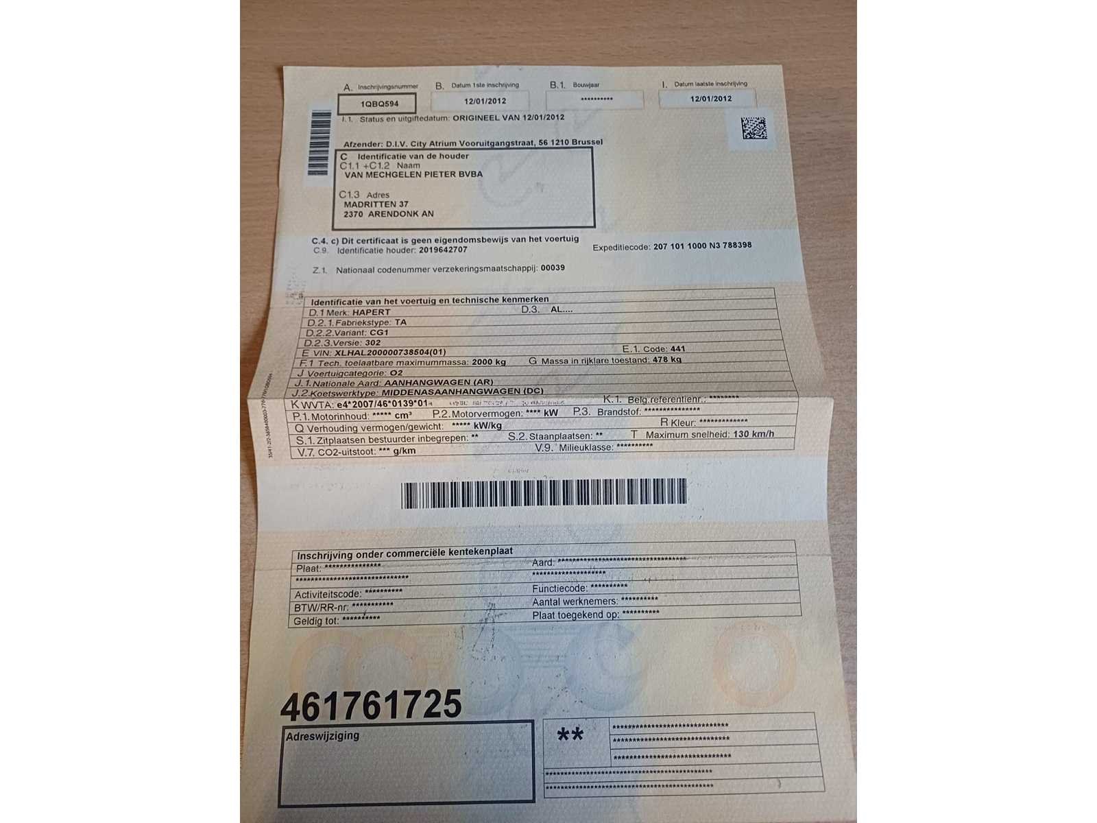 Verkeerd in goede staat Nee Merk: Hapert Bouwjaar: 2012 Chassisnummer: XHLAL20000378504 Aantal assen: 2 Kentekenpapieren compleet?: true Nationaliteit documenten: Belgie