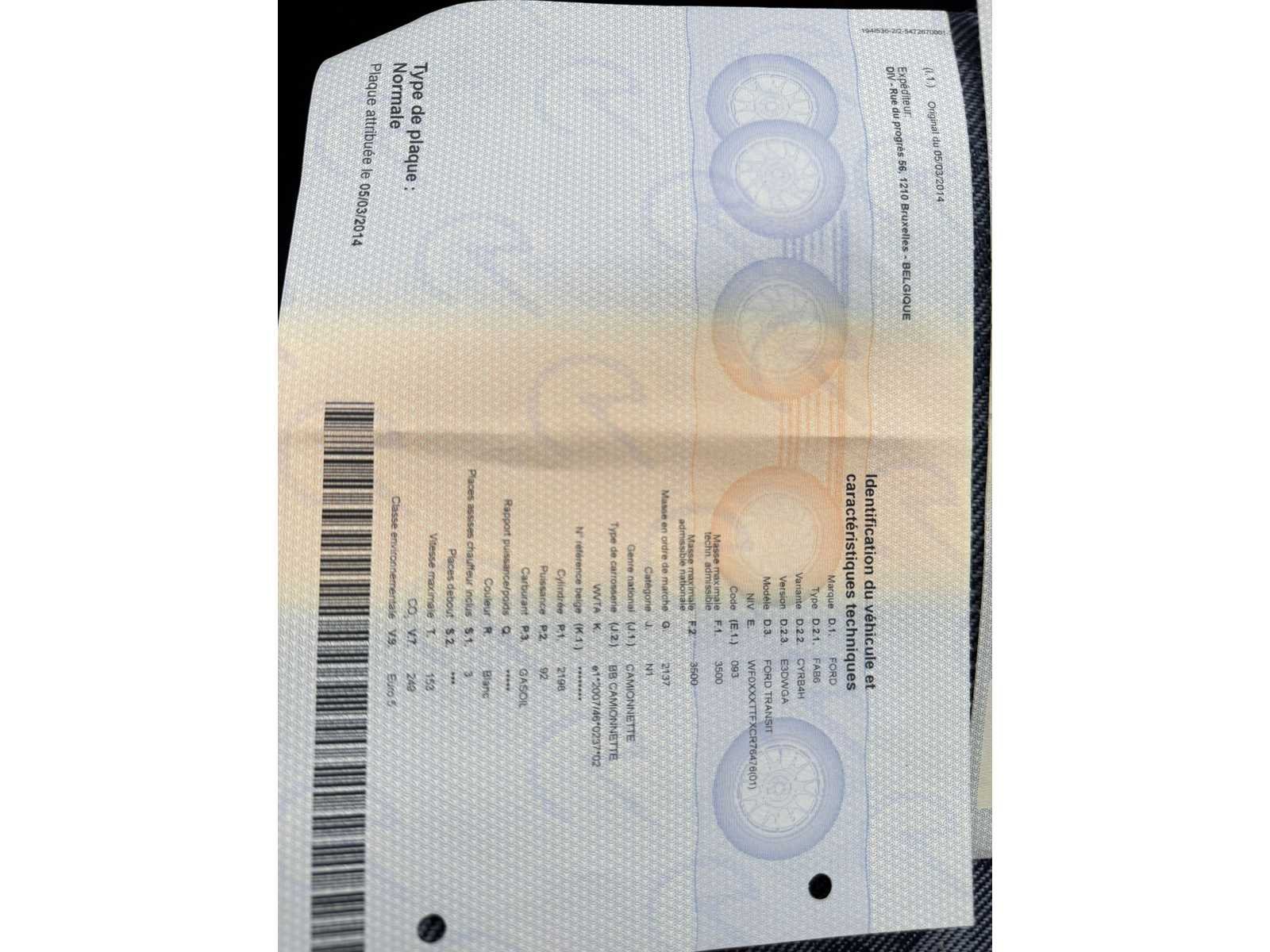“De voorruit vertoont een barst. Herstelling is ten laste van de koper.” Nee Merk: Ford Type: Transit 4X4 Bouwjaar: 2012 Chassisnummer: WF0XXXTTFXCR76476 Afgelezen kilometerstand: 214189km Cilinderinhoud: 2198cc Vermogen (kW): 92kW Brandstof: diesel Aandrijving: 4X4 Transmissie: Handgeschakeld Energielabel: Euro 5214 Kentekenpapieren compleet?: true Boorddocumenten aanwezig?: true