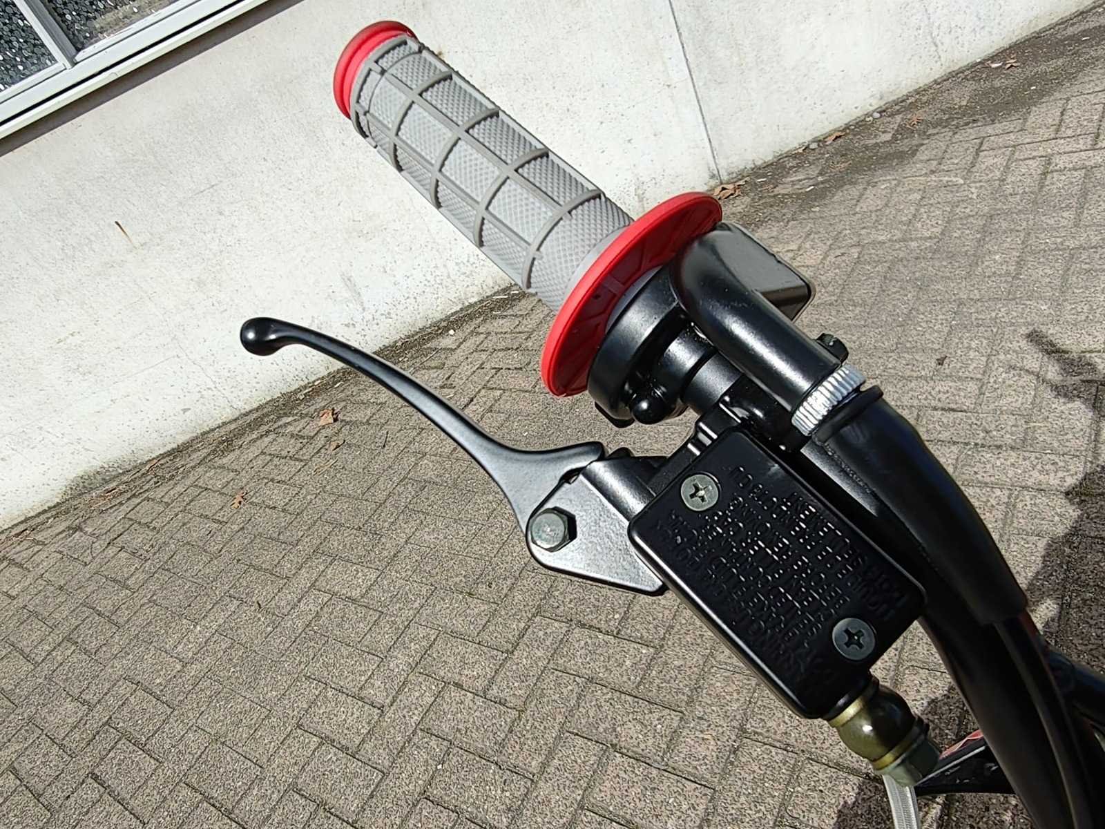 Voorzien van 110cc motor; Manuele koppeling; kickstart; Wiel/velg: V: 90/100-14 (14") A: 70/100-17 (17"); Hydraulische schijfrem; olieschokdemper; Enkele stalen uitlaatpijp; Maximale snelheid: 70 km/u; Ongebruikt in doos (Transport verpakking: 1295 x 375 x 620 mm 75kg) Nee Merk: Ultra Motocross Model: DB001 Type: 110CC Kleur: rood