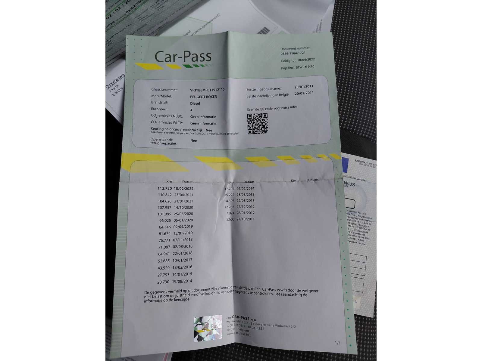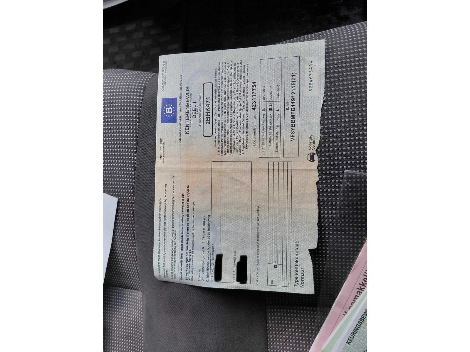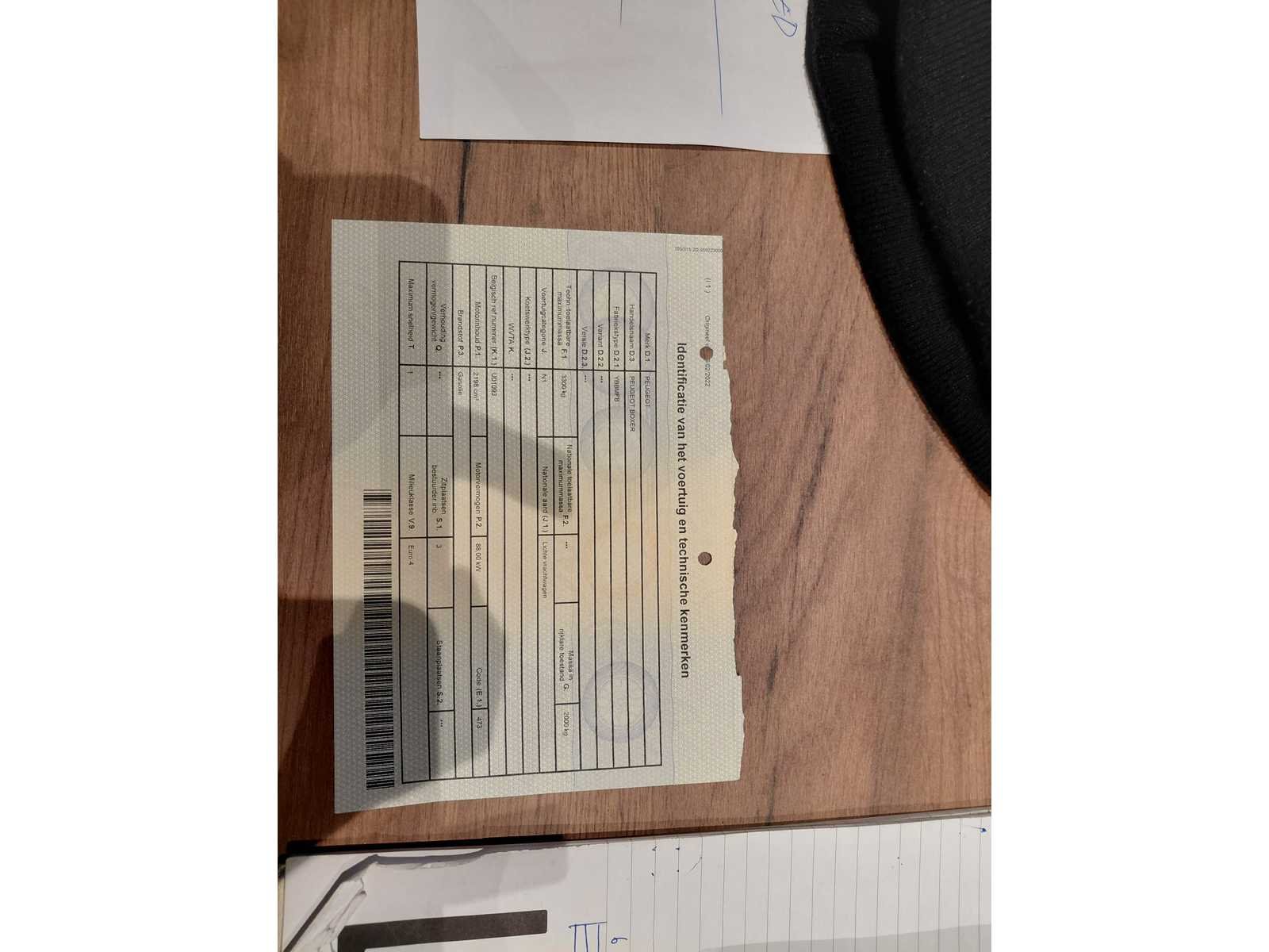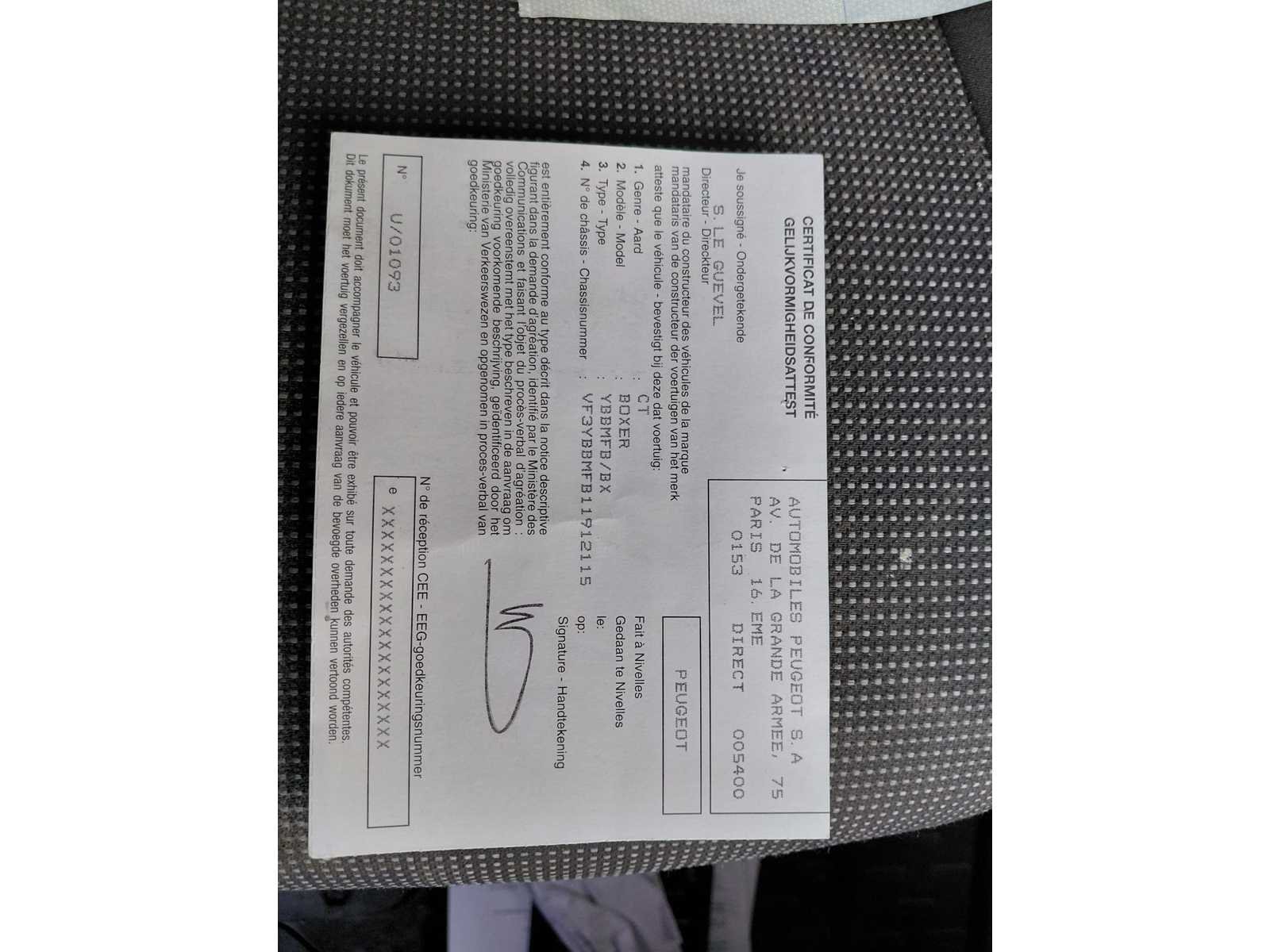 Nee Merk: Peugeot Model: Boxer Bouwjaar: 2011 Afgelezen kilometerstand: 154331km Cilinderinhoud: 2198cc Vermogen (kW): 88kW Brandstof: diesel Chassisnummer: VF3YBBMFB11912115 Datum eerste toelating: 20/01/2011 Transmissie: Handgeschakeld Nationaliteit documenten: Belgisch Start en rijdt: Ja startinformatie : Start en rijdt Inschrijvingsbewijs - deel 1 : Aanwezig Inschrijvingsbewijs - deel 2: Aanwezig