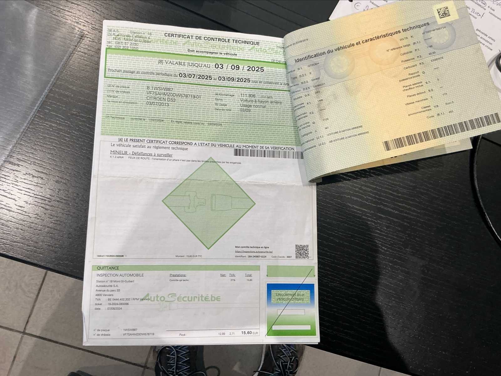 Zeer correcte wagen voor zijn leeftijd en aantal kilometers, met een proper interieur. No Merk: Citroën Model: DS 3 Type: Pure Tech VTi 82 Chic Bouwjaar: 2013 Afgelezen kilometerstand: 120156km Cilinderinhoud: 1199cc Vermogen (kW): 60kW Brandstof: Benzine Chassisnummer: VF7 SAHMZ0DW5787719-01 Laadvermogen: 480kg Datum eerste toelating: 03/07/2013 Vermogen (pk): 82hp Aandrijving: Voorwielaandrijving Aantal zitplaatsen: 5 Kleur: Grijs metalic Transmissie: Handgeschakeld Aantal deuren: 3 Aantal sleutels: 2 Ledig gewicht: 950kg Aantal cilinders: 3 Nationaliteit documenten: België Gelijkvormigheidsattest aanwezig: true Carpass: true Start en rijdt: Ok Keuringsrapport geldig tot: 03/09/2025 Zichtbare schade: Krasjes Vavato voert geen technische keuring uit.: true Inschrijvingsbewijs - deel 1 : Aanwezig Inschrijvingsbewijs - deel 2: Aanwezig