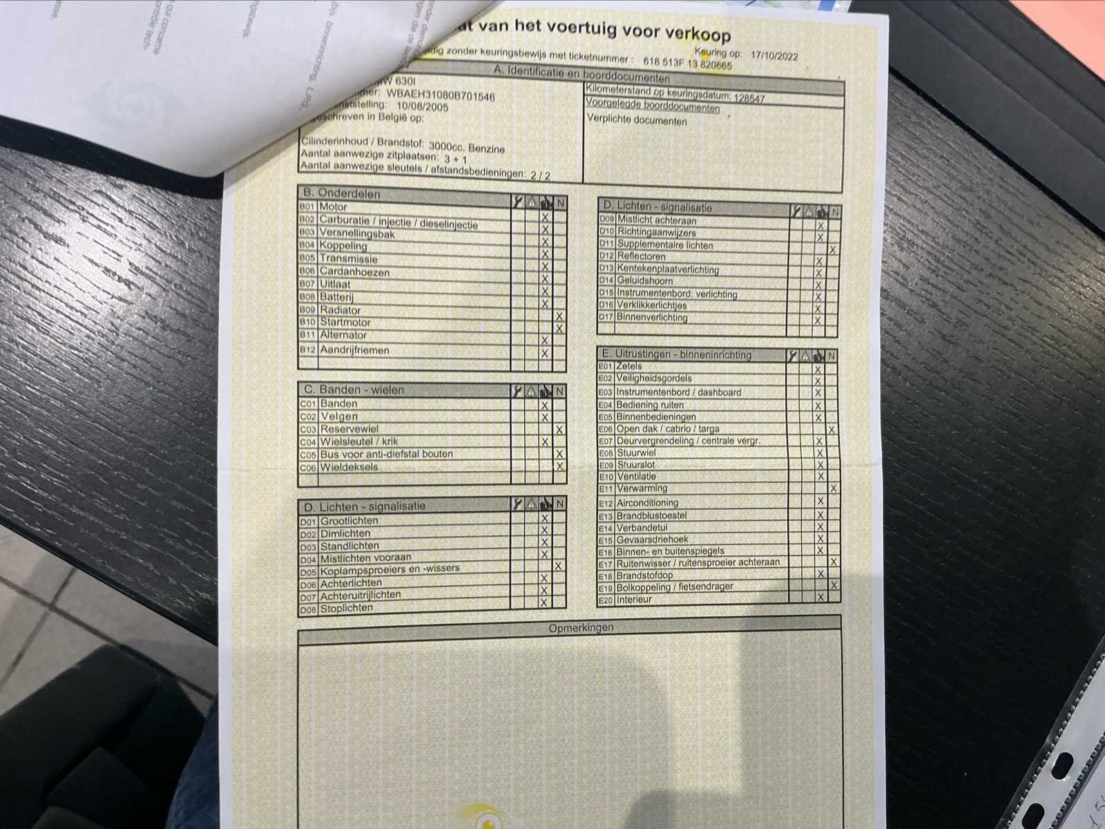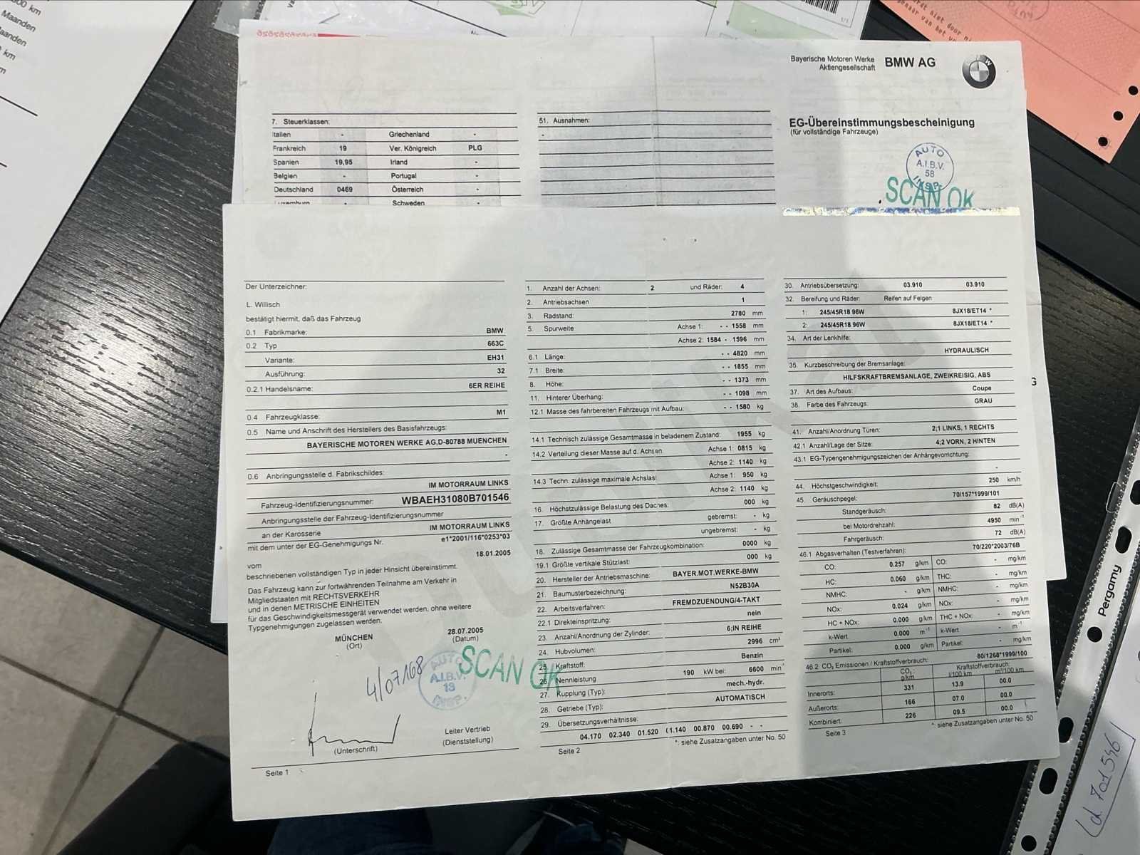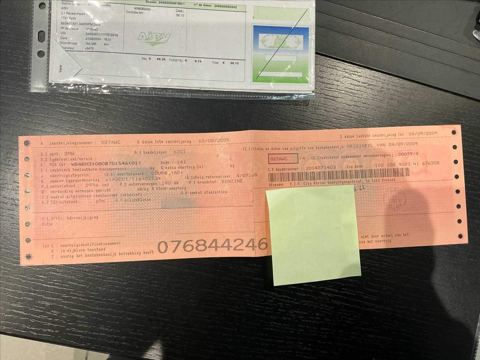 Prachtig onderhouden BMW 630i coupé. Starten en rijden. Voor alle opties zie bijgevoegde foto’s. No Merk: BMW Model: 630i Type: Coupé Bouwjaar: 2005 Afgelezen kilometerstand: 128937km Cilinderinhoud: 2996cc Vermogen (kW): 190kW Brandstof: Benzine Chassisnummer: WBAEH31080B701546(01) Laadvermogen: 1940kg Datum eerste toelating: 10/08/2005 Vermogen (pk): 258hp Energielabel: Euro 4 Aandrijving: Achterwielaandrijving Aantal zitplaatsen: 5 Maximaal trekgewicht ongeremd: 750kg Maximaal trekgewicht geremd: 2100kg Kleur: Zilver Transmissie: Automaat Stuurwiel: Links Aantal deuren: 3 Aantal sleutels: 2 Ledig gewicht: 1500kg Aantal cilinders: 6 Nationaliteit documenten: België Onderhoudshistorie: Ja Carpass: true Start en rijdt: Ja startinformatie : Ok