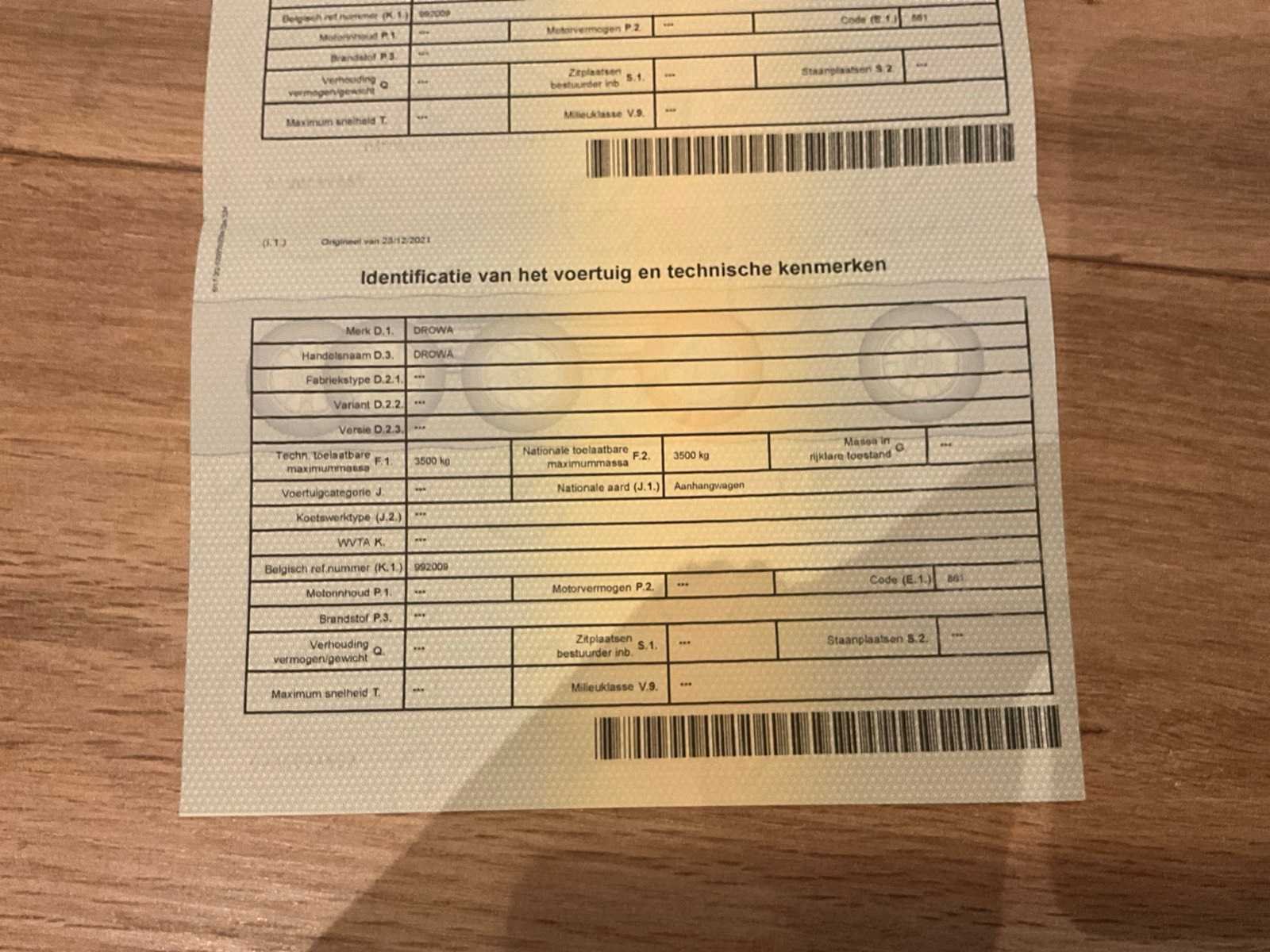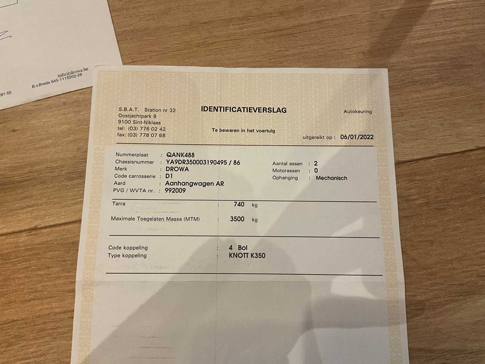 Heeft verzwaard en versterkte banden. Voorzien van 3,5 Ton mdr.is vorige keuring afgekeurd op het mist lampje, deze moet dus vervangen worden. Voor derest is alles in orde. Is geheel van gegalvaniseerd staal en van RVS.210x350 cm. Binnenlaat is 126x350x24 cm. Nee Merk: Drowa Type: DR3500 Bouwjaar: 2003 Chassisnummer: YA9DR350003190495 Ledig gewicht: 3500kg Datum eerste toelating: 01/10/2003