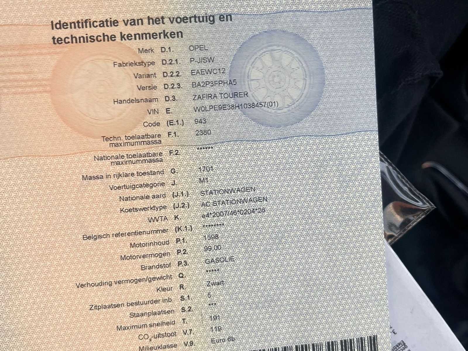 Rijd goed Zeer propere wagen Licht lawaaierig koppeling No Merk: Opel Model: Zafira Bouwjaar: 2017 Afgelezen kilometerstand: 280000km Cilinderinhoud: 1598cc Vavato voert geen technische keuring uit.: true Inschrijvingsbewijs - deel 1 : Ja Inschrijvingsbewijs - deel 2: Ja