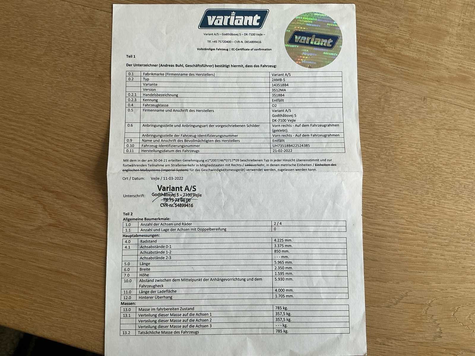2022 variant 3512ma 2amb-5 aanhangwagen