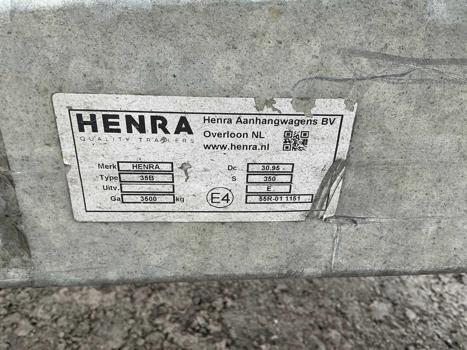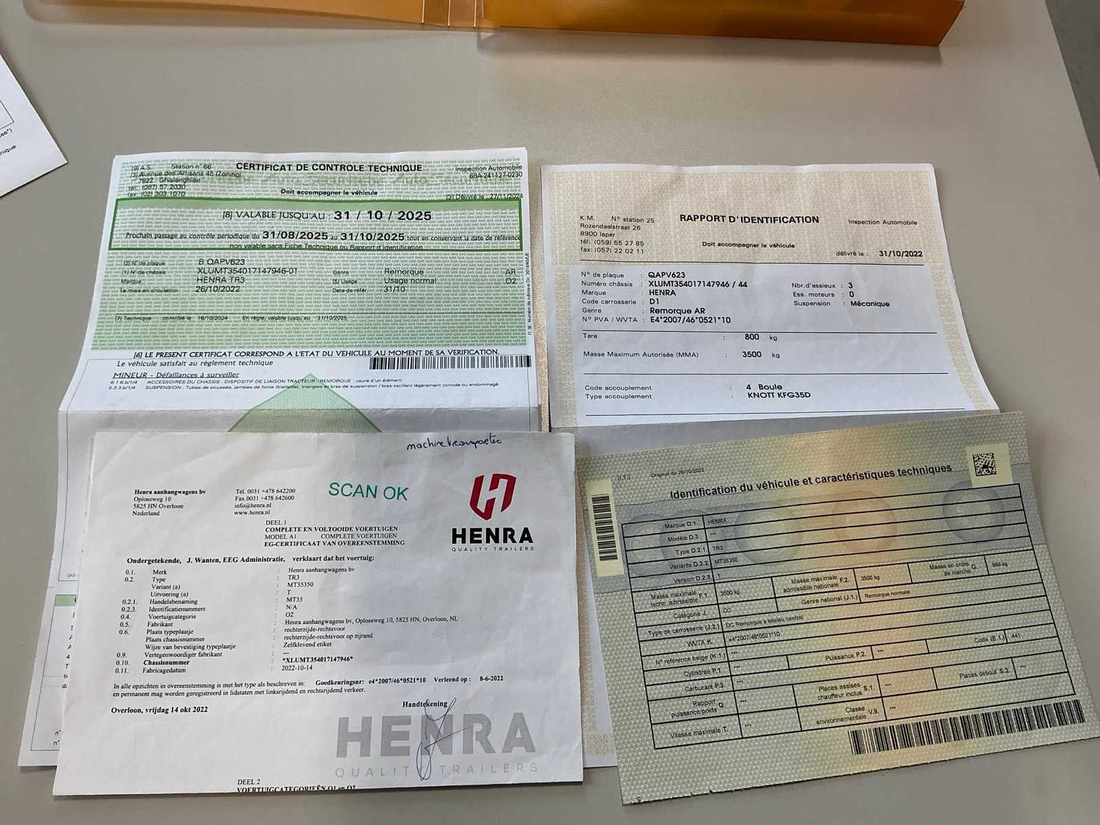 Nee Merk: Henra Type: TR3 Bouwjaar: 2022 Chassisnummer: XLUMT354017147946 Aantal assen: 3 Laadbak afmeting l: 400cm Laadbak afmeting b: 170cm Datum eerste toelating: 26/10/2022 Nationaliteit documenten: Belgisch