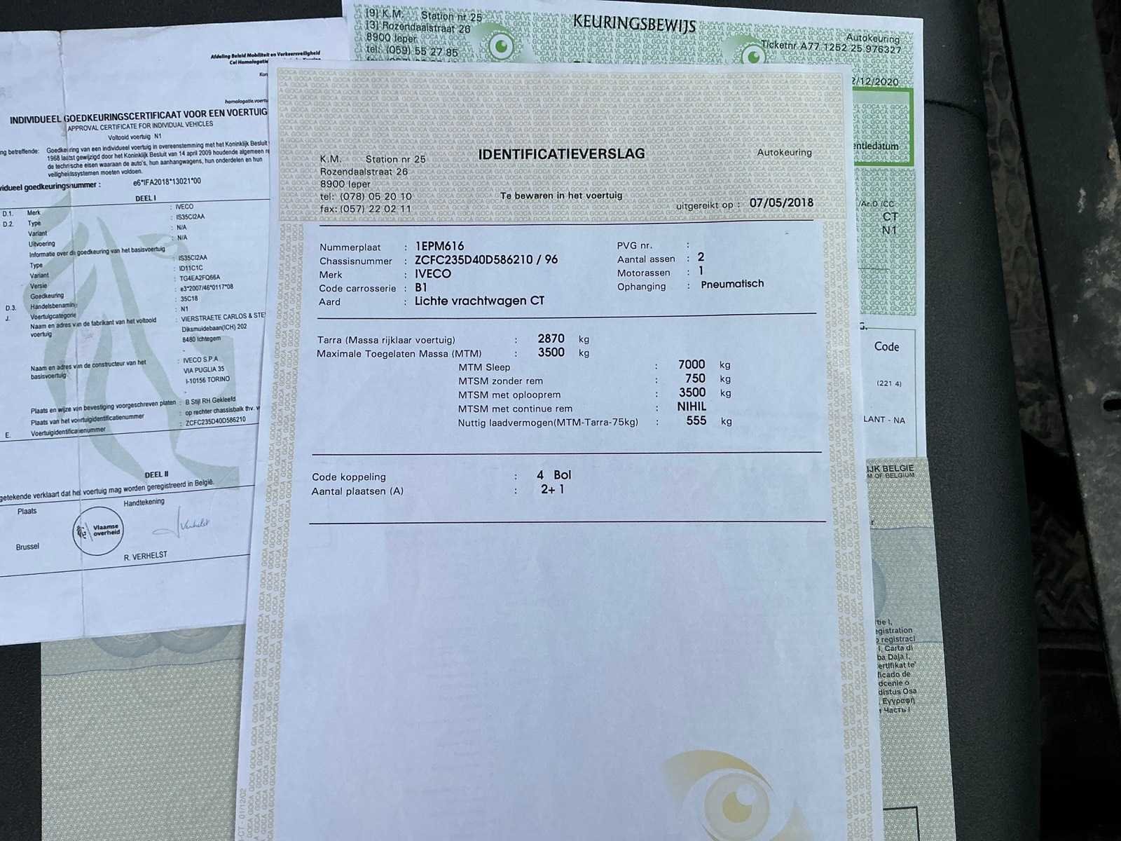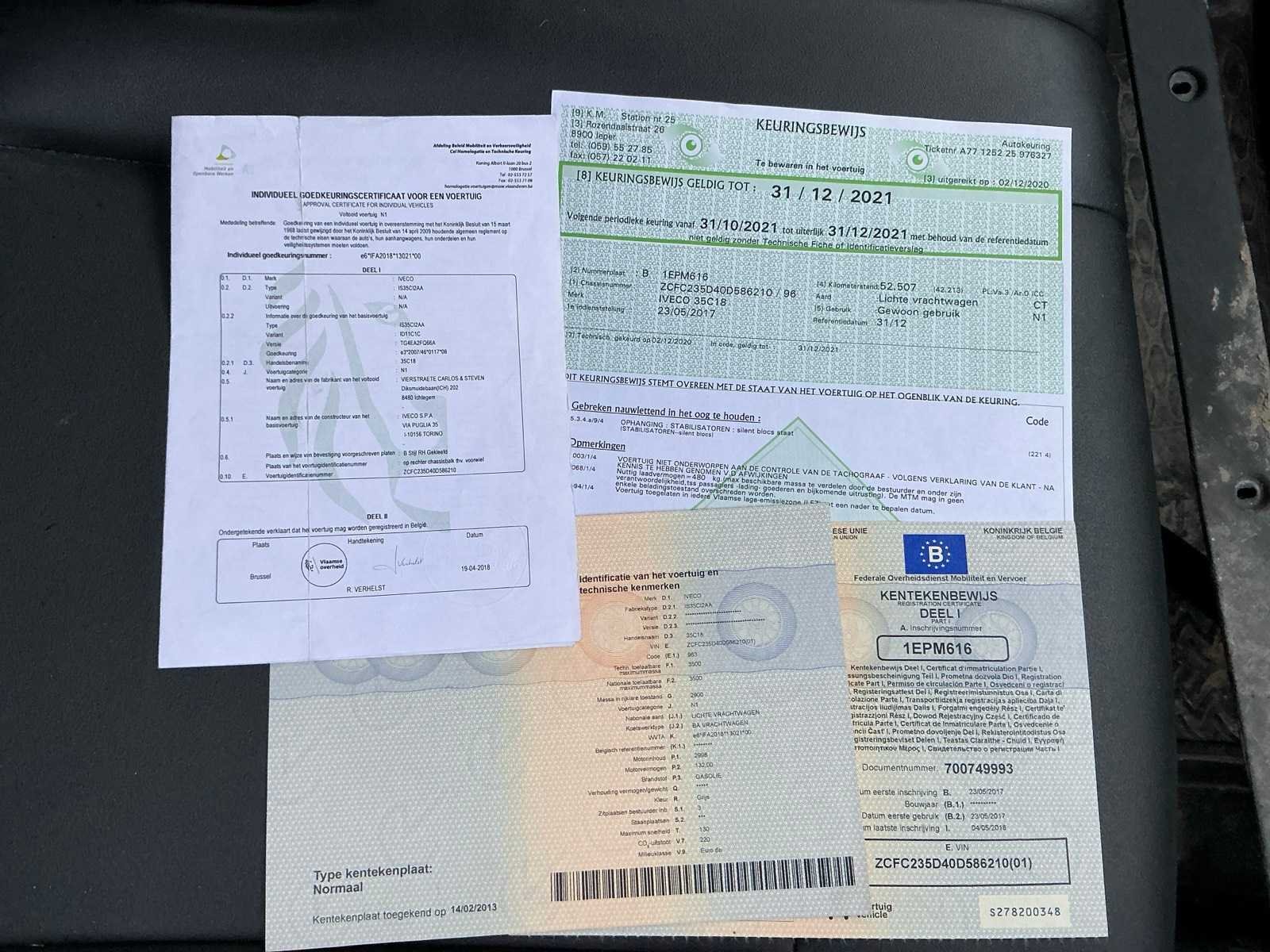 Nee Merk: Iveco Type: 35C18 Model: Daily Bouwjaar: 2017 Chassisnummer: ZCFC235D40D586210 Afgelezen kilometerstand: 61972km Cilinderinhoud: 2998cc Vermogen (kW): 132kW Brandstof: diesel Datum eerste toelating: 23/05/2017 Transmissie: Automaat Aantal zitplaatsen: 3 Kleur: Grijs Nationaliteit documenten: Belgisch Aantal deuren: 2 Aantal sleutels: 2 Emissieklasse: EURO 6B Boorddocumenten aanwezig?: true Startinformatie: START / RIJDT
