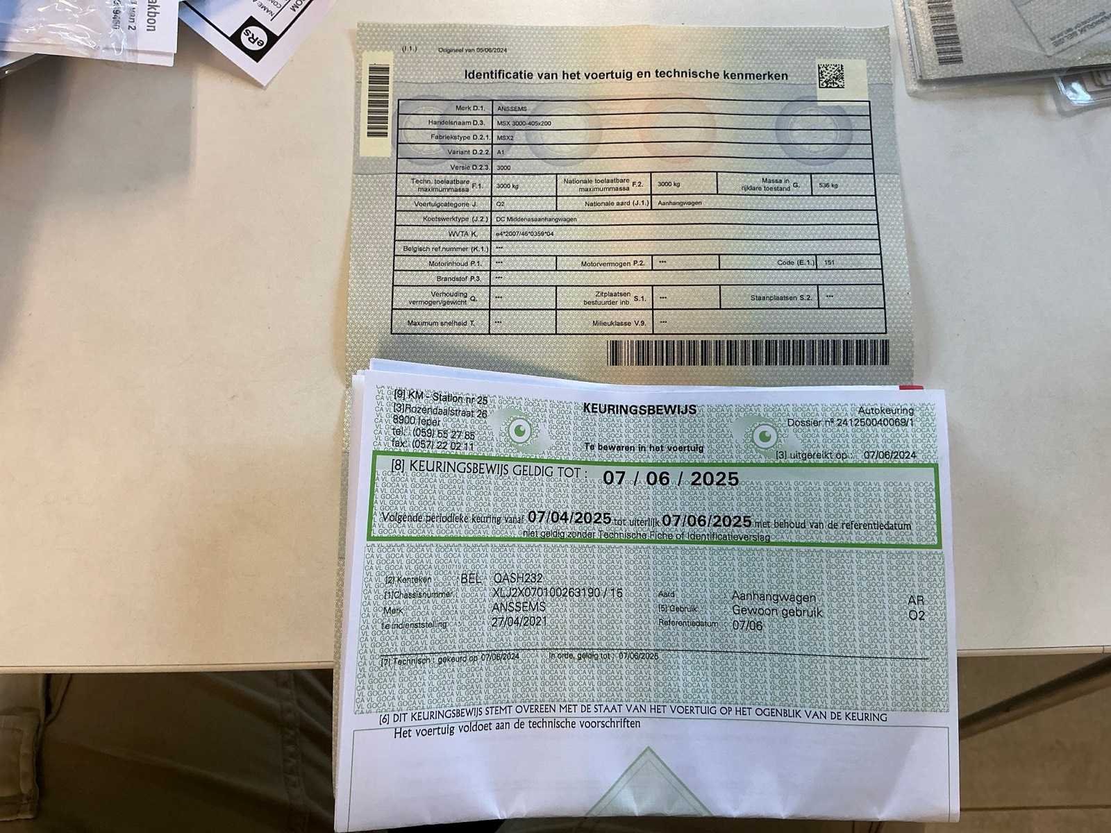 Nee Merk: Anssems Type: 3000-405x200 Model: MSX Bouwjaar: 2021 Chassisnummer: XLJ2X070100263190 Aantal assen: 2 Laadbak afmeting l: 400cm Laadbak afmeting b: 200cm Laadvermogen: 3000kg Datum eerste toelating: 27/04/2021 Nationaliteit documenten: Belgisch