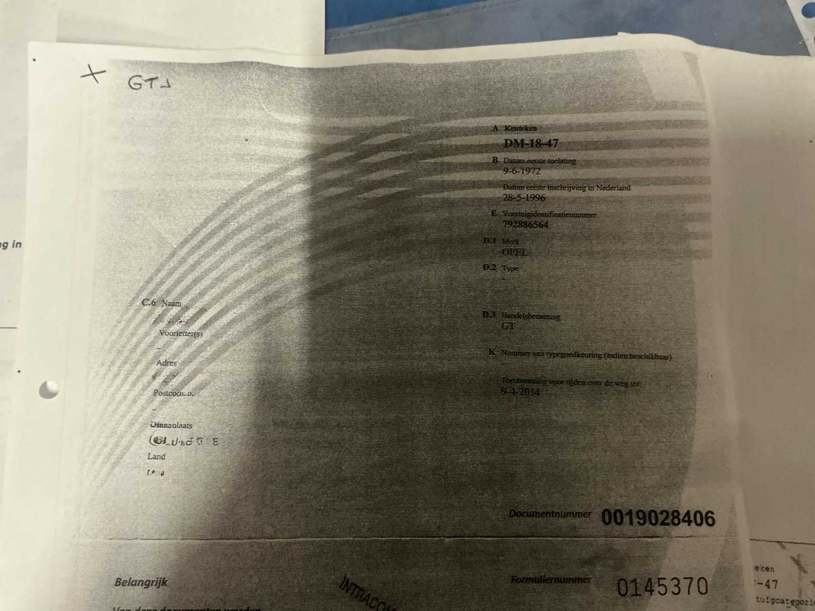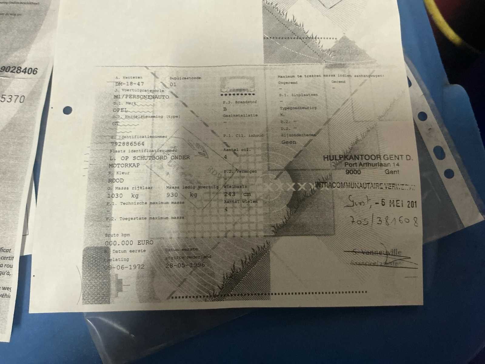 Alle originele documenten zullen aanwezig zijn bij afhaling No Merk: Opel Model: GT 1900 Bouwjaar: 1972 Afgelezen kilometerstand: 57268km Brandstof: Benzine Chassisnummer: 792886564 Datum eerste toelating (NL): 28/05/1996 Transmissie: Automaat Start en rijdt: Ja Vavato voert geen technische keuring uit.: true