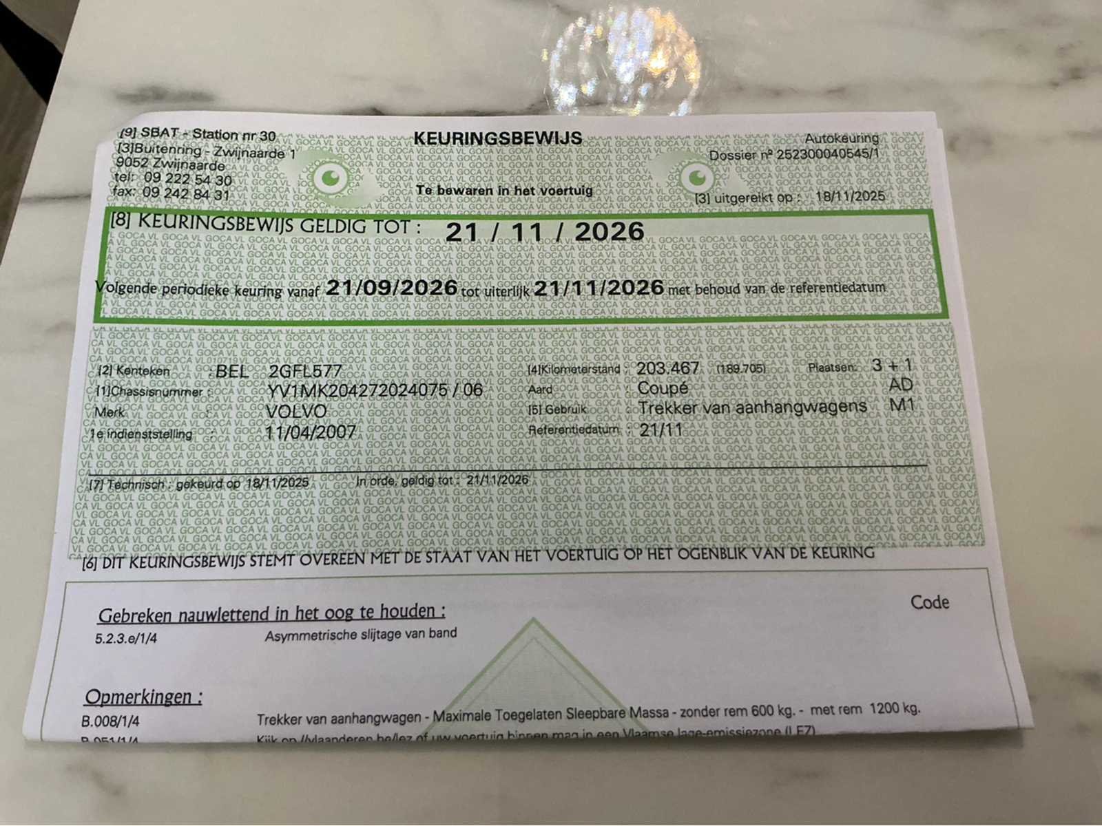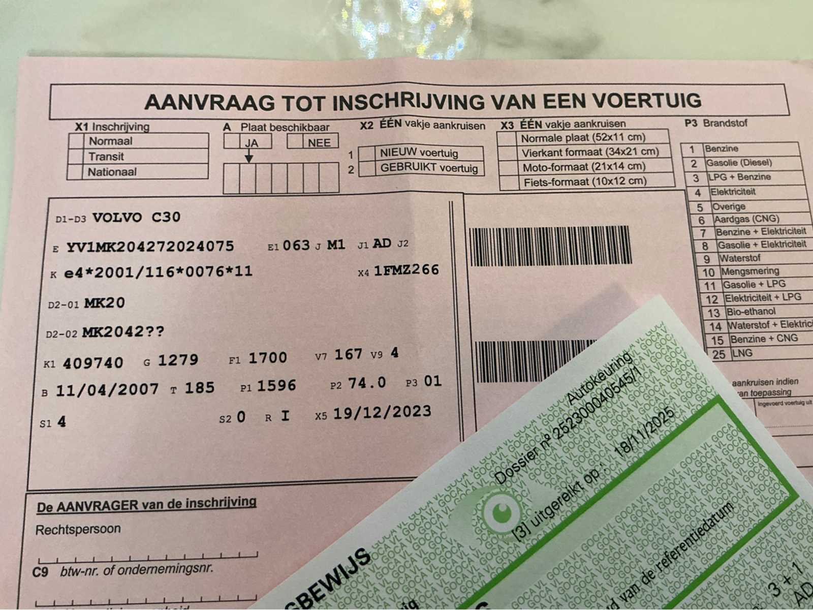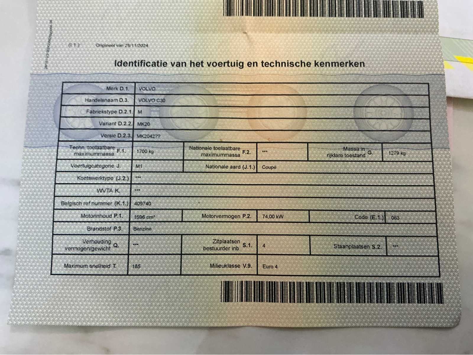 Nee Kenteken: 2GFL577 Merk: Volvo Model: C30 Bouwjaar: 2007 Afgelezen kilometerstand: 205491km Cilinderinhoud: 1596cc Vermogen (kW): 74kW Brandstof: benzine Chassisnummer: YU1MK204272024075 Datum eerste toelating: 11/04/2007 Aantal zitplaatsen: 4 Transmissie: Handgeschakeld Emissieklasse: Euro 4 Ledig gewicht: 1279kg Nationaliteit documenten: Belgische Start en rijdt: Ja Keuringsrapport geldig tot: 21/11/2026 Vavato voert geen technische keuring uit.: true Inschrijvingsbewijs - deel 1 : Aanwezig Inschrijvingsbewijs - deel 2: Aanwezig