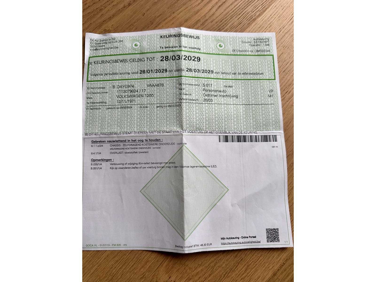 In redelijke staat. Chassis is goed Mechanisch goed, start rijdt en remt normaal. Optisch niet perfect Belgische papieren Gekeurd tot 2029 No Chassisnummer: 113079024 Merk: Volkswagen Model: Kever 1300 Afgelezen kilometerstand: 5200km Brandstof: Benzine Datum eerste toelating: 12/11/1971 Boorddocumenten aanwezig?: true Kentekenpapieren compleet?: true Carrosserie: Coupé Transmissie: Manual Vermogen (pk): 40 Aantal deuren: 2 Aantal zitplaatsen: 4 Aantal sleutels: 1 Startinformatie: Start en rijdt Kleur: Oranje Cilinderinhoud: 1300 Aantal cilinders: 4 Bouwjaar: 1971