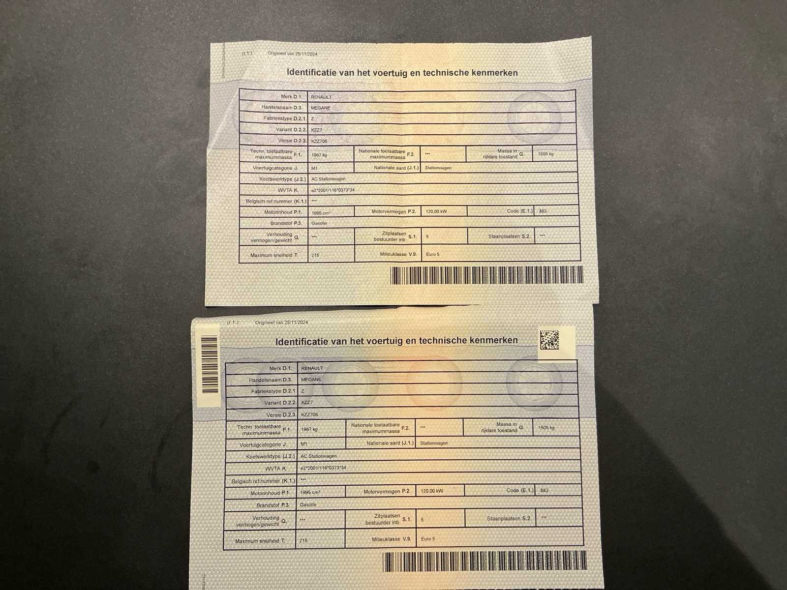 No Merk: Renault Model: Megane Type: GT sport Bouwjaar: 2013 Afgelezen kilometerstand: 175760km Cilinderinhoud: 1996cc Vermogen (kW): 120kW Brandstof: Diesel Chassisnummer: VF1KZZ70647857991 Datum eerste toelating: 25/02/2013 Vermogen (pk): 200hp Aandrijving: FWD Aantal zitplaatsen: 5 Kleur: Bruin Transmissie: Manueel Accessoires - checkbox: Trekhaak / Full option Emissieklasse: Euro 5 Aantal deuren: 5 Aantal sleutels: 3 Ledig gewicht: 1505kg Aantal cilinders: 4 Carrosserie: Station Nationaliteit documenten: Belgische Onderhoudshistorie: Aanwezig Gelijkvormigheidsattest aanwezig: true Carpass: true Start en rijdt: Ja Technische fiche: true startinformatie : Start en rijdt Zichtbare schade: Neen Self drive export possible : true Vavato voert geen technische keuring uit.: true Airconditioning: true Navigatie: true Xenon verlichting: true LED-koplampen: true Leder bekleed: true Inschrijvingsbewijs - deel 1 : Aanwezig Inschrijvingsbewijs - deel 2: Aanwezig