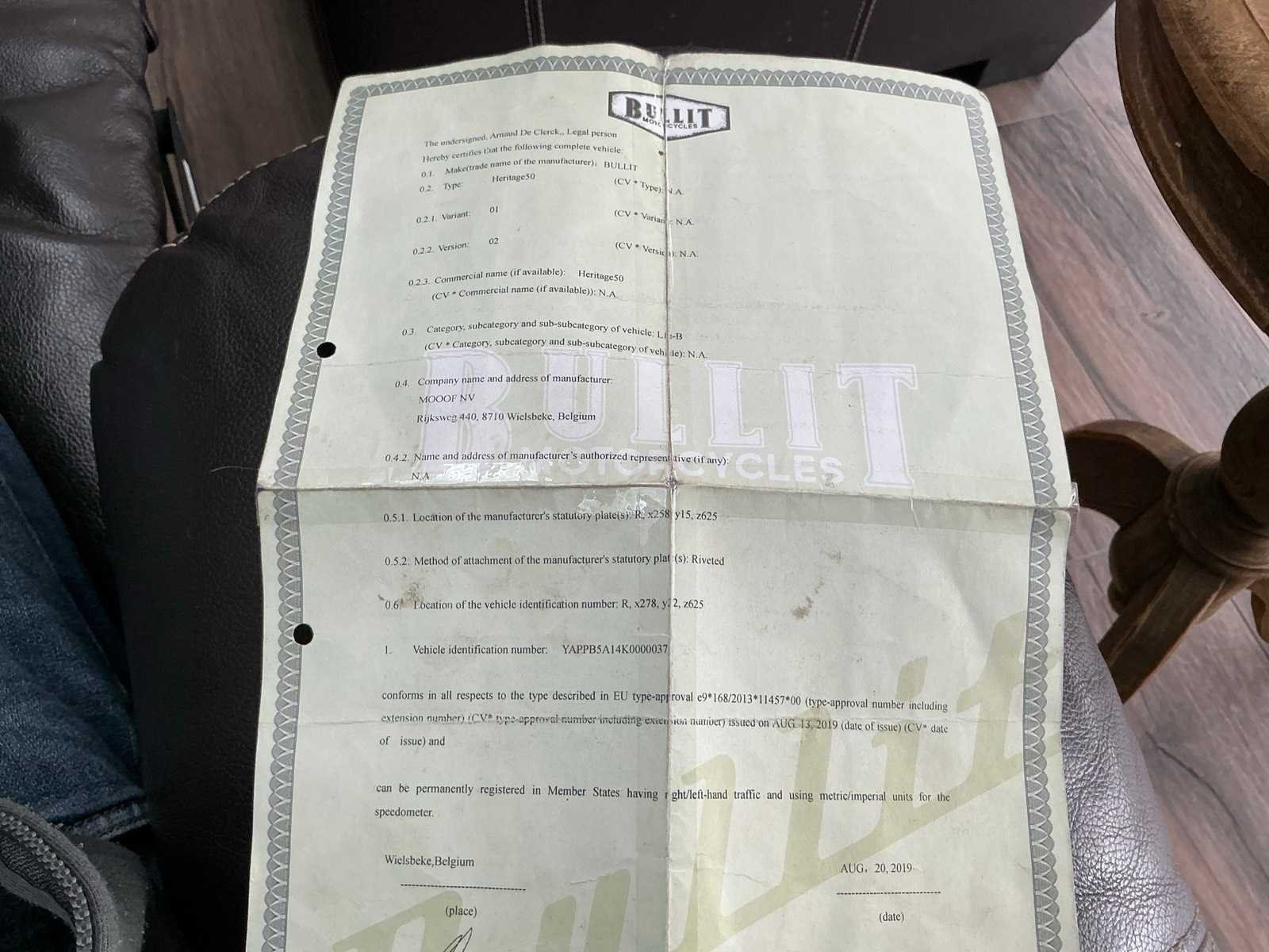 Fit 125cc kit Non Merk: Bullit Model: Dax Type: Heritage 50 Brandstof: Benzine Chassisnummer: Yappb5a14k0000037 Cilinderinhoud: 50cc Datum eerste toelating: 2019 Gewicht: 242kg Vermogen (kW): 0.8kW Afgelezen kilometerstand: 1402km Nationaliteit documenten: België Aantal sleutels: 1 Bouwjaar: 2020