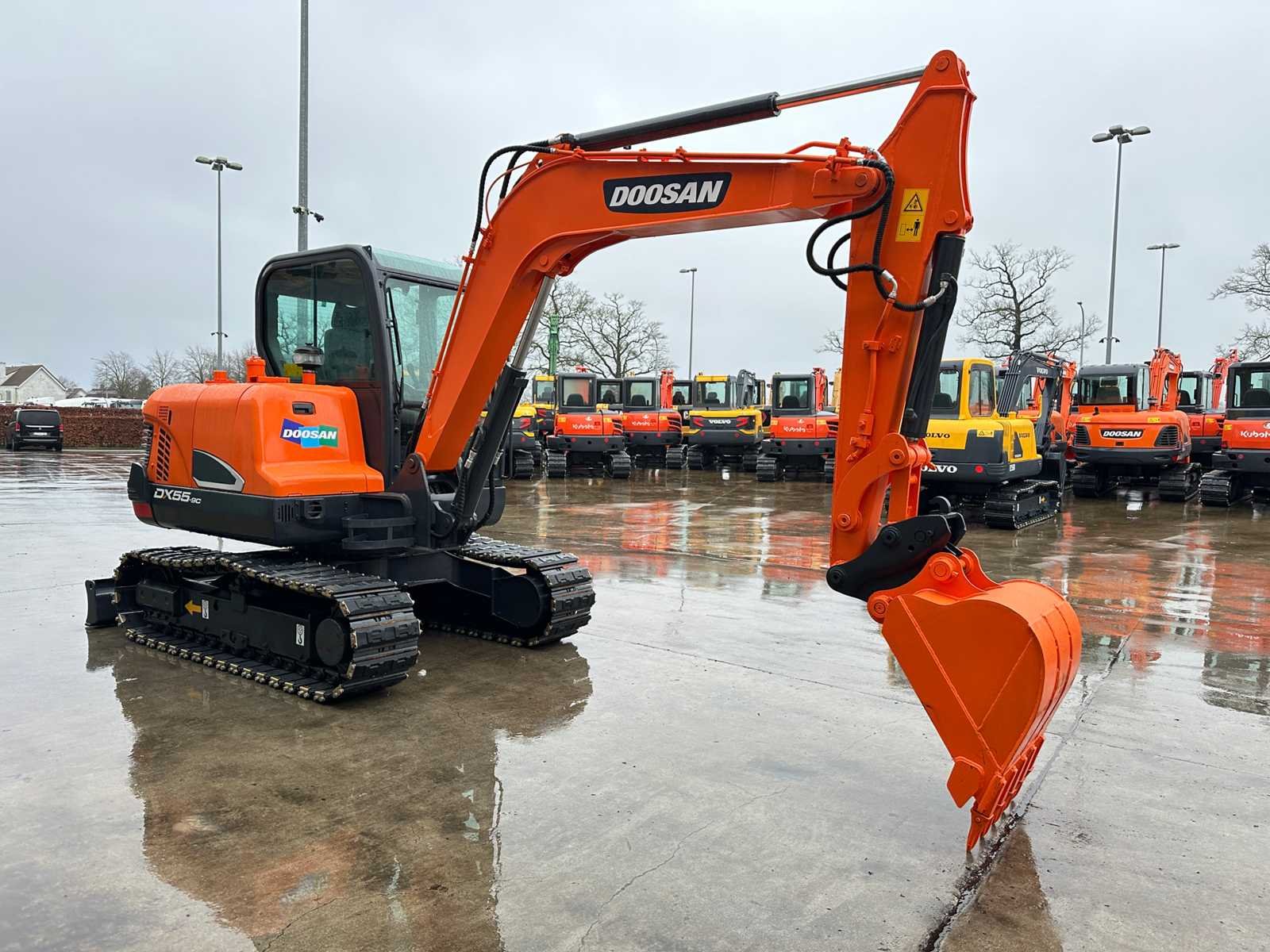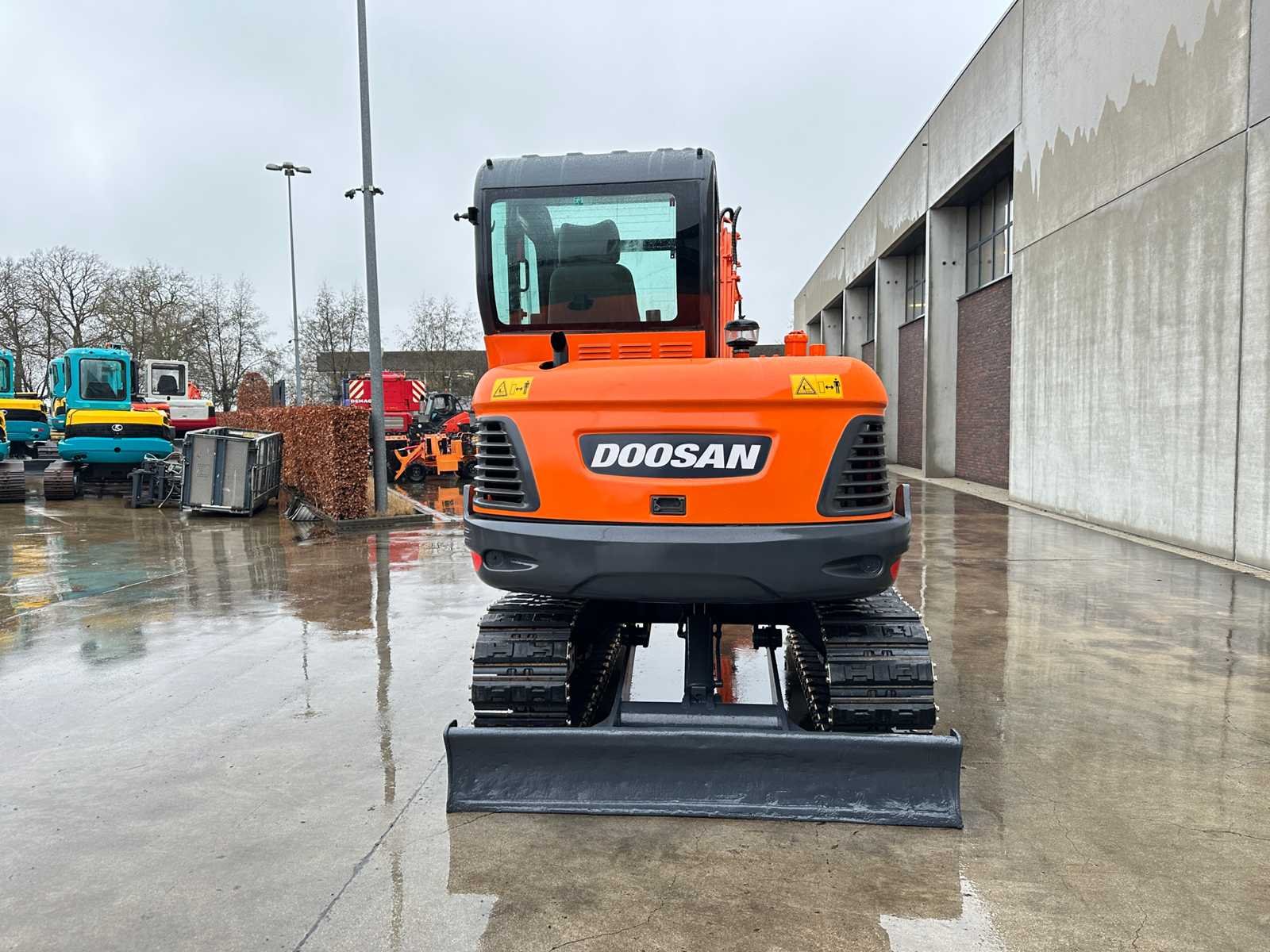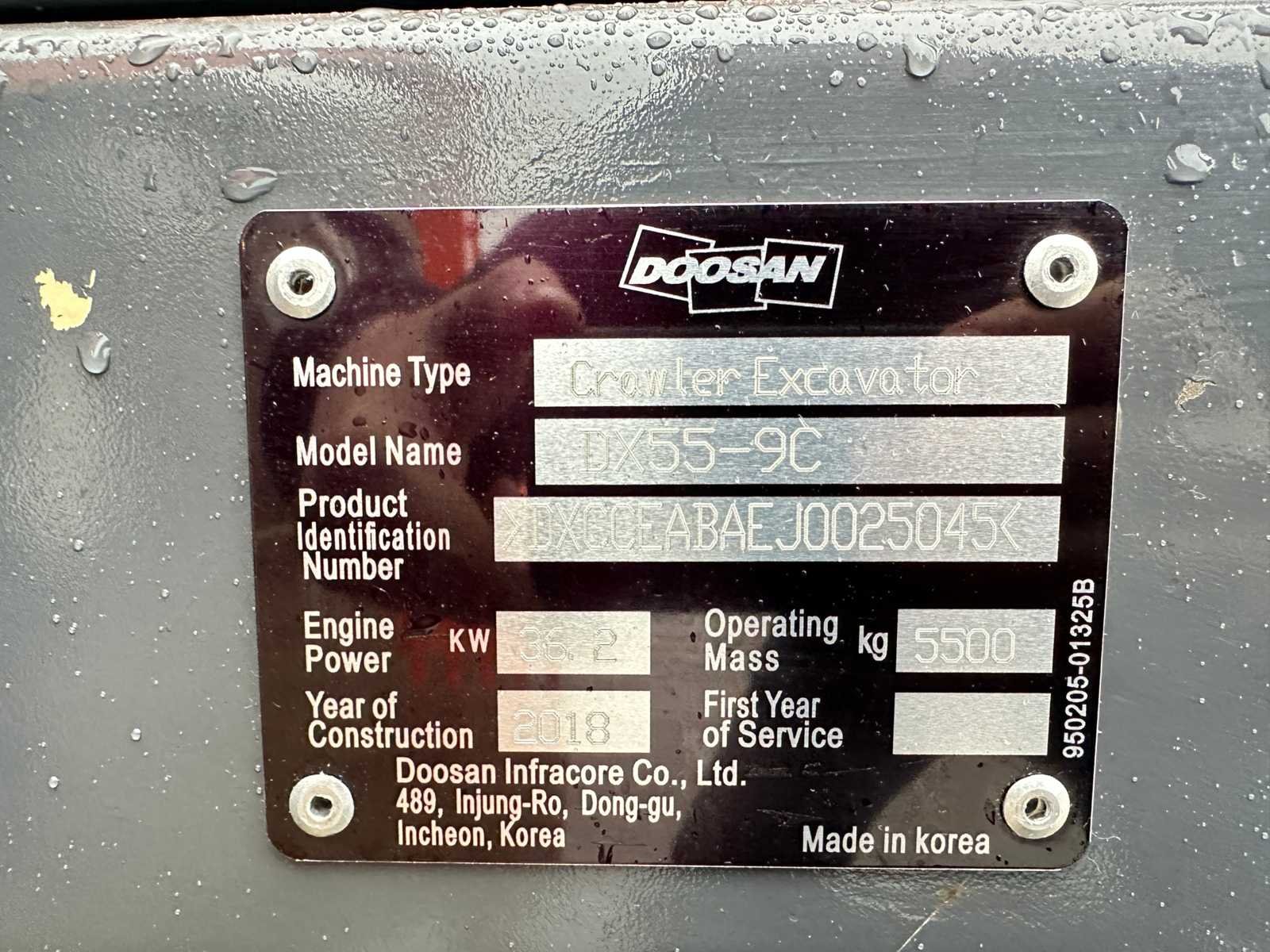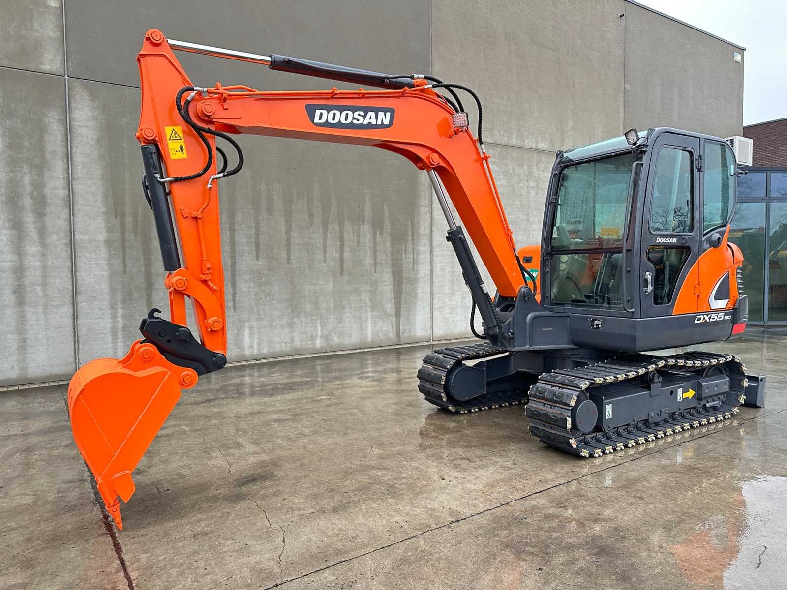Mechanische snelwissel. Hamerleidingen. Tandenbak. Duwblad. Rupsen met rubber pads. Geen documenten. Nee Merk: Doosan Type: DX55-9C Bouwjaar: 2019 Serienummer: DXCCEABAVJ0025045 Merk motor: Yanmar Motorvermogen (kW): 36.2kW Aantal cilinders: 4 Brandstof: Diesel Graafbak afm. b: 650mm Rups breedte: 400mm Afgelezen urenstand: 3162 Eigen gewicht: 5500kg Totale afmeting L: 5700mm Totale afmeting Breedte: 2000mm Totale afmeting Hoogte: 2600mm GS Code: 8429521200