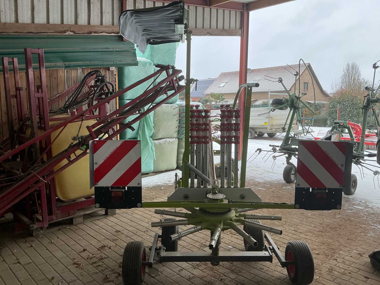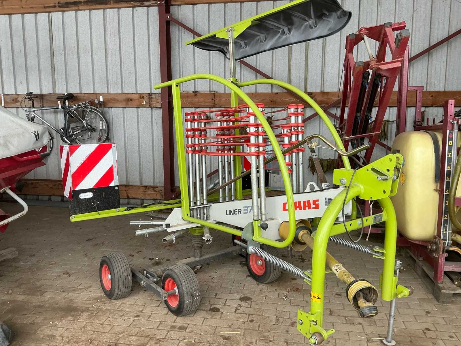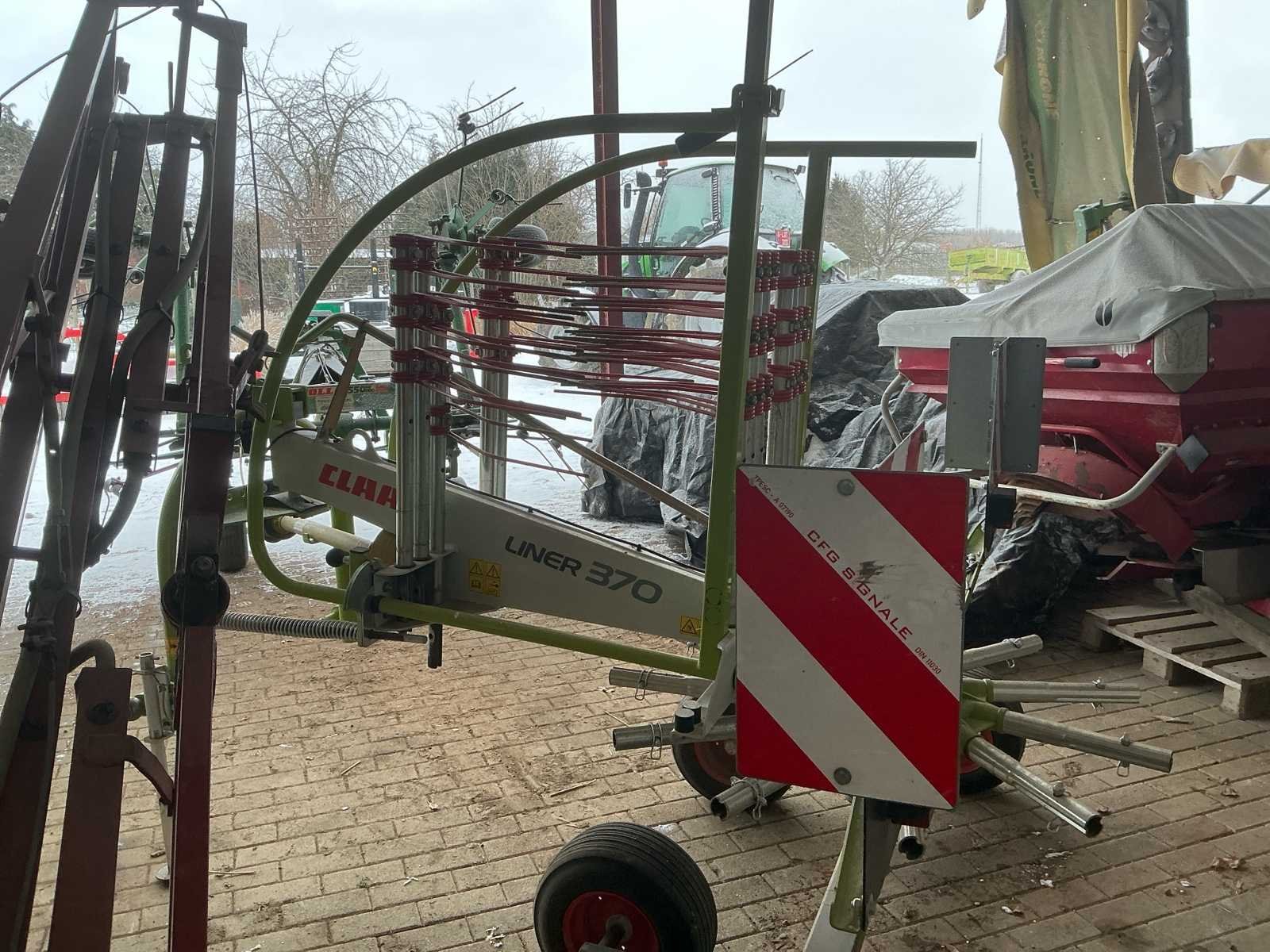 Deze Claas Liner 370 is een compacte en wendbare cirkelhark, geschikt voor het harken van gras, hooi en stro. Dankzij het degelijke ontwerp en de betrouwbare techniek staat deze machine garant voor een nette zwadlegging en efficiënt werken op het veld. De hark is uitgevoerd met een stabiel chassis en goed zicht op het werkgebied. Door de eenvoudige bediening en solide constructie is de Claas Liner 370 geschikt voor zowel kleinere als middelgrote landbouwbedrijven. Voorzien van verlichting en met tandem as. Heeft gediend als reserve toestel, amper gebruikt. No Merk: Claas Type: Liner 370 Serienummer: G1008114 Werkbreedte: 3700mm
