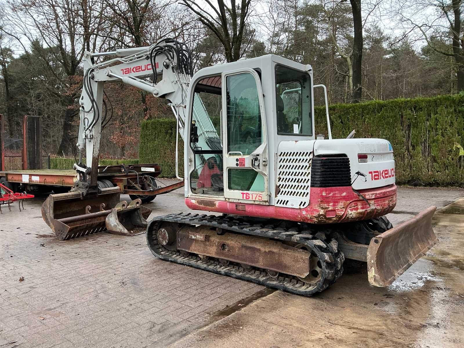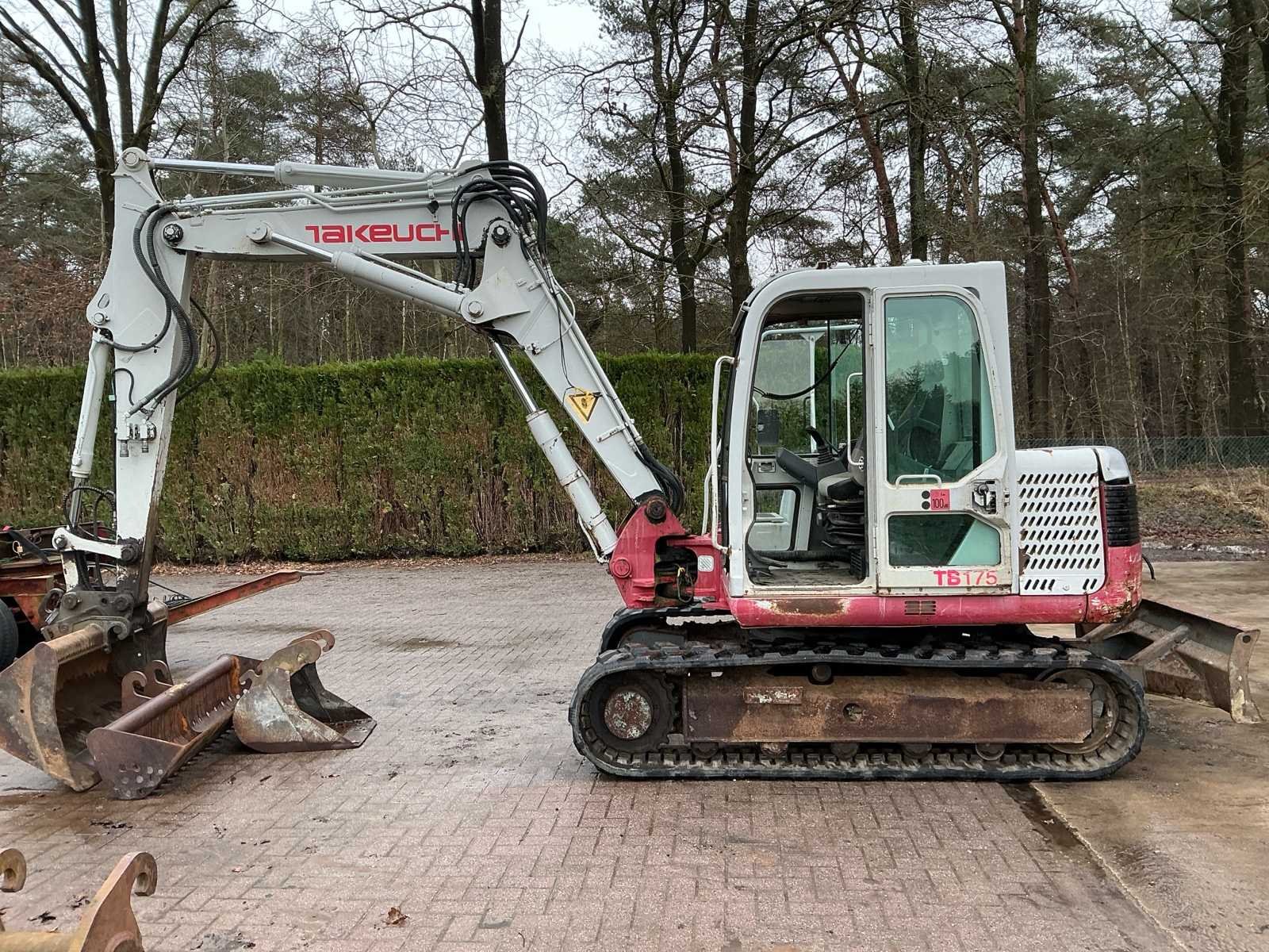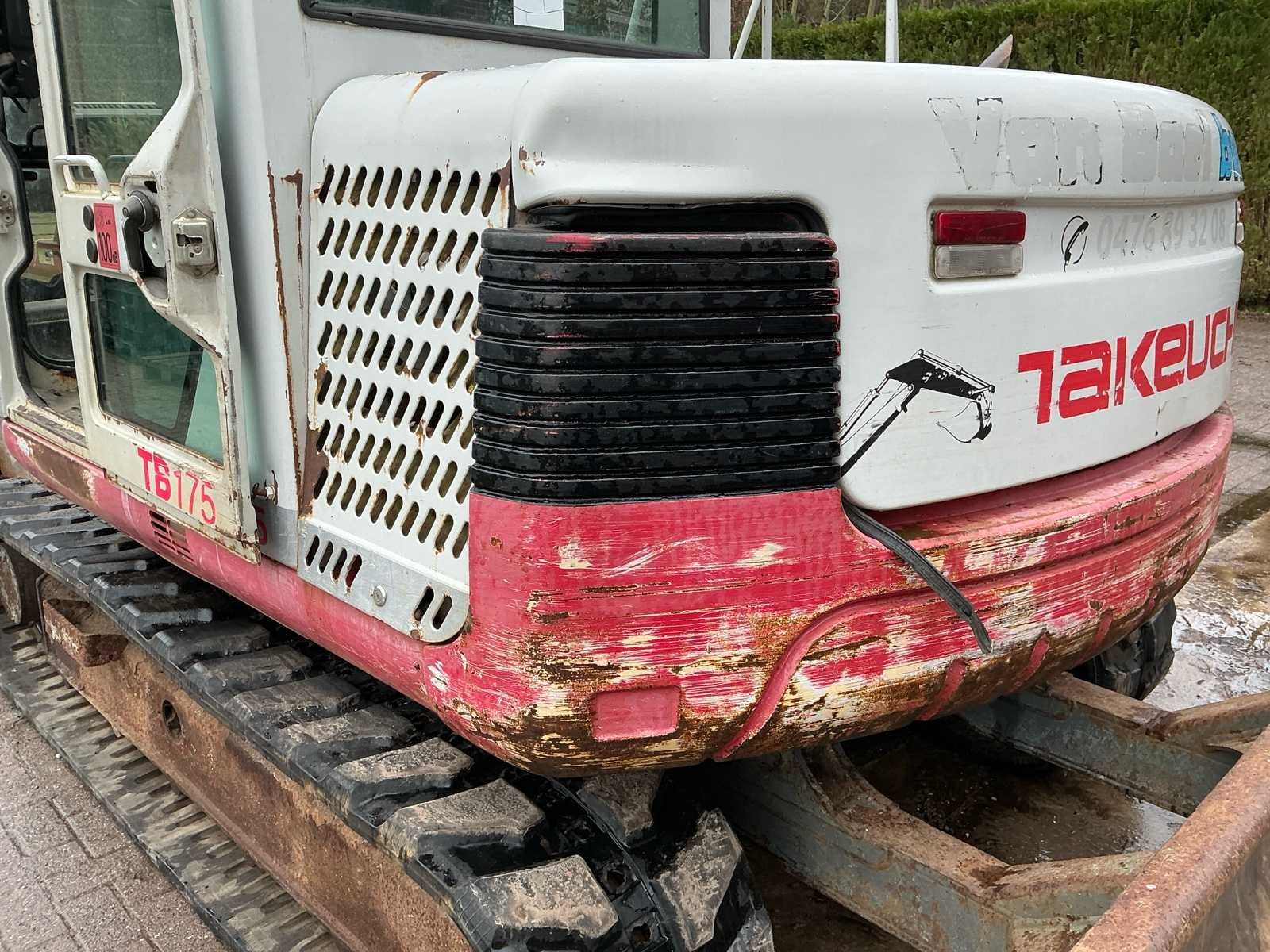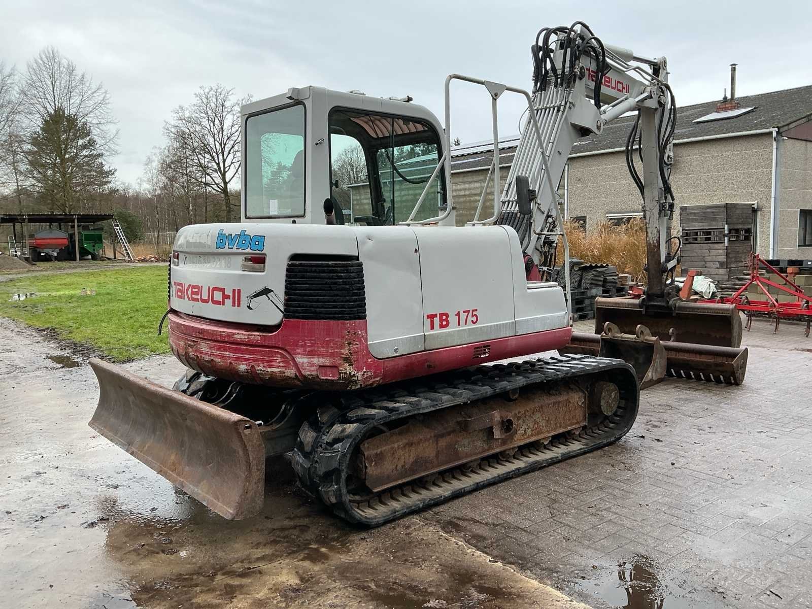 Met 2 graafbakken. Werkt naar behoren! Nieuwe batterij, nieuwe rupsbanden en tandwielen. No Merk: Takeuchi Type: TB175 Bouwjaar: 2006 Merk motor: Yanmar Motorvermogen (kW): 41kW Aantal cilinders: 4 Brandstof: Diesel Bedrijfsgewicht: 7500kg Gieklengte: 3600mm Max. werkbereik: 6700mm Max. graafdiepte: 4100mm Met graafbak: true Cabine: true Afgelezen urenstand: 8874