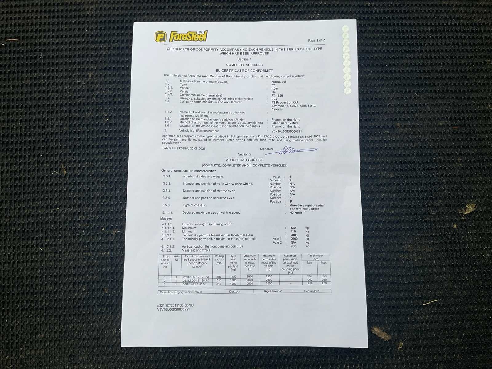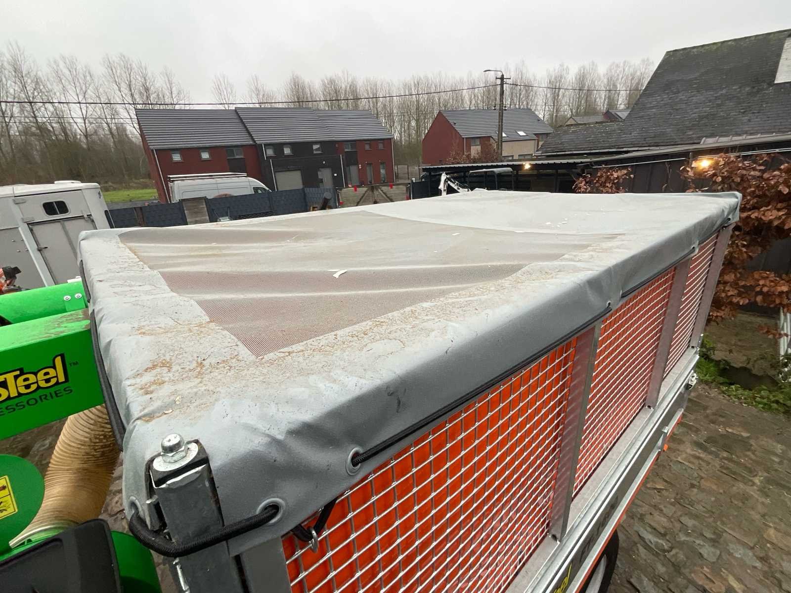 ForeSteel FT-1600 – Jaar 2025 – Vanguard 18 PK benzinemotor Professionele bladstofzuiger op trailer voor het verzamelen en vervoeren van bladeren, lichtgroen afval en afknipsel. 🔧 Belangrijkste kenmerken Merk: ForeSteel Model: FT-1600 Productiejaar: 2025 Type: Op aanhanger gemonteerde getrokken bladzuiger Chassis: gegalvaniseerde aanhanger met gaaskast Carrosserieinhoud: ca. 1.600 liter Bovenste zeil: heden Achterluik: open voor het lossen ⚙️ Motor Motor: Vanguard Vermogen: 18 pk Brandstof: Benzine Uurmeter: ongeveer 6,5 uur (te zien op de foto) Start: Handmatig Motorische status: visueel schoon, een paar uur 🌪️ Zuigsysteem ForeSteel-turbine gemonteerd aan de voorkant van de aanhanger Grote diameter zuigslang (aanwezig) Draaibare zuignozzle met geleidewielen Blaaskanaal naar de achterste carrosserie Zij- en achtergrillen 🚚 Trailer Enkelassige Wielen: banden met landbouwprofiel Koppeling: KNOTT-kopstuk (zichtbare plaat) Jockeywiel: heden Achterverlichting: Aanwezig CE-goedkeuring (certificaat zichtbaar op eerdere foto's) No Merk: Foresteel Type: FT-1600 Bouwjaar: 2025 Serienummer: FV-48172 Brandstofmotor aangedreven: true Brandstof: Benzine Zuigfunctie: true