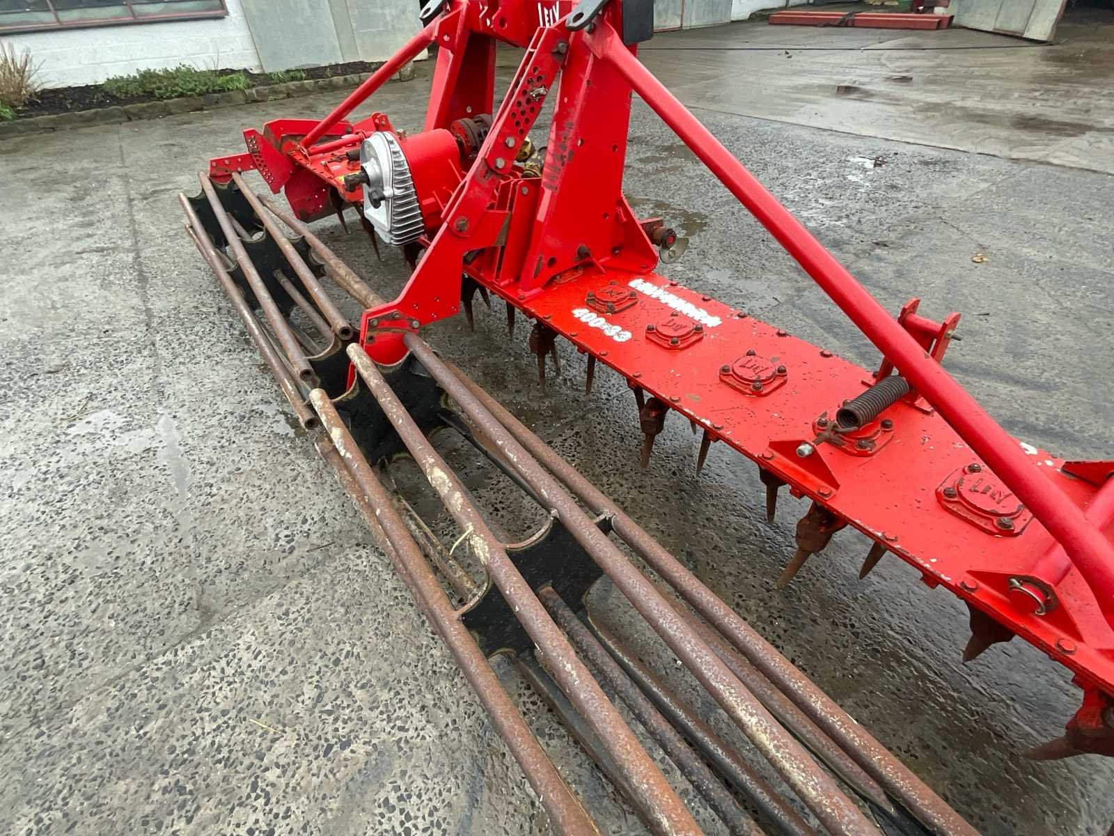 LELY Rotary Harrow – ± 3,00 m – Kooiroller – PDF LELY roterende hef, uitgerust met een driepuntskoppeling en PTO-aangedreven trekhaak. De machine is uitgerust met een achterste stuurroller (kooiroller) en wordt geleverd met zijn cardan. De tanden zijn over de hele breedte aanwezig en tonen normale slijtage door gebruik. De constructie is compleet en in goede staat. Zichtbare tekenen van slijtage, vervaagde verf en oppervlaktecorrosie. Geschatte werkbreedte: ± 3,00 m. No Merk: Lely Type: Herse rotative Serienummer: 9730515 Werkbreedte: 3000mm