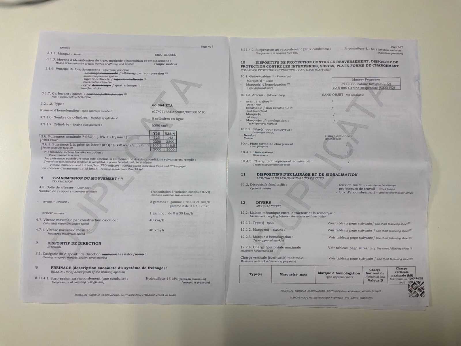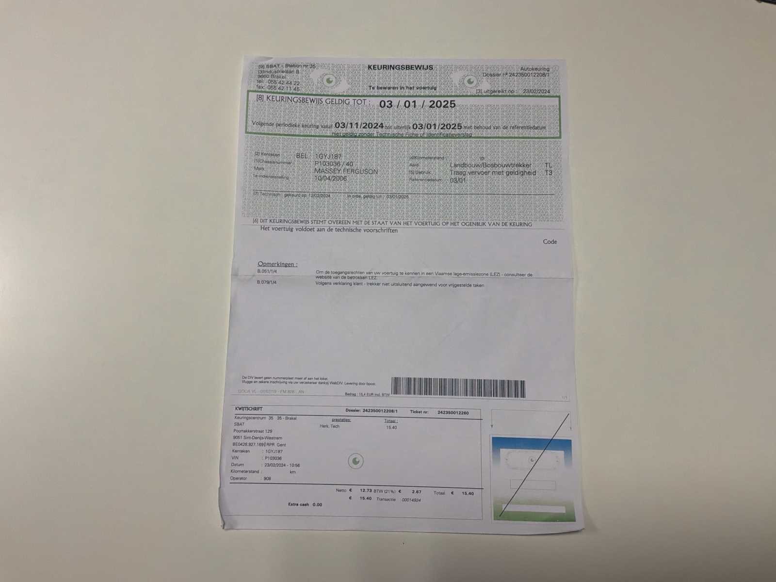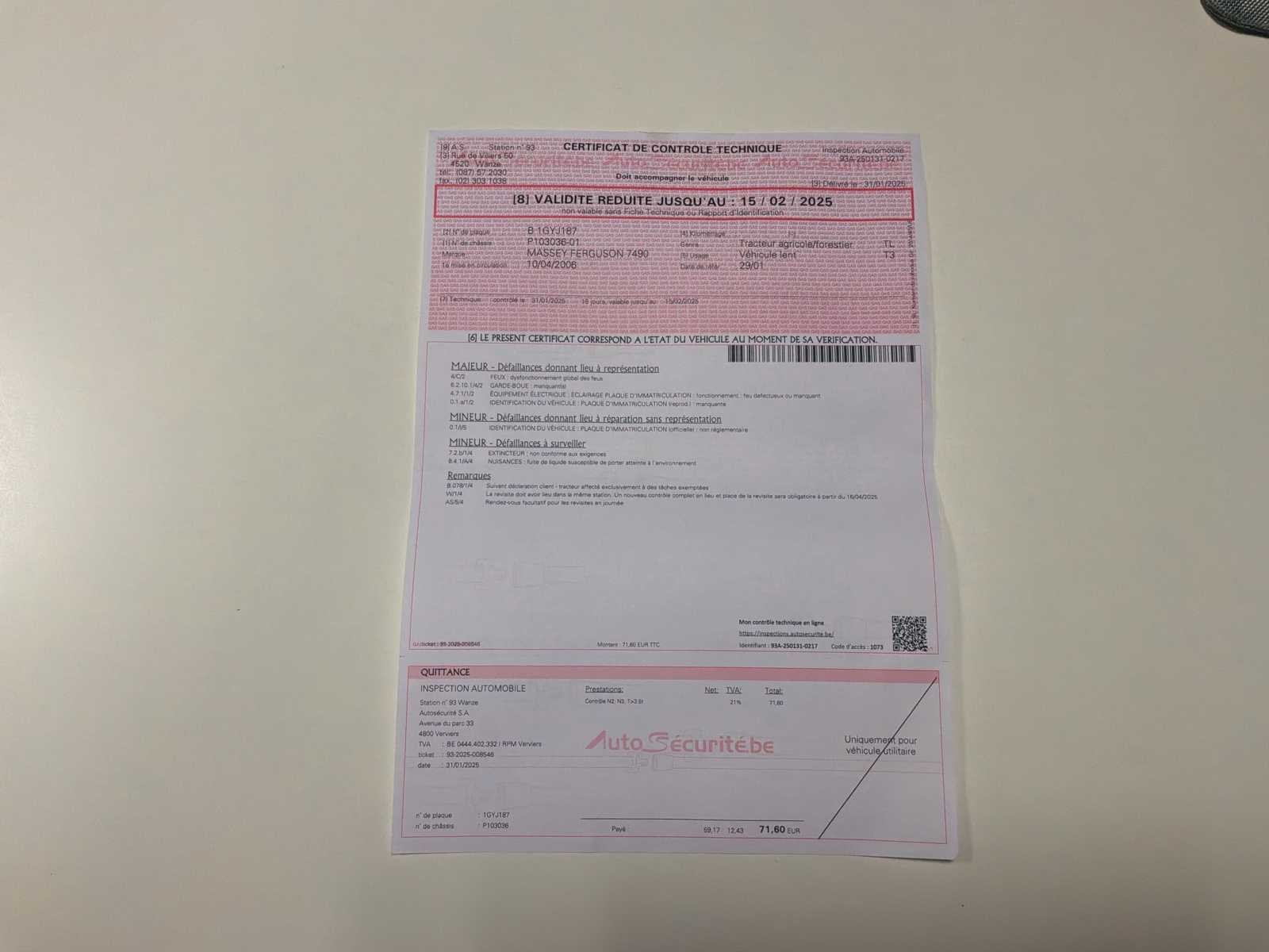 De tractor start niet omdat de oliepomp vervangen moet worden Beschikbare diagnostiek De storing vond plaats tussen de twee technische inspecties Verlichting weer in orde gebracht No Merk: Massey Fergusson Type: YC version Y35 MF7490 Bouwjaar: 2005 Motorvermogen (kW): 125kW Afgelezen urenstand: 10080 Versnellingsbaktype: CVT Continu Variabele Transmissie Cabine: true Luchtgeveerde stoel: true Kentekenpapieren compleet?: true Chassisnummer: P103036