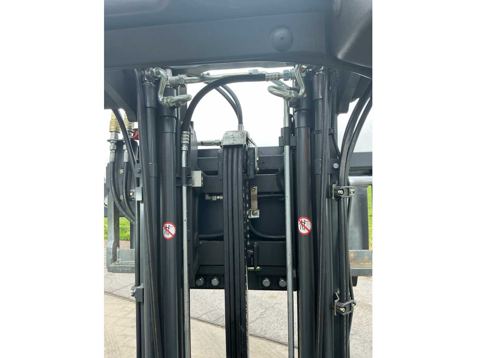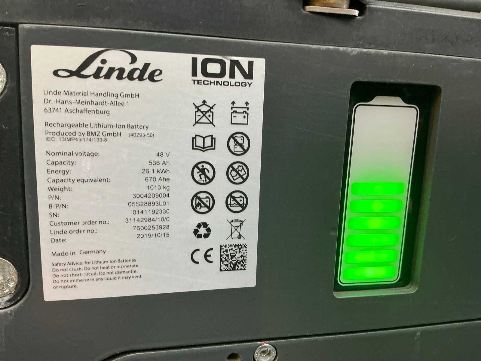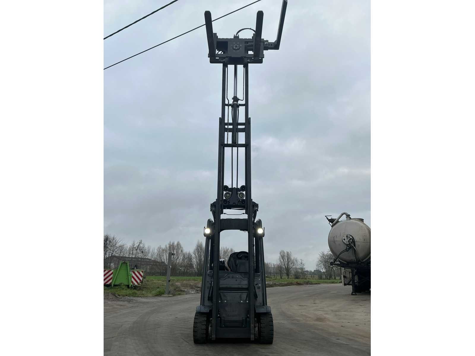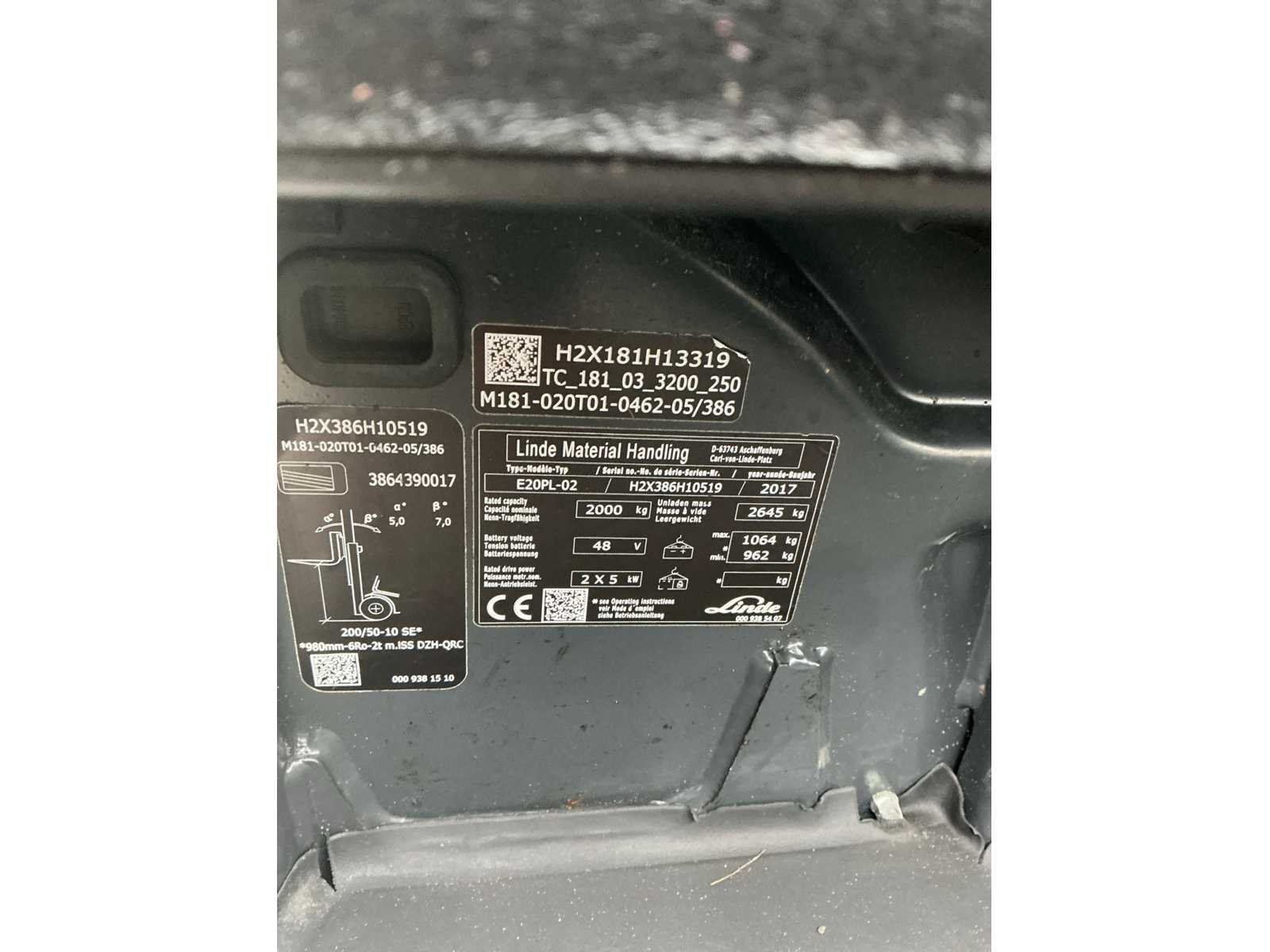 Nieuwe 180 ° rotator met arm . Led werklichten , blue spot en flash light , 4de valve met snelkoppeling en drukloos zet schakelaar Nee Merk: Linde Type: E20PL-02 Bouwjaar: 2017 Serienummer: H2X386H10519 Brandstof: Elektrisch Mast: Triple Soort band: Volrubber banden Aantal wielen: 4 Side-shift: true Roterend vorkenbord: true Triple mast: true Eigen gewicht: 3700kg Hefvermogen: 2000kg Lepellengte: 1200mm Min. hefhoogte: 0mm Max. hefhoogte: 4620mm Vol rubber banden: true Totale afmeting L: 2300mm Totale afmeting Breedte: 1100mm Totale afmeting Hoogte: 2100mm