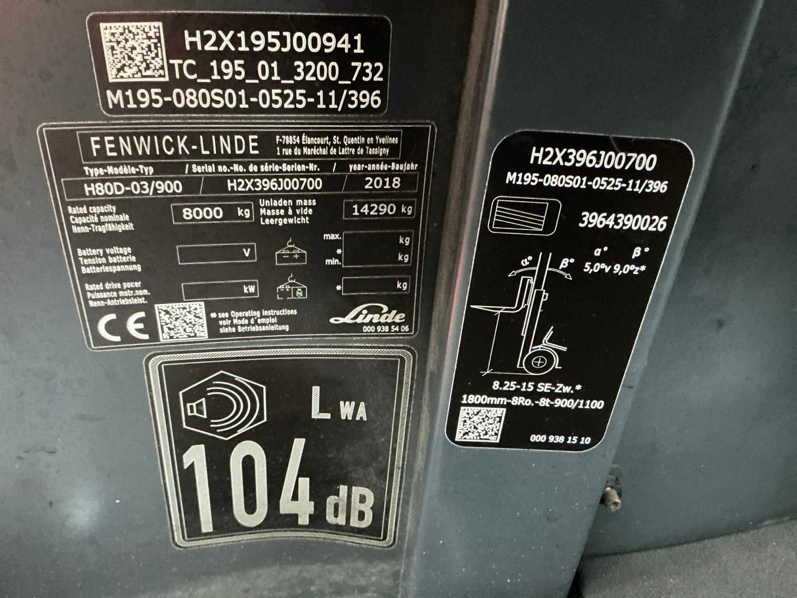Led werklichten , flash light , geveerde stoel , radio , 3de en 4de valve Nee Merk: Linde Type: H80D Bouwjaar: 2018 Serienummer: H2X396J00700 Brandstof: Diesel Mast: Duplex Soort band: Volrubber banden Aantal wielen: 6 Afgelezen urenstand: 8960 Duplex mast: true Eigen gewicht: 14300kg Hefvermogen: 800kg Lepellengte: 1600mm Min. hefhoogte: 0mm Hefhoogte: 5250mm Vol rubber banden: true Totale afmeting L: 3800mm Totale afmeting Breedte: 2300mm Totale afmeting Hoogte: 3900mm Diesel: true