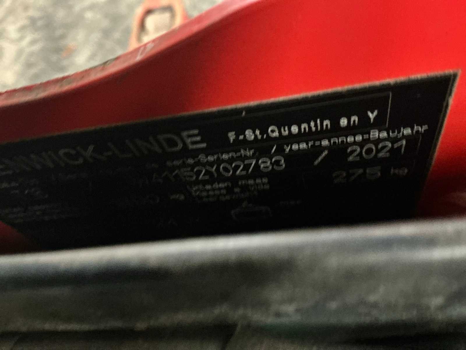 Accu met automatische vulling Nee Merk: Linde Type: T16 Bouwjaar: 2021 Serienummer: W41152Y02783 Hefvermogen: 1600kg Lepellengte: 1150mm Afgelezen urenstand: 1090 Eigen gewicht: 500kg Totale afmeting L: 1700mm Totale afmeting Breedte: 730mm Totale afmeting Hoogte: 1800mm