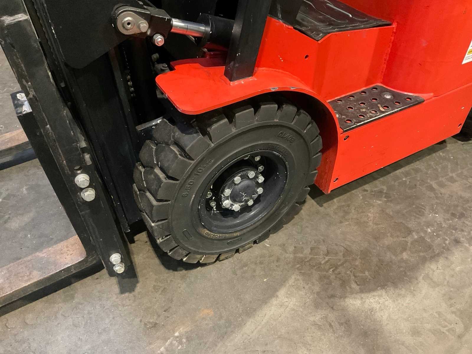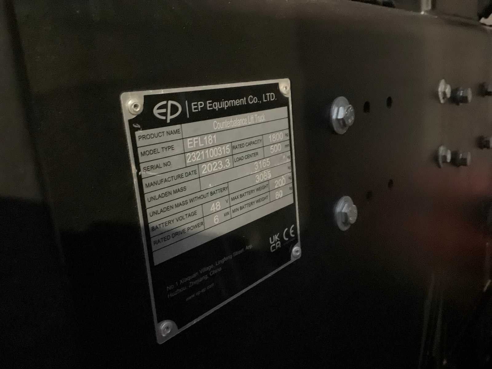 Nee Merk: EP Type: EFL181 Bouwjaar: 2023 Brandstof: Elektrisch Mast: Triple Soort band: Volrubber banden Aantal wielen: 4 Accu lader: true Free-lift: true Side-shift: true Triple mast: true Eigen gewicht: 3030kg Hefvermogen: 1800kg Lepellengte: 1200mm Max. hefhoogte: 4800mm Vol rubber banden: true Minimale doorrijhoogte: 2080mm