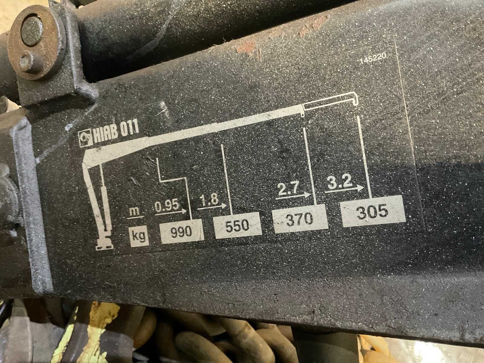 Nee Merk: Hiab Type: 011 Bouwjaar: 1997 Serienummer: 064198 Max. hijscapaciteit: 990kg Max. mastlengte: 3.2m Aantal mastdelen: 3