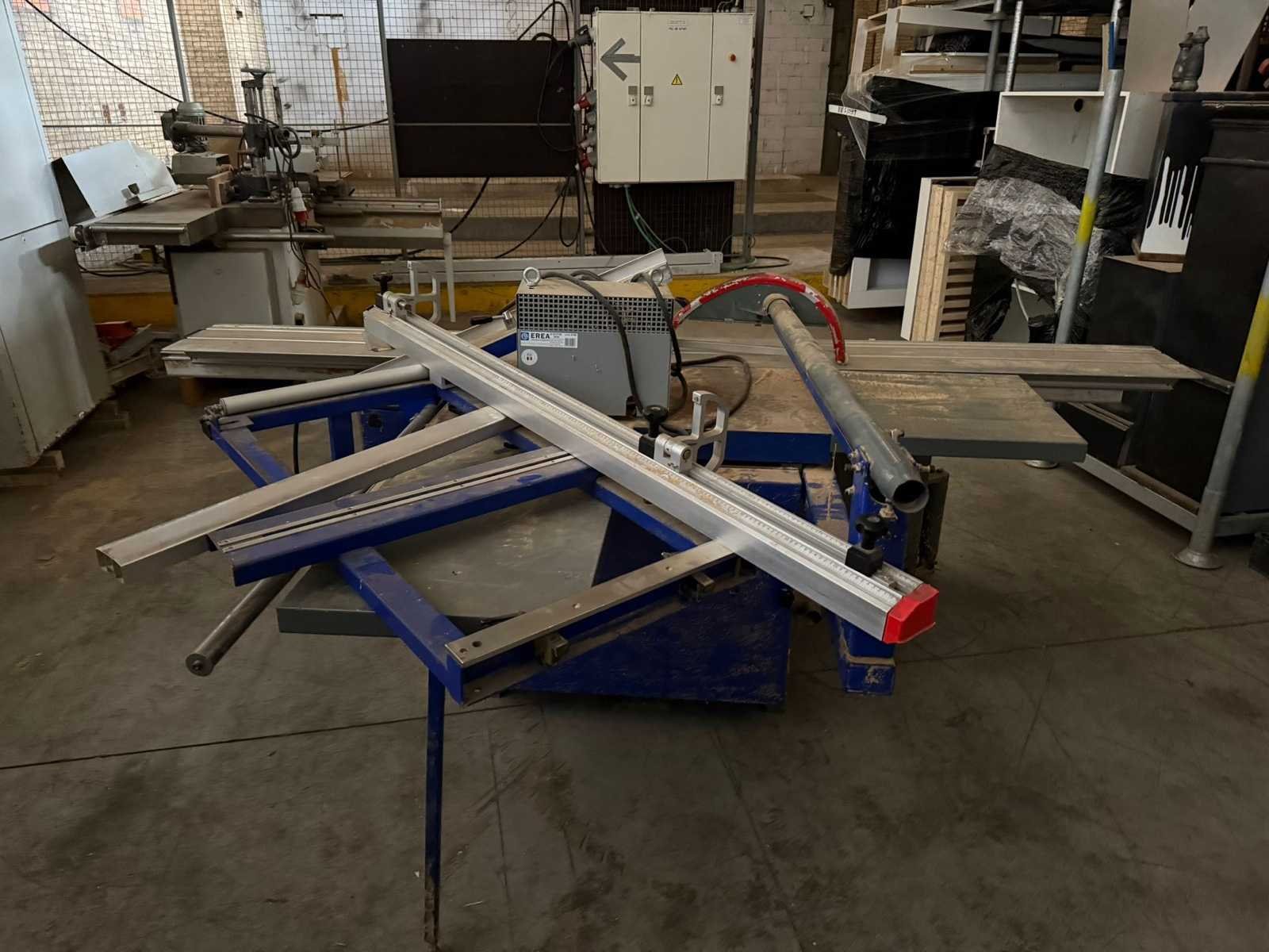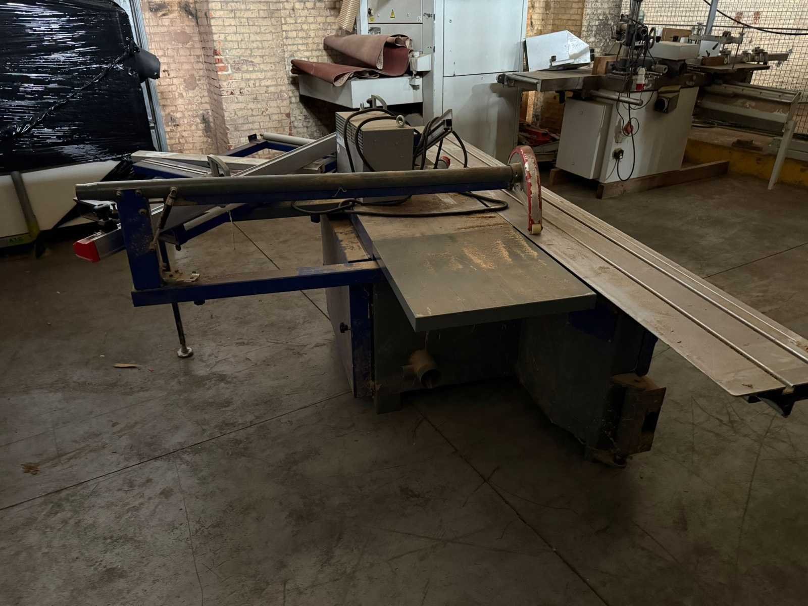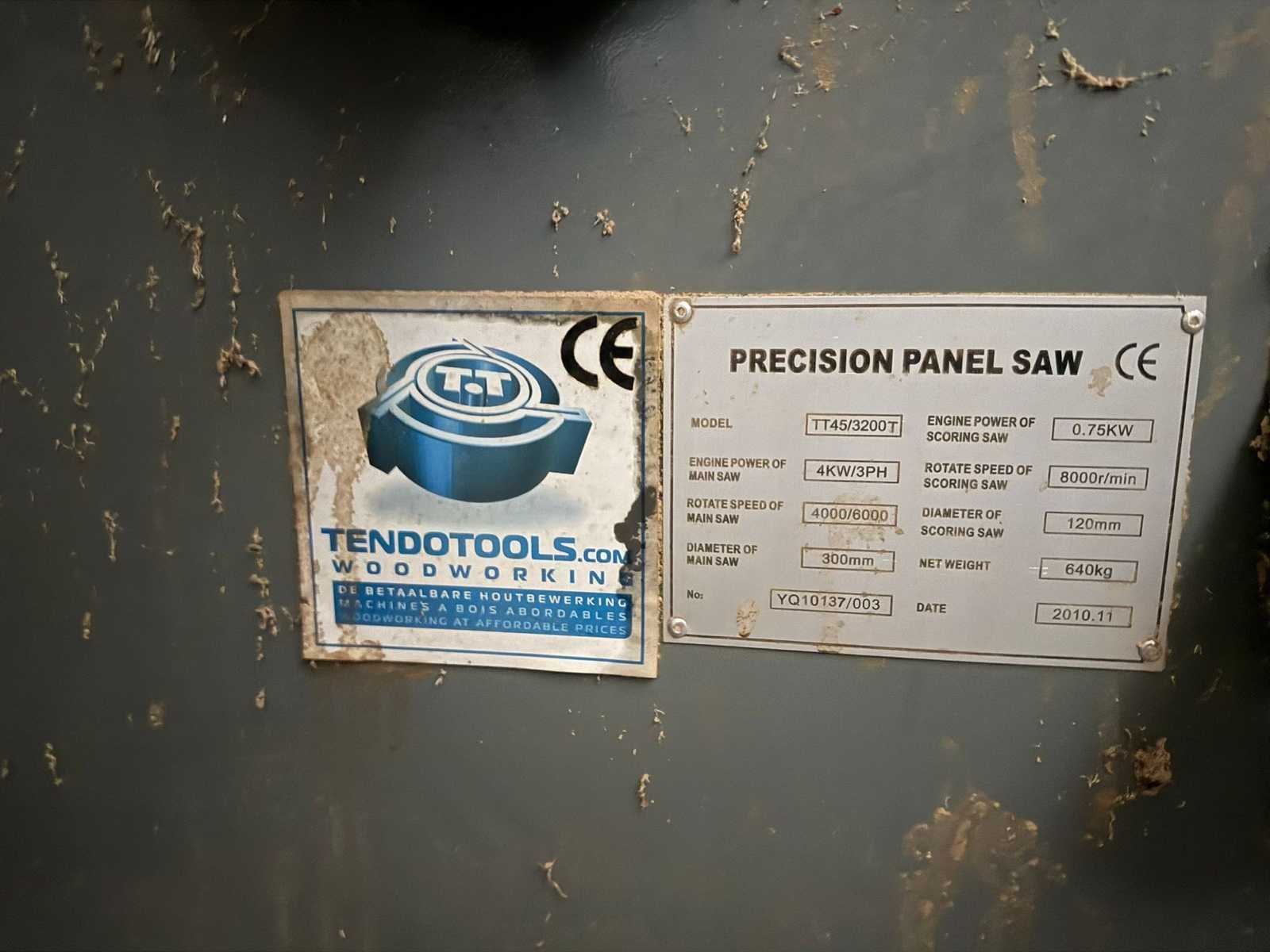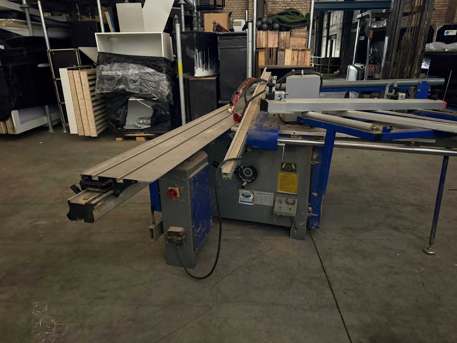 Machine type ➡️ Formaatzaag / Paneelzaag met roltafel (Engels: Sliding Table Panel Saw) Merk / verdeler ➡️ TendoTools Model ➡️ TT45/3200T CE-markering ➡️ Ja Bouwjaar ➡️ 11/2010 ⸻ ⚙️ TECHNISCHE GEGEVENS (volgens typeplaat) Hoofdmotor zaagblad ➡️ 4 kW – 3-fase Voorritser (scoring saw) ➡️ 0,75 kW Toerental hoofdzaag ➡️ 4.000 / 6.000 t/min Diameter hoofdzaagblad ➡️ 300 mm Toerental voorritser ➡️ 8.000 t/min Diameter voorritszaag ➡️ 120 mm Netto gewicht ➡️ ± 640 kg ⸻ 📐 AFMETINGEN & UITRUSTING Roltafel (schuiftafel) ➡️ 3200 mm (afgeleid uit model TT45/3200T) Zaagmogelijkheden • Recht zagen • Schuin zagen • Paneel- en plaatmateriaal • Met voorritser (ideaal voor melamine / fineer) Aanwezige onderdelen (zichtbaar op foto’s) ✔️ Aluminium roltafel ✔️ Aanslag met schaalverdeling ✔️ Verstekarm ✔️ Parallelgeleider ✔️ Beschermkap zaagblad ✔️ Noodstop ✔️ Afzuigaansluiting ⸻ 🪵 TOEPASSINGEN Geschikt voor: • Plaatmateriaal (MDF, multiplex, melamine) • Massief hout • Interieurbouw • Meubelmakerij • Schrijnwerkerij ➡️ Voorritser = grote meerwaarde (zuivere snede zonder splinteren) ⸻ No Merk: TendoTools Type: TT45/3200T Bouwjaar: 2010