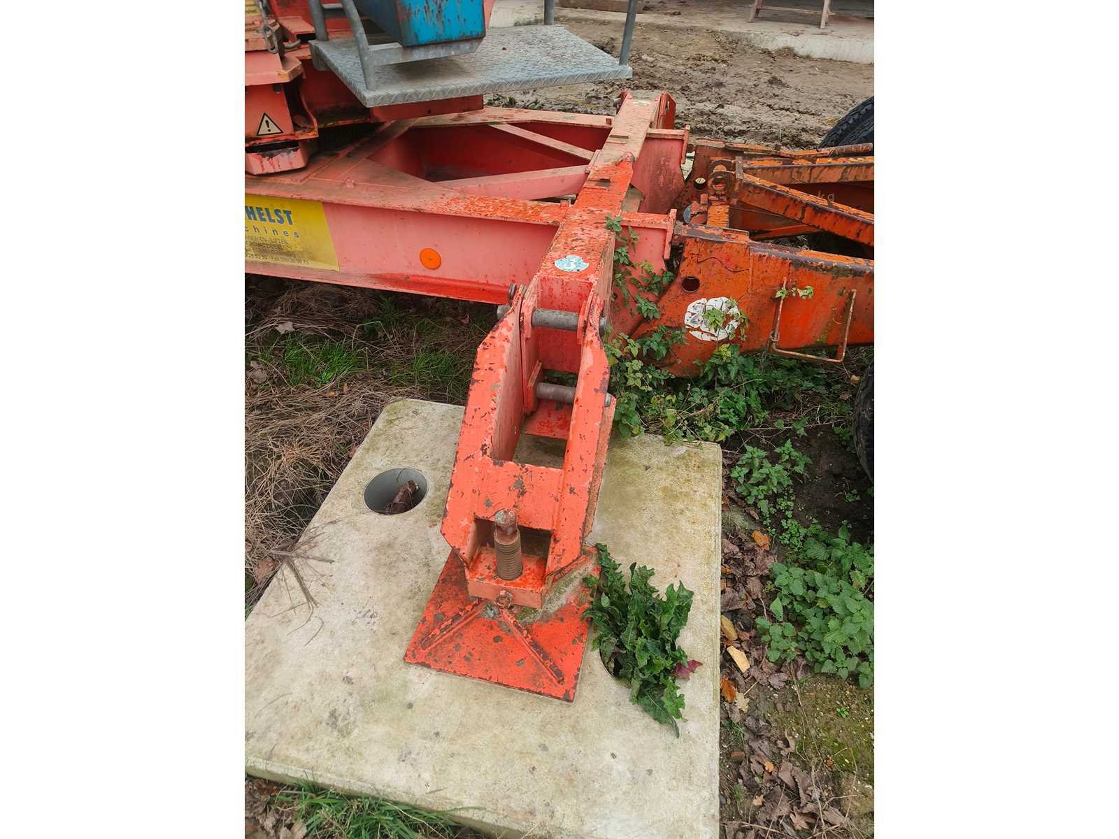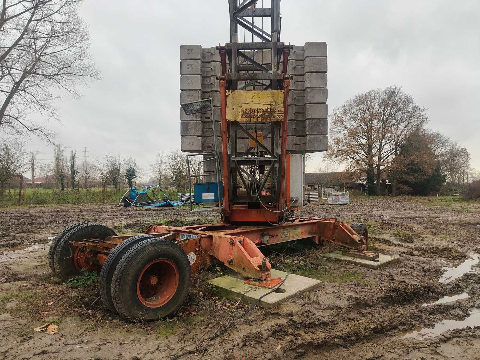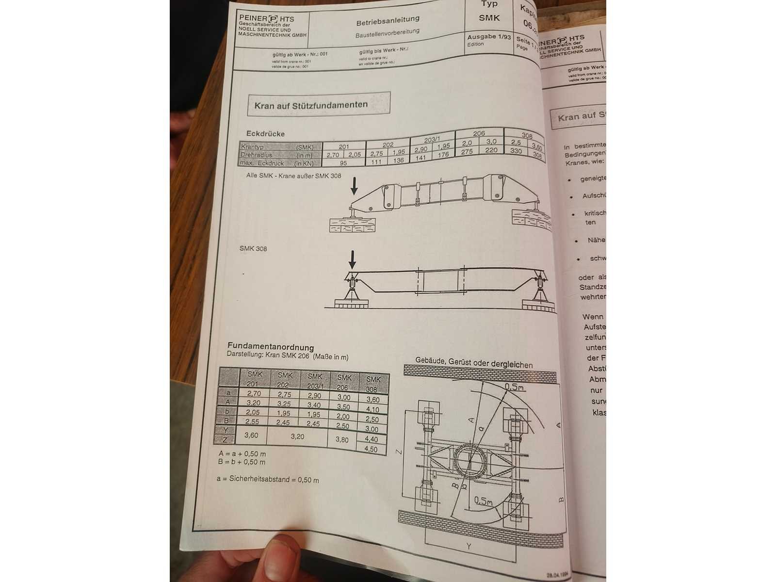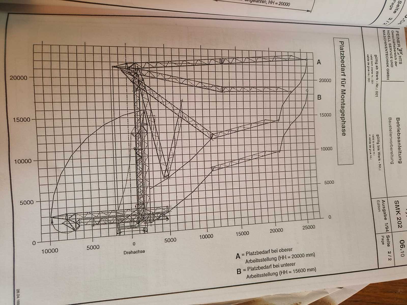 Demontage ten laste voor de koper. Opgesteld en af te breken in Nevele. Inbegrepen contragewichten: 1x 4600 kg / 7x 2000kg Inbegrepen 4 voetplaten: (120x120x15 cm) Inbegrepen pallethaak Totale afmetingen voor transport: 14700mm x 2500mm x 3700mm Nee Merk: Peiner Type: SMK202 Bouwjaar: 1998 Serienummer: 108 Max. hijscapaciteit: 2200kg Gieklengte: 25m Max. hijshoogte: 20m Met kraanboek: true