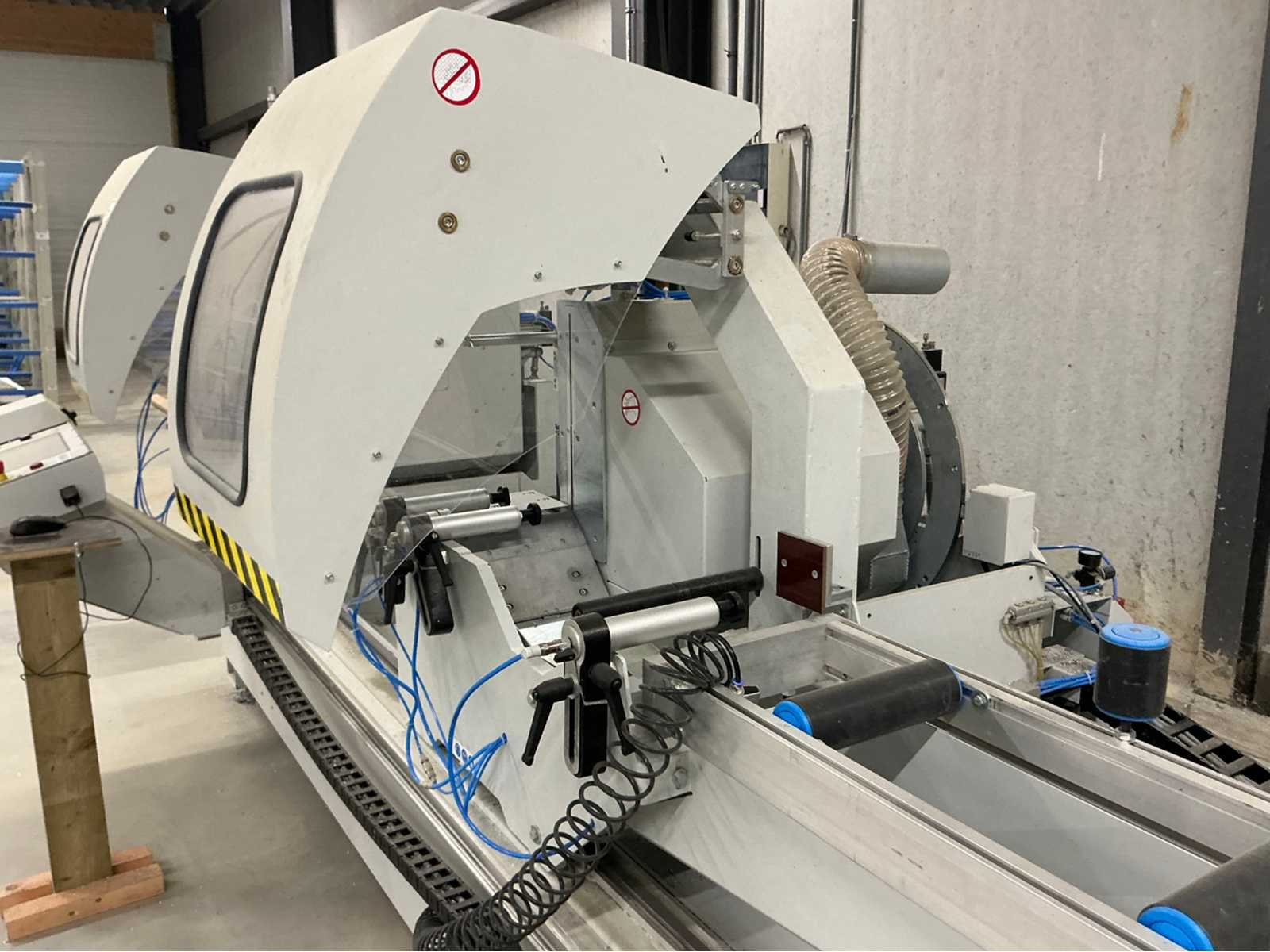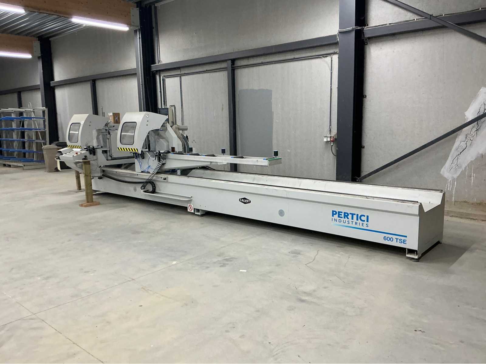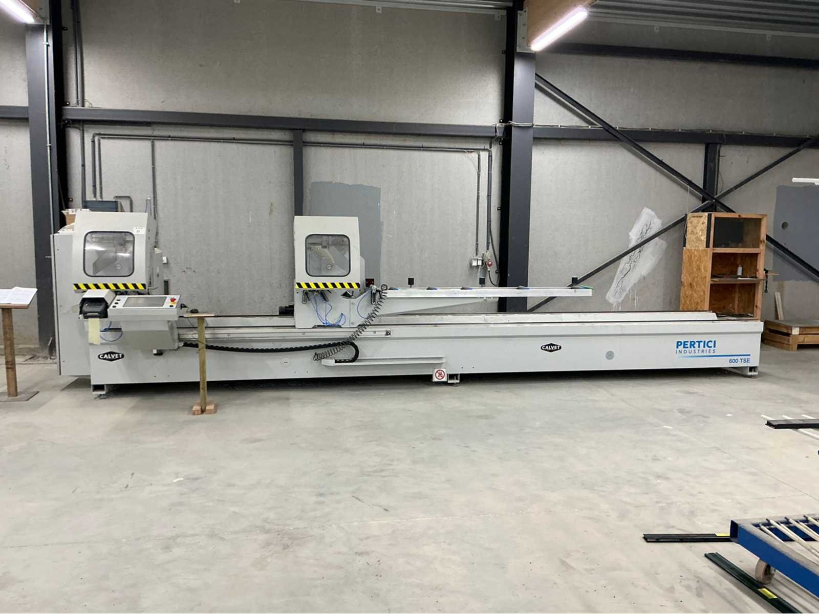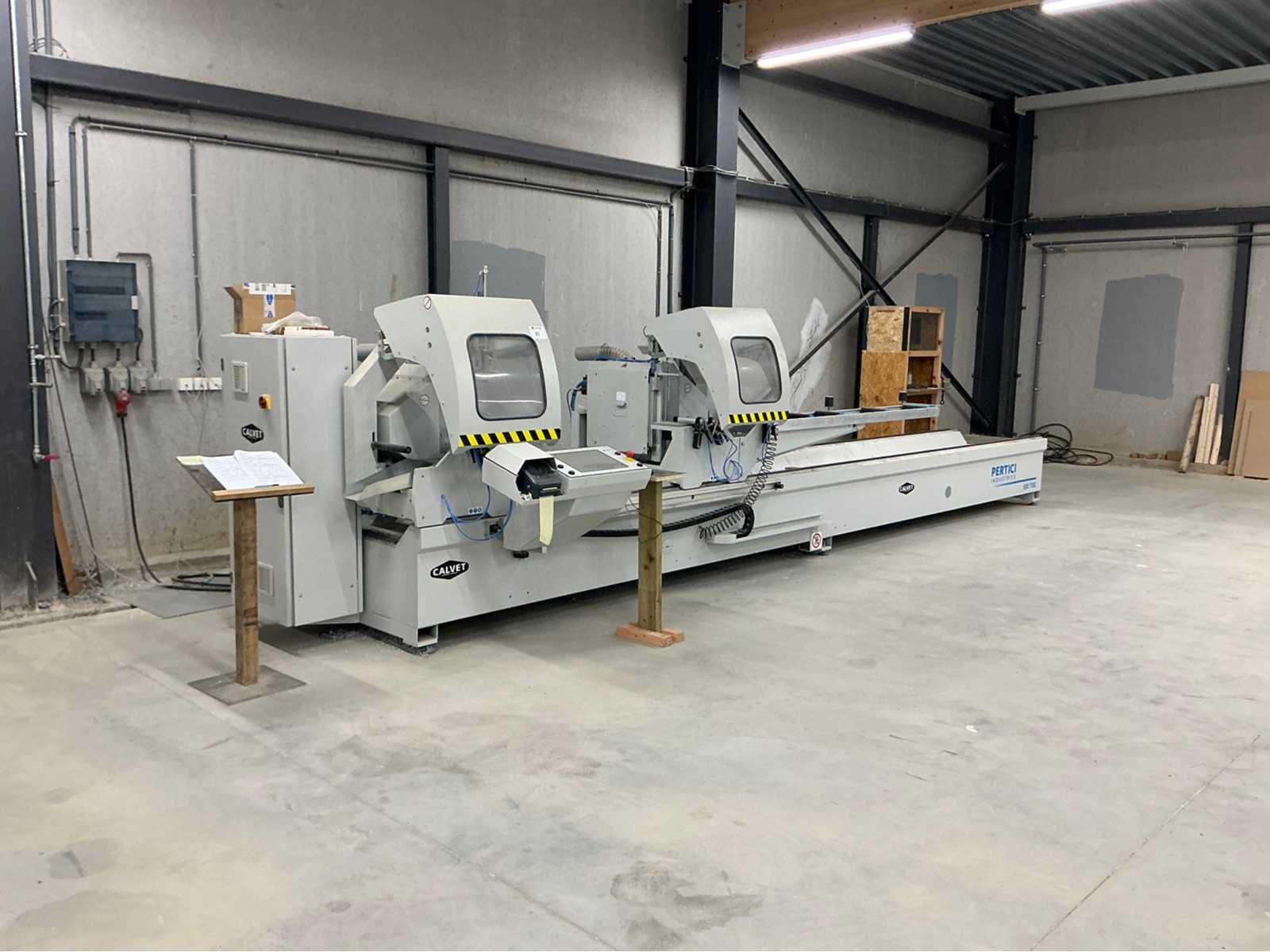 De machine bevindt zich in gebruikte maar goede staat: De Pertici 600 TSE is een dubbele verstekzaagmachine (Double Mitre Saw) voor het zagen van aluminium- en PVC-profielen. Belangrijkste kenmerken: Twee zaagkoppen met een zaagblad van 600 mm diameter. Beide koppen kunnen onder verstek zagen (meestal van 45° tot 90°). De rechterkop is automatisch verplaatsbaar (servo- of pneumatisch gestuurd). Geschikt voor precisiewerk in raam- en deurproductie of gevelbouw. Aansturing via een CNC- of digitaal controlesysteem (afhankelijk van de uitvoering). ⚡ Aansluitings- en gebruiksvereisten: Elektrisch: 400 V / 3-fase / 50 Hz. Perslucht: minimaal 6,5 bar (droog en olievrij). Vermogen: 8 kW → aanbevolen zekering ± 16–20 A. Geluidslevel: ± 63 dB(A) op werkafstand. Non Merk: Pertici Type: 600 TSE twee kops afkortzaag Bouwjaar: 2022 Serienummer: 00000037 Motorvermogen (kW): 8kW Aansluiting: 400V Machinegewicht: 2050kg
