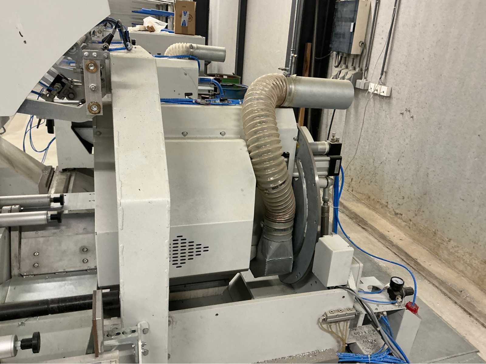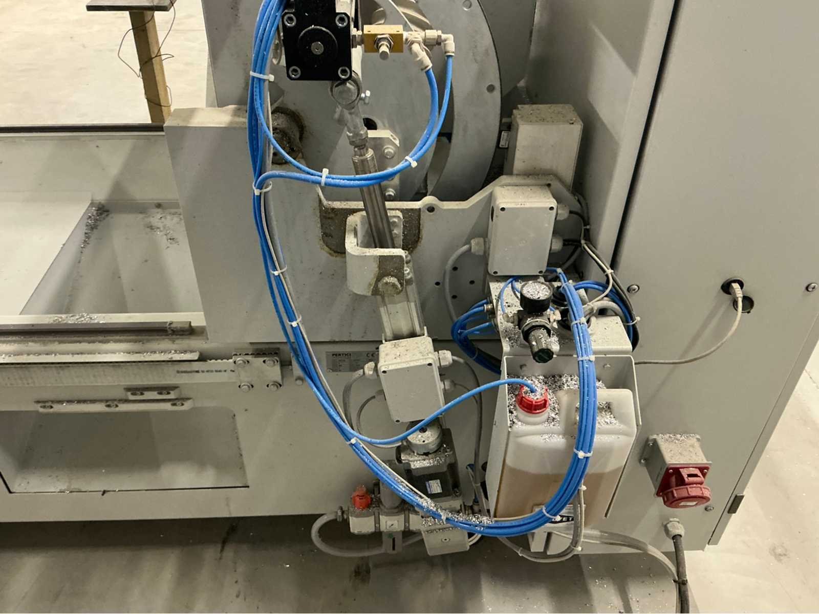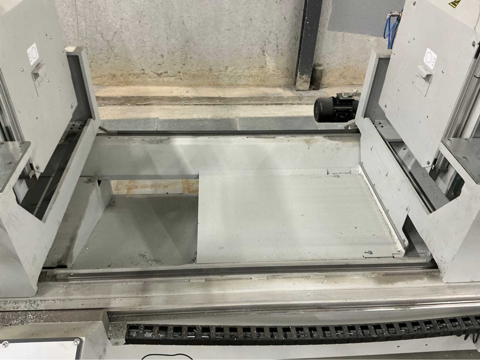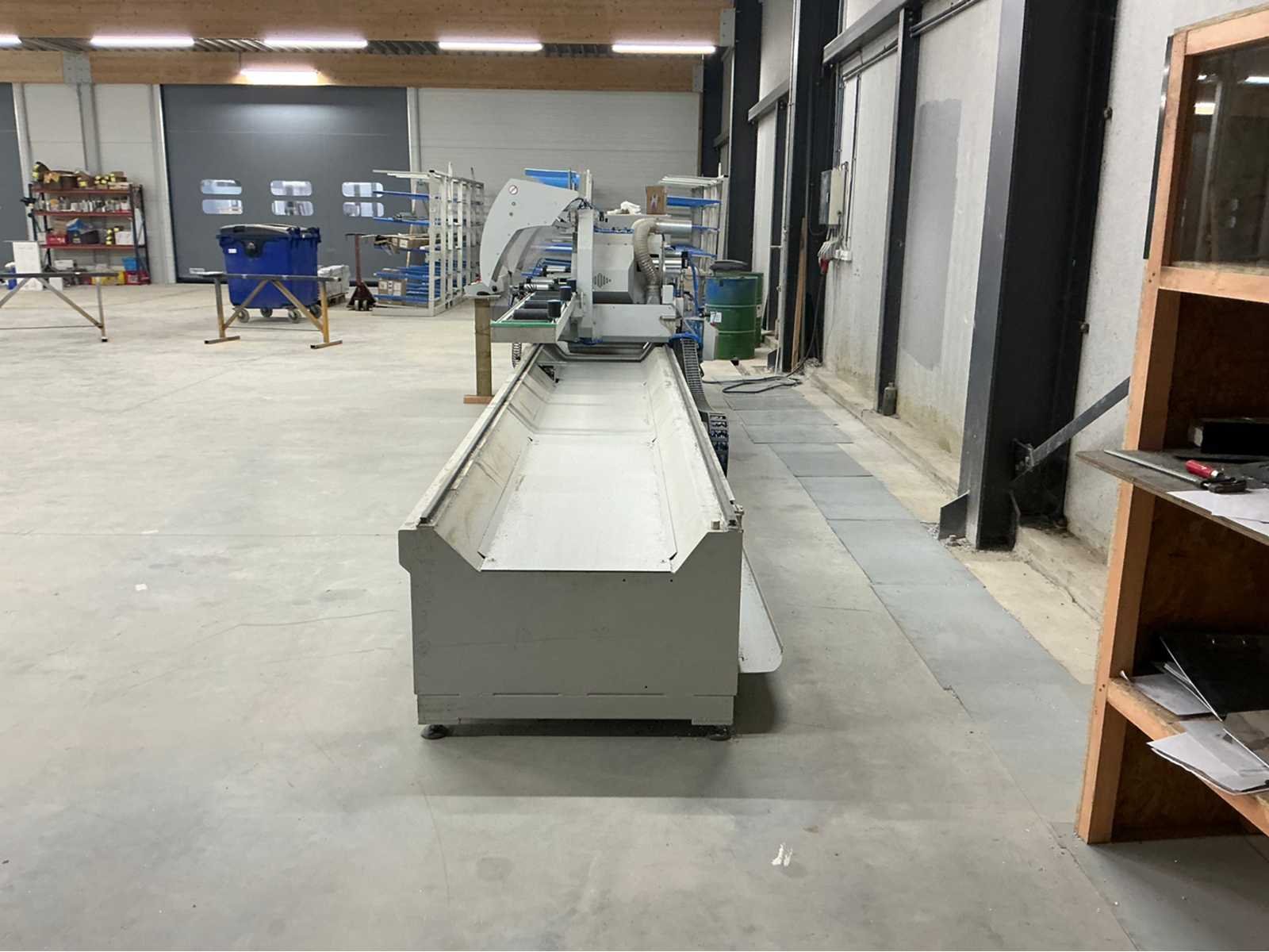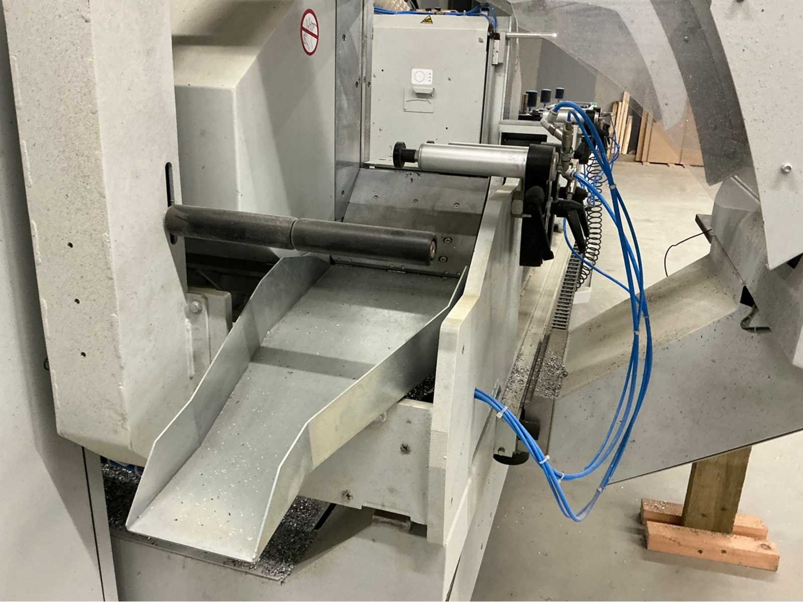 De machine bevindt zich in gebruikte maar goede staat: De Pertici 600 TSE is een dubbele verstekzaagmachine (Double Mitre Saw) voor het zagen van aluminium- en PVC-profielen. Belangrijkste kenmerken: Twee zaagkoppen met een zaagblad van 600 mm diameter. Beide koppen kunnen onder verstek zagen (meestal van 45° tot 90°). De rechterkop is automatisch verplaatsbaar (servo- of pneumatisch gestuurd). Geschikt voor precisiewerk in raam- en deurproductie of gevelbouw. Aansturing via een CNC- of digitaal controlesysteem (afhankelijk van de uitvoering). ⚡ Aansluitings- en gebruiksvereisten: Elektrisch: 400 V / 3-fase / 50 Hz. Perslucht: minimaal 6,5 bar (droog en olievrij). Vermogen: 8 kW → aanbevolen zekering ± 16–20 A. Geluidslevel: ± 63 dB(A) op werkafstand. Non Merk: Pertici Type: 600 TSE twee kops afkortzaag Bouwjaar: 2022 Serienummer: 00000037 Motorvermogen (kW): 8kW Aansluiting: 400V Machinegewicht: 2050kg