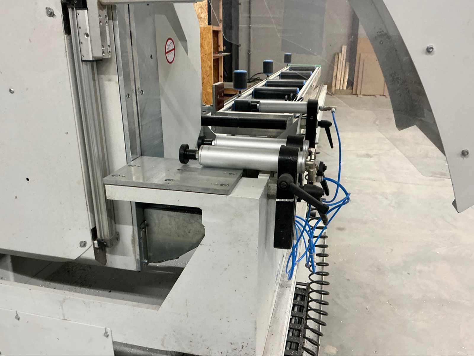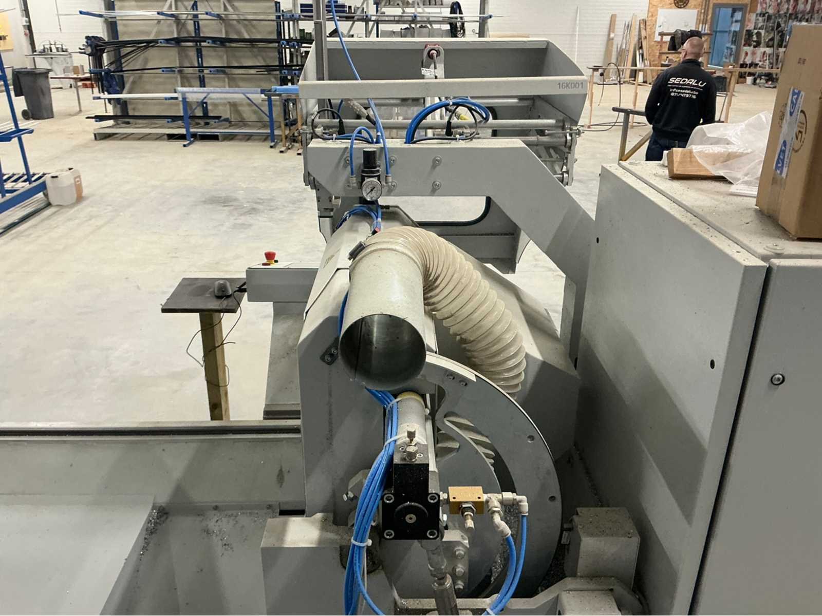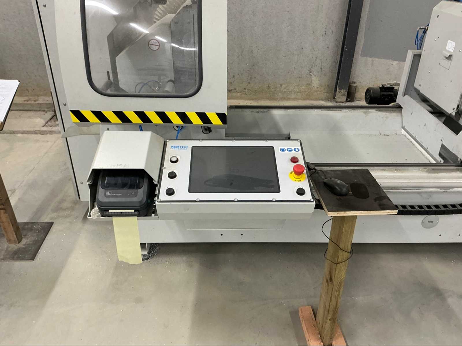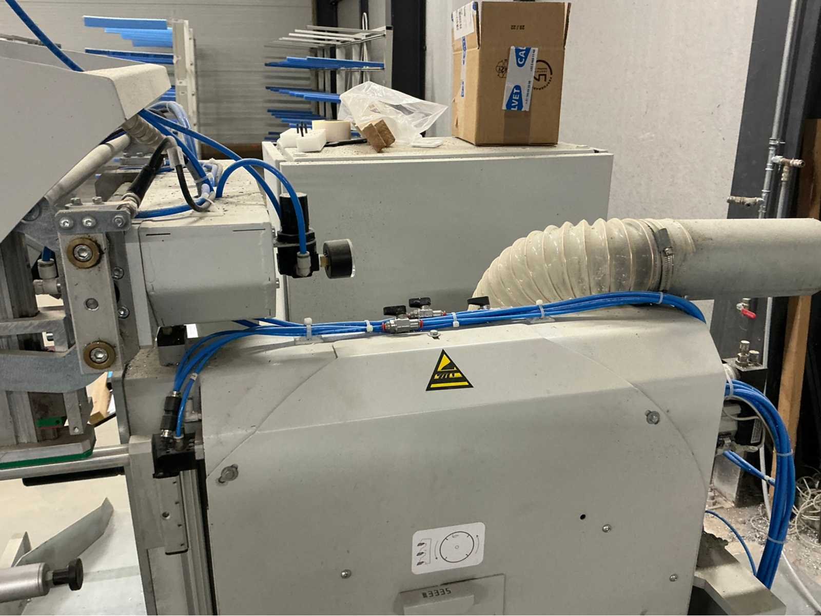 De machine bevindt zich in gebruikte maar goede staat: De Pertici 600 TSE is een dubbele verstekzaagmachine (Double Mitre Saw) voor het zagen van aluminium- en PVC-profielen. Belangrijkste kenmerken: Twee zaagkoppen met een zaagblad van 600 mm diameter. Beide koppen kunnen onder verstek zagen (meestal van 45° tot 90°). De rechterkop is automatisch verplaatsbaar (servo- of pneumatisch gestuurd). Geschikt voor precisiewerk in raam- en deurproductie of gevelbouw. Aansturing via een CNC- of digitaal controlesysteem (afhankelijk van de uitvoering). ⚡ Aansluitings- en gebruiksvereisten: Elektrisch: 400 V / 3-fase / 50 Hz. Perslucht: minimaal 6,5 bar (droog en olievrij). Vermogen: 8 kW → aanbevolen zekering ± 16–20 A. Geluidslevel: ± 63 dB(A) op werkafstand. Non Merk: Pertici Type: 600 TSE twee kops afkortzaag Bouwjaar: 2022 Serienummer: 00000037 Motorvermogen (kW): 8kW Aansluiting: 400V Machinegewicht: 2050kg