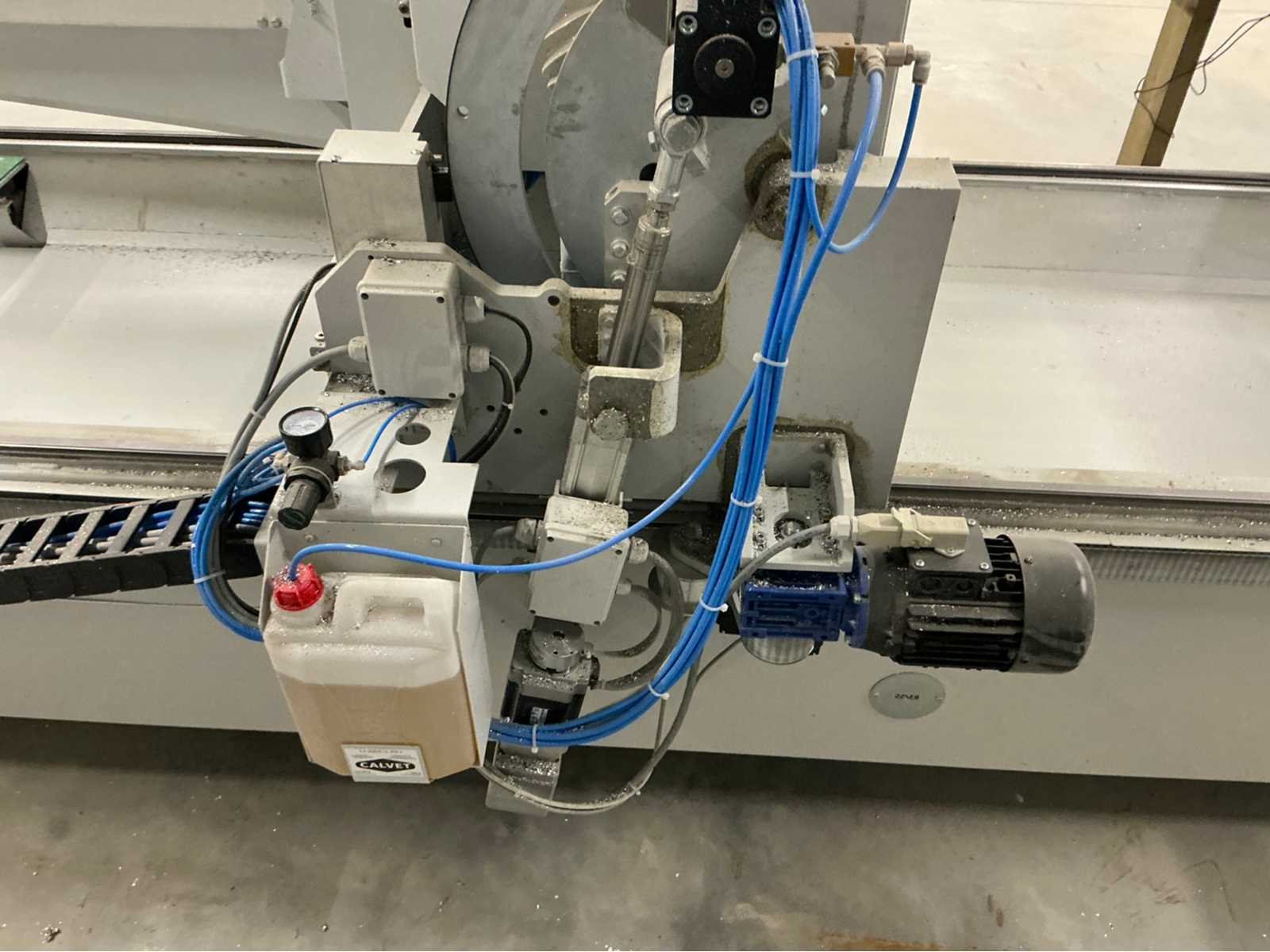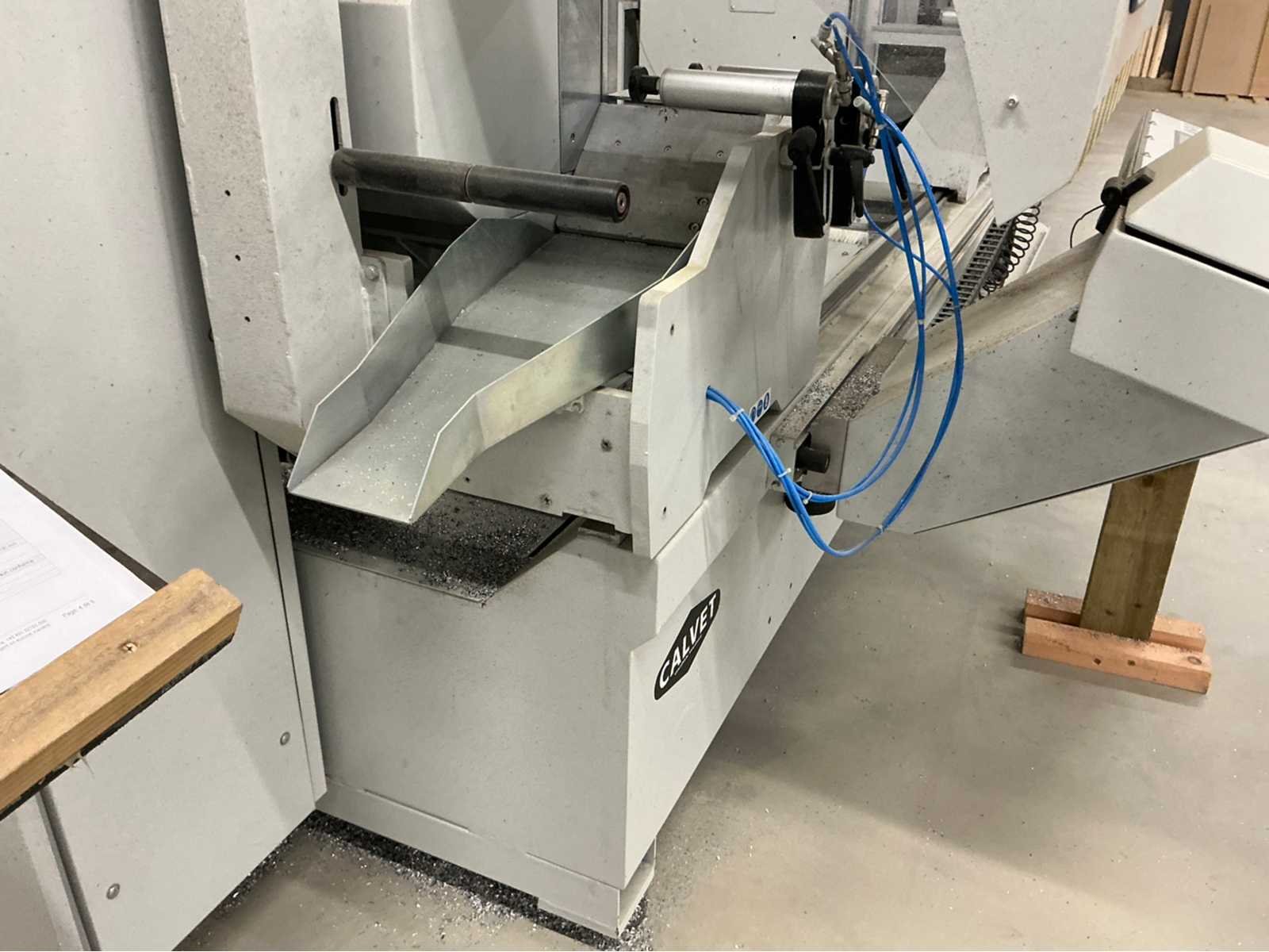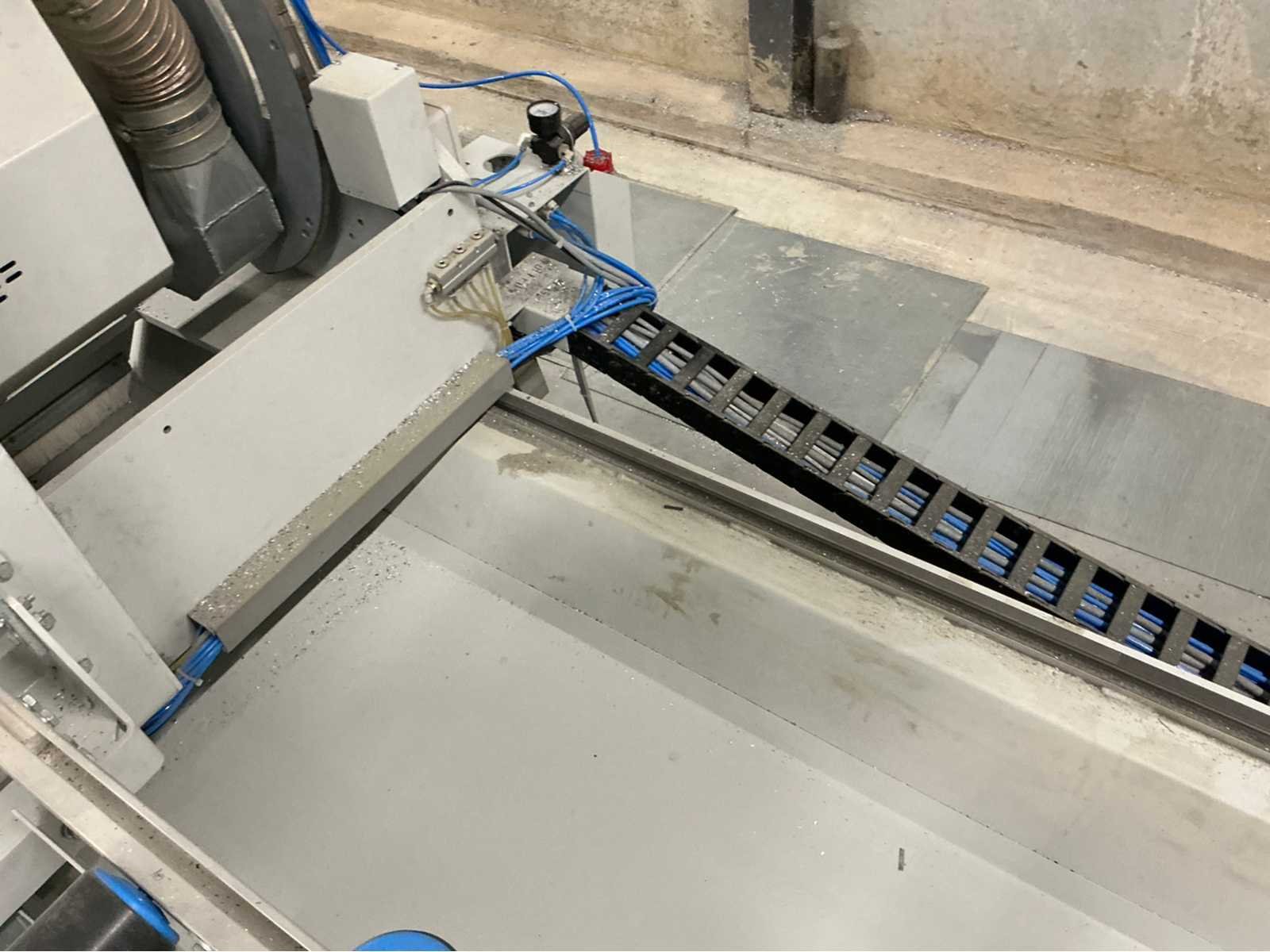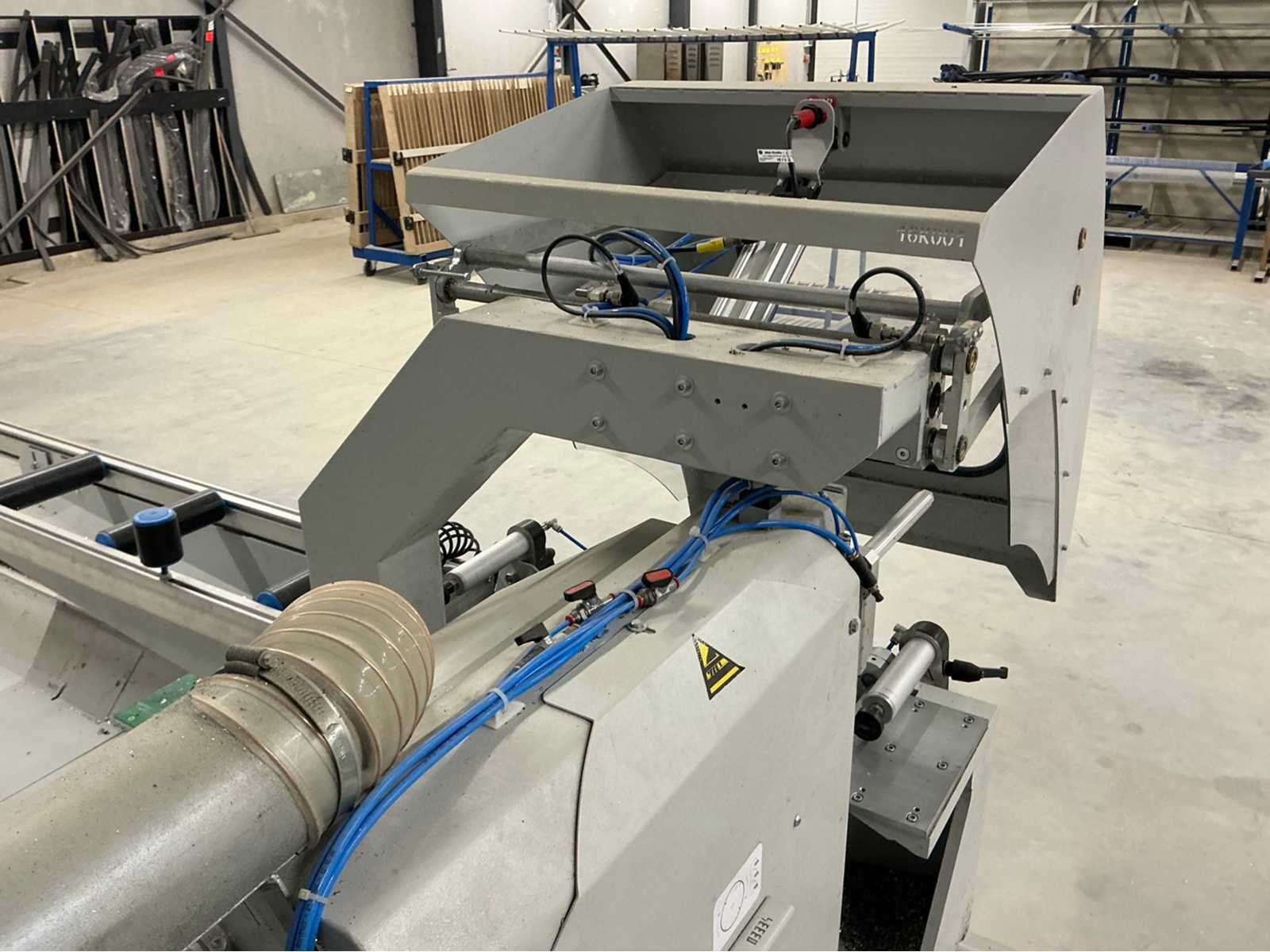 De machine bevindt zich in gebruikte maar goede staat: De Pertici 600 TSE is een dubbele verstekzaagmachine (Double Mitre Saw) voor het zagen van aluminium- en PVC-profielen. Belangrijkste kenmerken: Twee zaagkoppen met een zaagblad van 600 mm diameter. Beide koppen kunnen onder verstek zagen (meestal van 45° tot 90°). De rechterkop is automatisch verplaatsbaar (servo- of pneumatisch gestuurd). Geschikt voor precisiewerk in raam- en deurproductie of gevelbouw. Aansturing via een CNC- of digitaal controlesysteem (afhankelijk van de uitvoering). ⚡ Aansluitings- en gebruiksvereisten: Elektrisch: 400 V / 3-fase / 50 Hz. Perslucht: minimaal 6,5 bar (droog en olievrij). Vermogen: 8 kW → aanbevolen zekering ± 16–20 A. Geluidslevel: ± 63 dB(A) op werkafstand. Non Merk: Pertici Type: 600 TSE twee kops afkortzaag Bouwjaar: 2022 Serienummer: 00000037 Motorvermogen (kW): 8kW Aansluiting: 400V Machinegewicht: 2050kg
