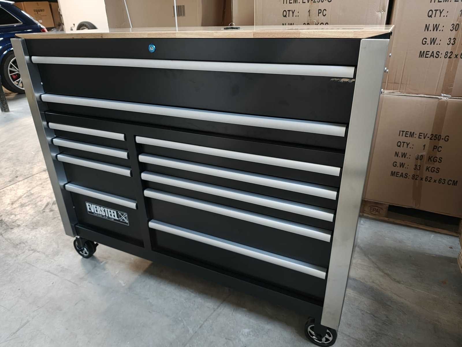 Merk: Eversteel Model: EV-22-12XXL Kleur: zwart Beschrijving machine: Nieuwe gereedschapswagen. Nee