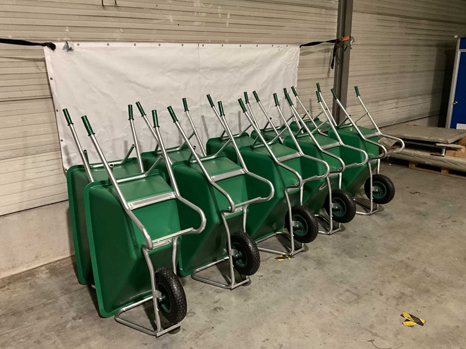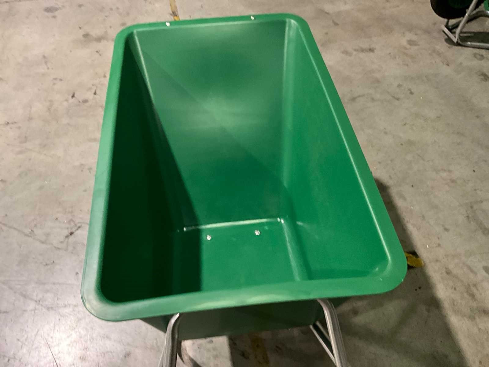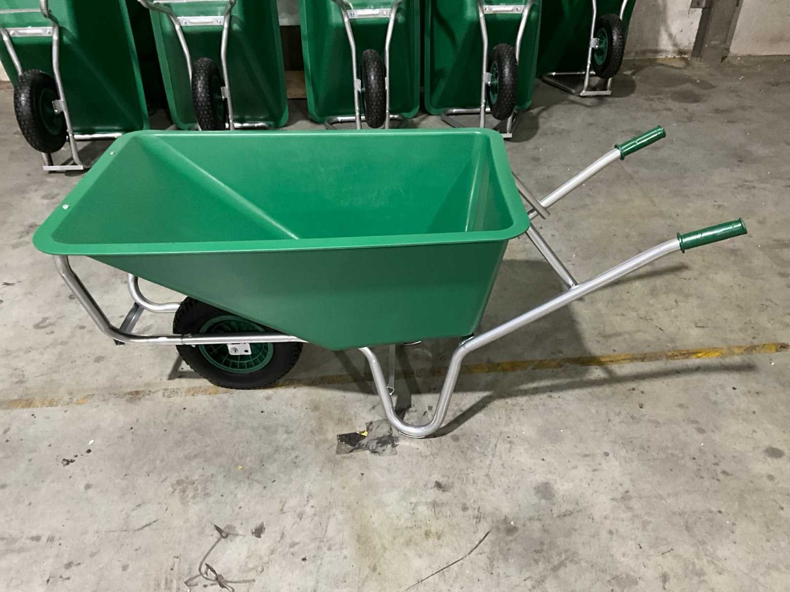 Partij volume kruiwagens - kunstof bak - inhoud 170 Liter - luchtbanden - kunststofvelg - wiel is verstelbaar - gegalvaniseerd metaal - laadmogelijkheden aanwezig Nee Merk: Optimus Model: 170 L Kleur: Groen Lengte: 160cm Breedte: 68cm Hoogte: 70cm Materiaal: Staal/kunststof