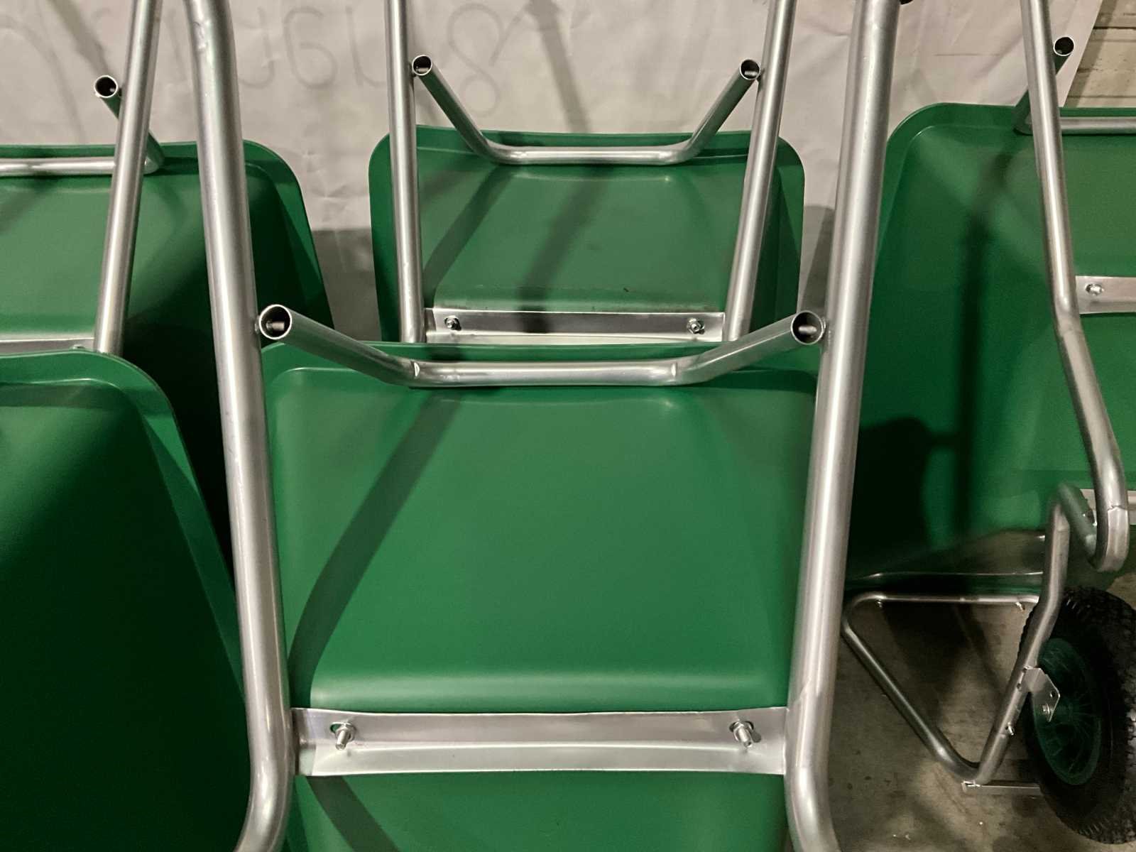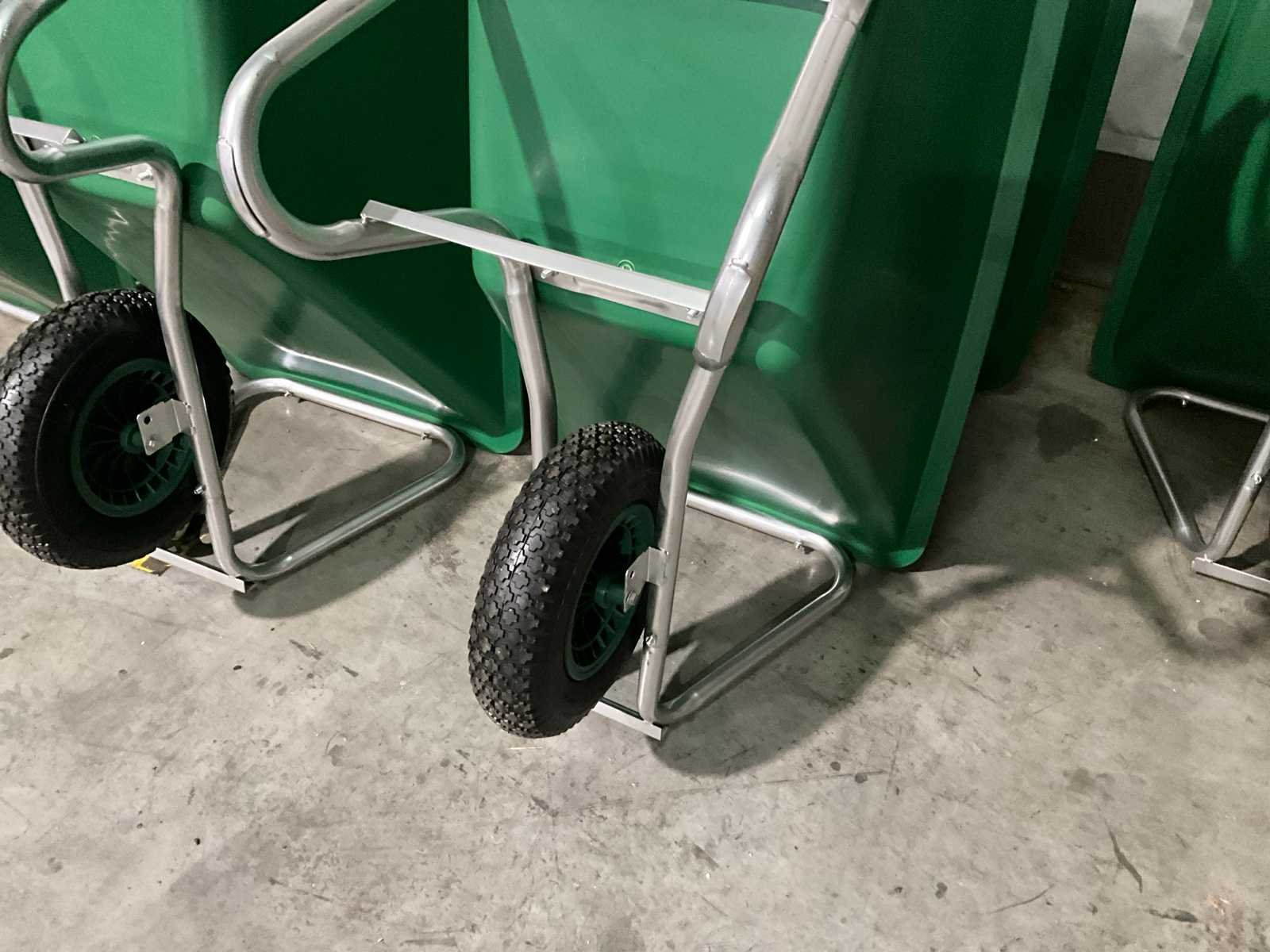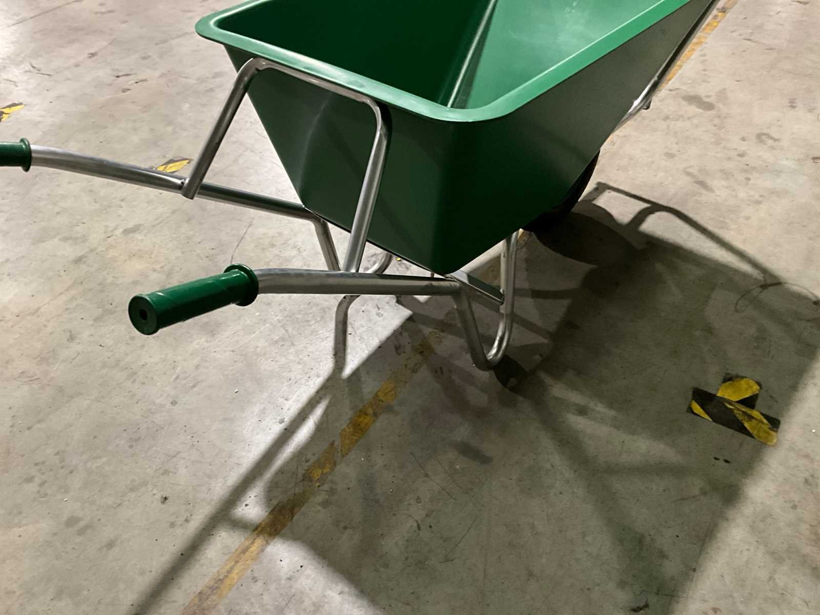 Partij volume kruiwagens - kunstof bak - inhoud 170 Liter - luchtbanden - kunststofvelg - wiel is verstelbaar - gegalvaniseerd metaal - laadmogelijkheden aanwezig Nee Merk: Optimus Model: 170 L Kleur: Groen Lengte: 160cm Breedte: 68cm Hoogte: 70cm Materiaal: Staal/kunststof