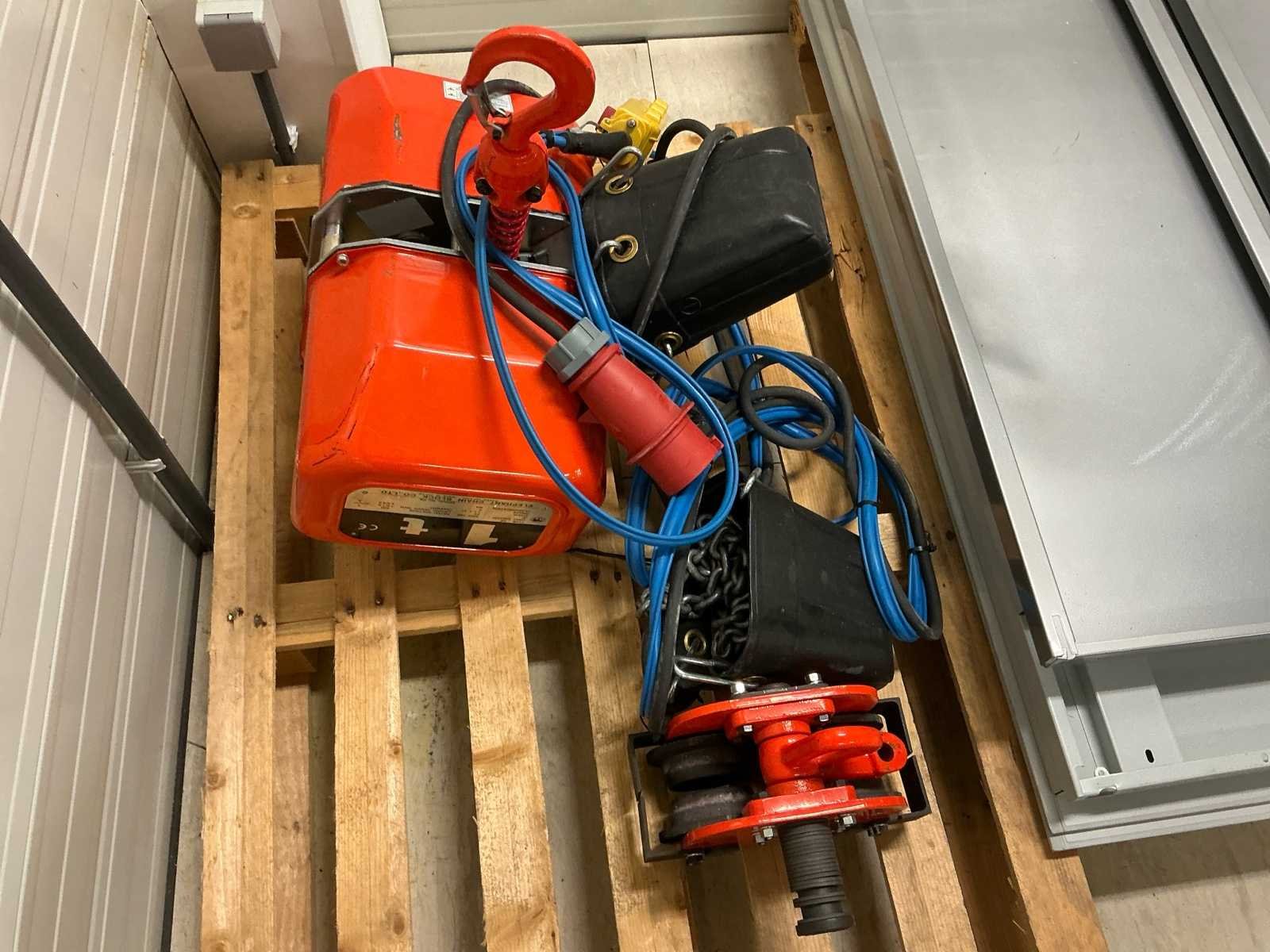 500 V 10A 400 V No Merk: Elephant Chan Type: FB Hijsvermogen: 1000kg Max. hijshoogte: 8m Aansluiting: 400V